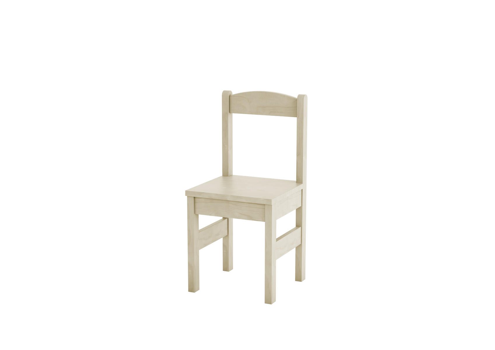 Linas bord og stole passer som hånd i handske til køkkenserien Lina. Fremstillet i hvidbejdset massiv birk. Bord: 80x55x53 cm. Stole: siddehøjde 34 cm.