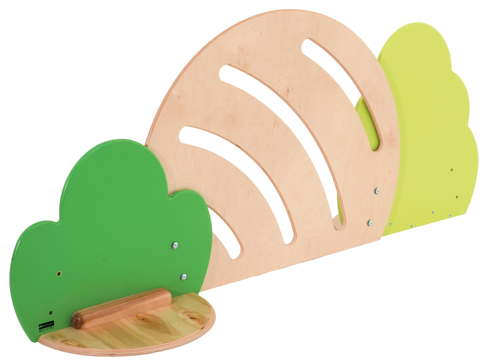 Legeskærme i lyddæmpende filt. Anvendes til scenografi, som rumdeler eller rekvisit i legen. Alle dele i Saga-serien kan bruges sammen. En kombination af skov/træer med 4 skærme, 4 fødder og 6 hængsler. Fugl og egern som kan sættes på legeskærm medfølger. Fødder kommer i samme farvekombination som den valgte skærmfarve. Alle skærmene er lysegrå på den ene side. Hængsler er lysegrå. Mål på skærme: B58xH70 cm. Fremstillet af mindst 50 % genbrugsmateriale. 100 % genanvendelig.