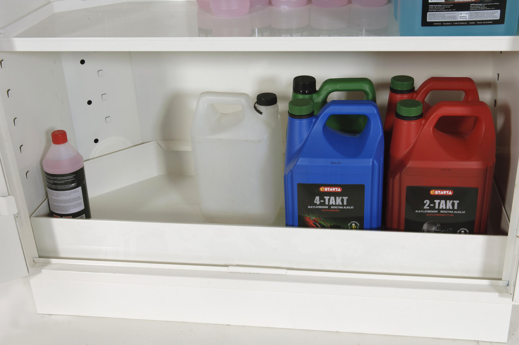 Der kan placeres artikel 168766 oven på skabet, hvis der opbevares brandfarlige varer og pladsen ønskes udnyttet optimalt.