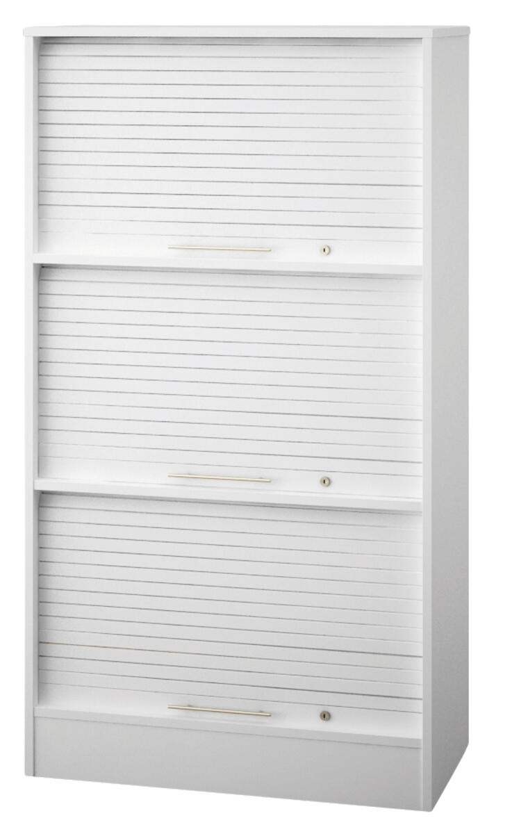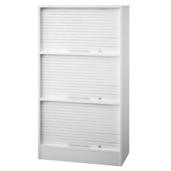 Mål: B80xD42xH101 cm. Hvidt korpus i melamin. 2 hylder. Jalousi i melaminbelagt spånplade (inkl. 2 nøgler).