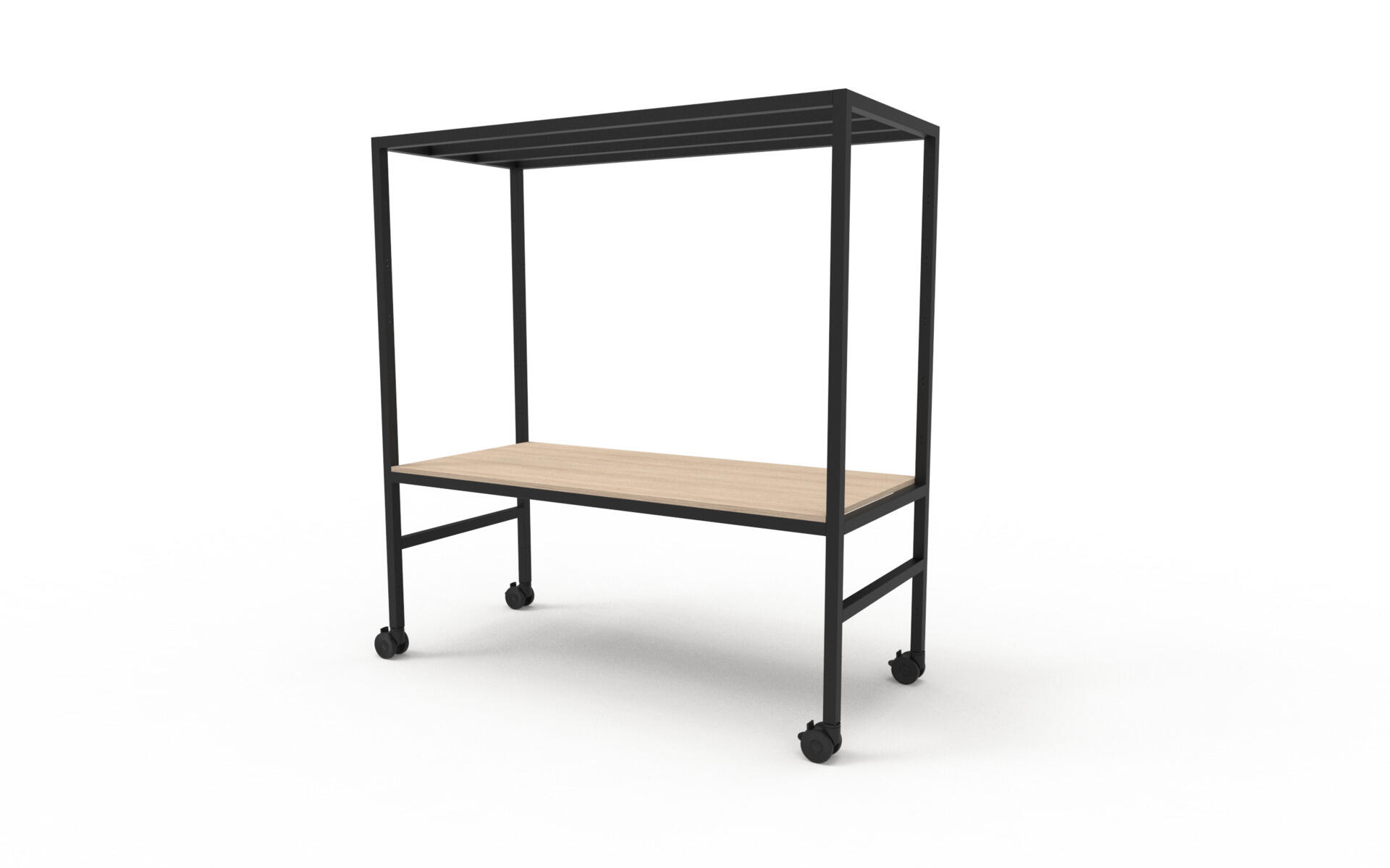 Dette grundmodul er et solidt arbejdsbord med stel i sortlakeret stål og låsbare hjul, som gør det let at flytte og samtidig stå stabilt under brug. Den justerbare bordplade i ubehandlet birkekrydsfinér giver en naturlig og robust overflade – ideel til alt fra gruppearbejde og projekter til praktiske opgaver. Bordet kan nemt udbygges med ekstra elementer, så det tilpasses rummets behov og aktiviteter.