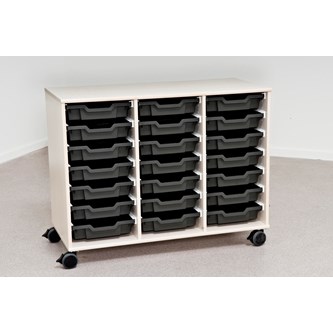Elevreol til Gratnells skuffer. Perfekt til opbevaring af bøger, hæfter, papirer, penalhuse mm. Hvidpigmenteret birkekrydsfinér. Kraftige låsbare hjul. Mål: B104xD47,5xH81 cm. Højde 81 cm. Reolen levers med skinner. Ekskl. Gratnells plastskuffer, som kan tilkøbes på varenr. 23416.