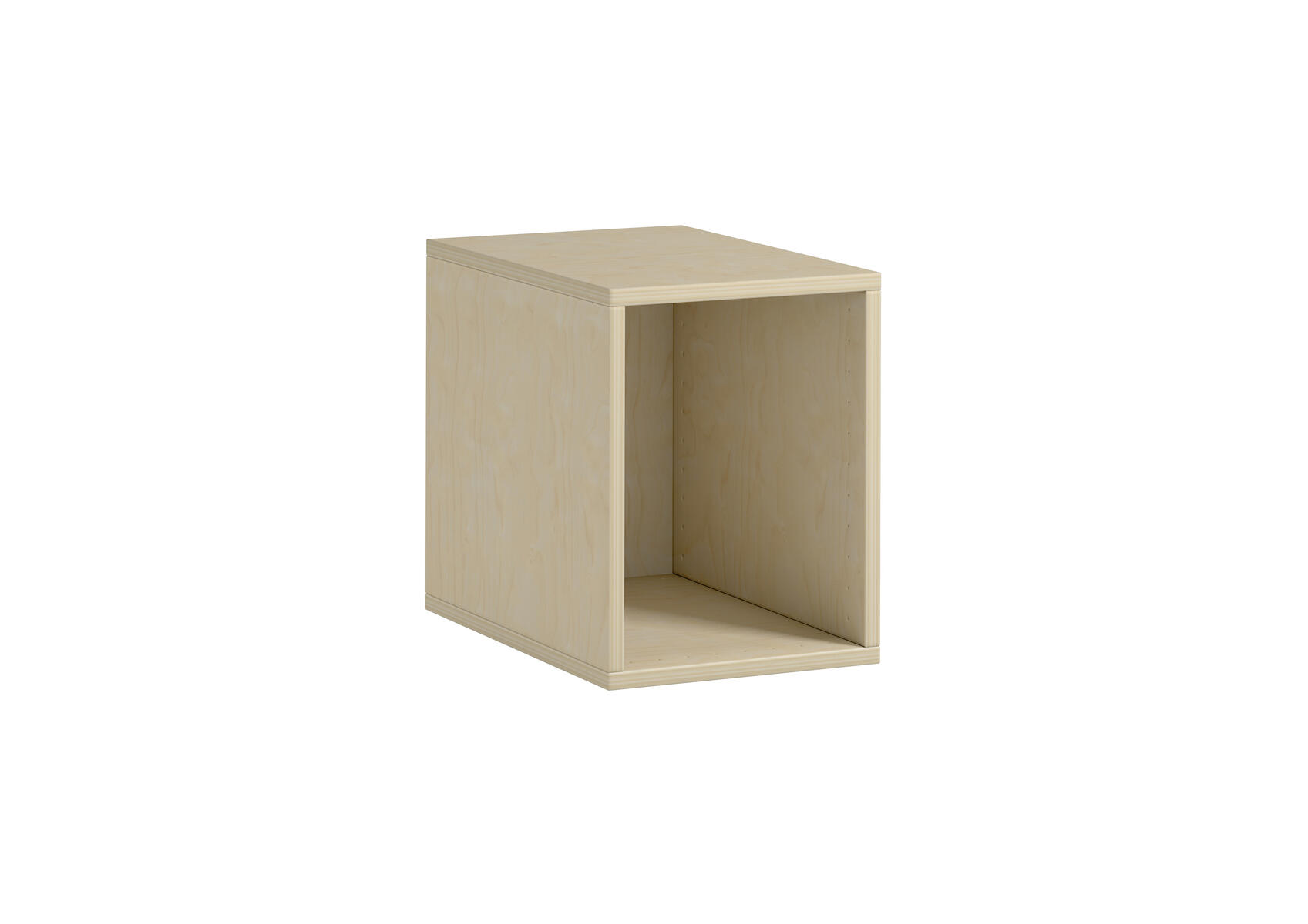 Mindste modul, kan indeholde A4. Fin displayreol til småting. Også perfekt som lille personale- eller elevopbevaring. Kan også væghænges. Indvendige mål: B27xH37XD35 cm. Udvendige mål: B31xH40xD36 cm. Svanemærket, licensnummer 5031 0099.