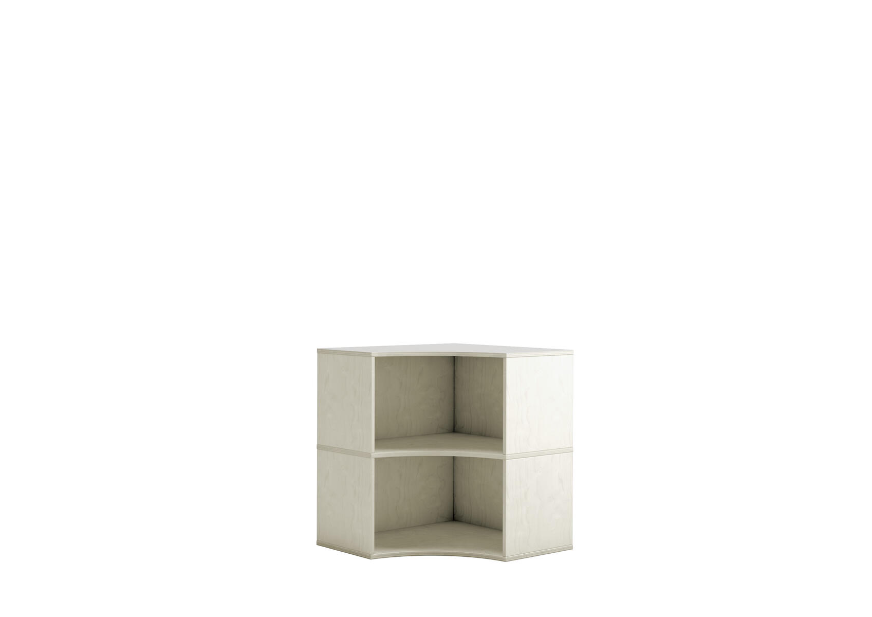 Buet modul med dybde 36 cm, kan anvendes til at bygge en hel cirkel (4 dele) eller benyttes som rum i rummet modul. 120x120 cm 1 A4 højde. Radius indvendig: 820 mm. Radius udvendig: 1220 mm. Højde 79 cm. Svanemærket, licensnummer 5031 0099.