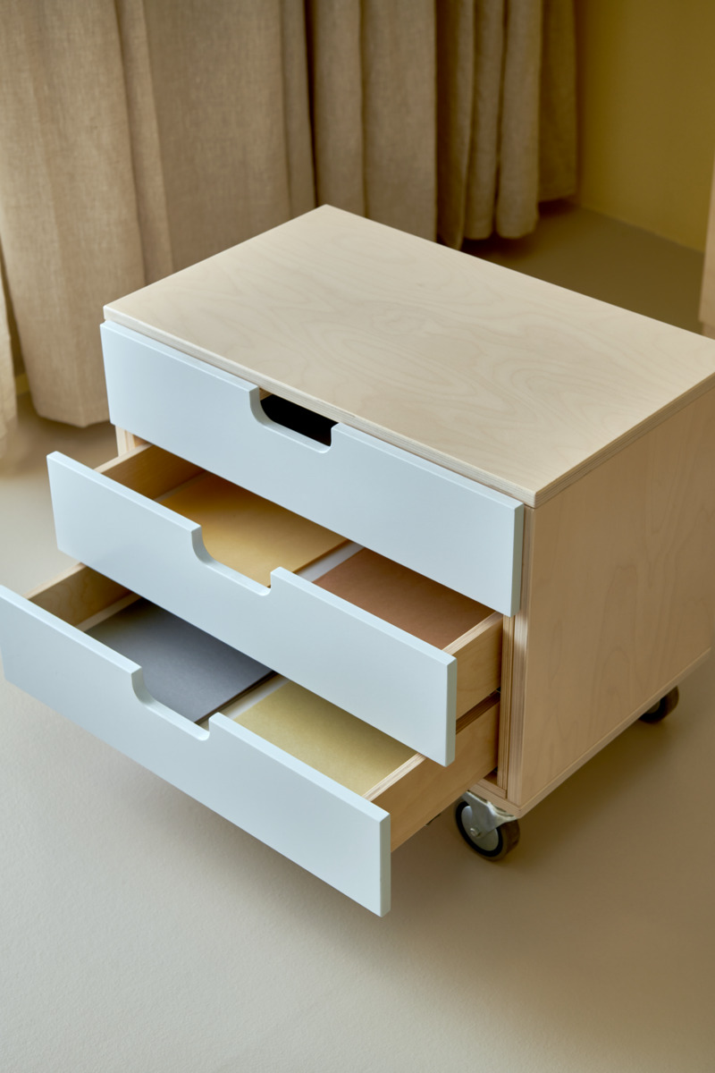 Tilpasset halv Fixa A4. For at udfylde 1 A4-rum skal du bruge 2 skuffer med 1 hylde imellem. Greb på alle 4 sider for lettere håndtering. Lavet i 10 mm birkekrydsfinér. Rengøring med fugtig klud eller støvsugning. Svanemærket, licensnummer 5031 0099.
