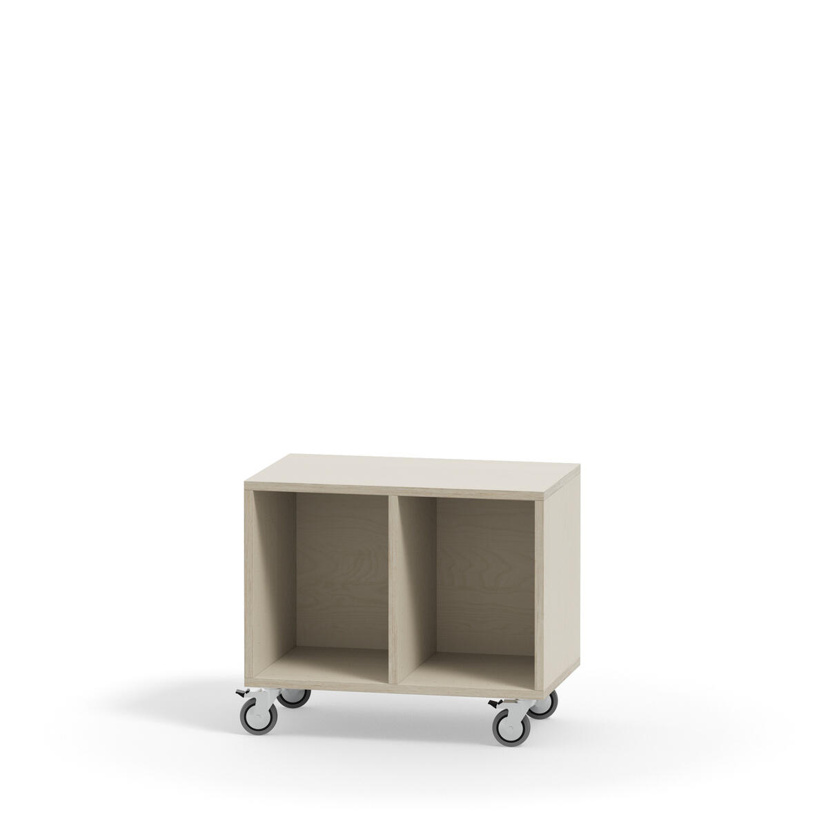 Lav Færdigsamlet Fixa opbevaring med to rum. Skillevæg er fast. Fire bevægelige hjul med bremser. Kræver enkel montering af hjul. Svanemærket, licensnummer 5031 0099.