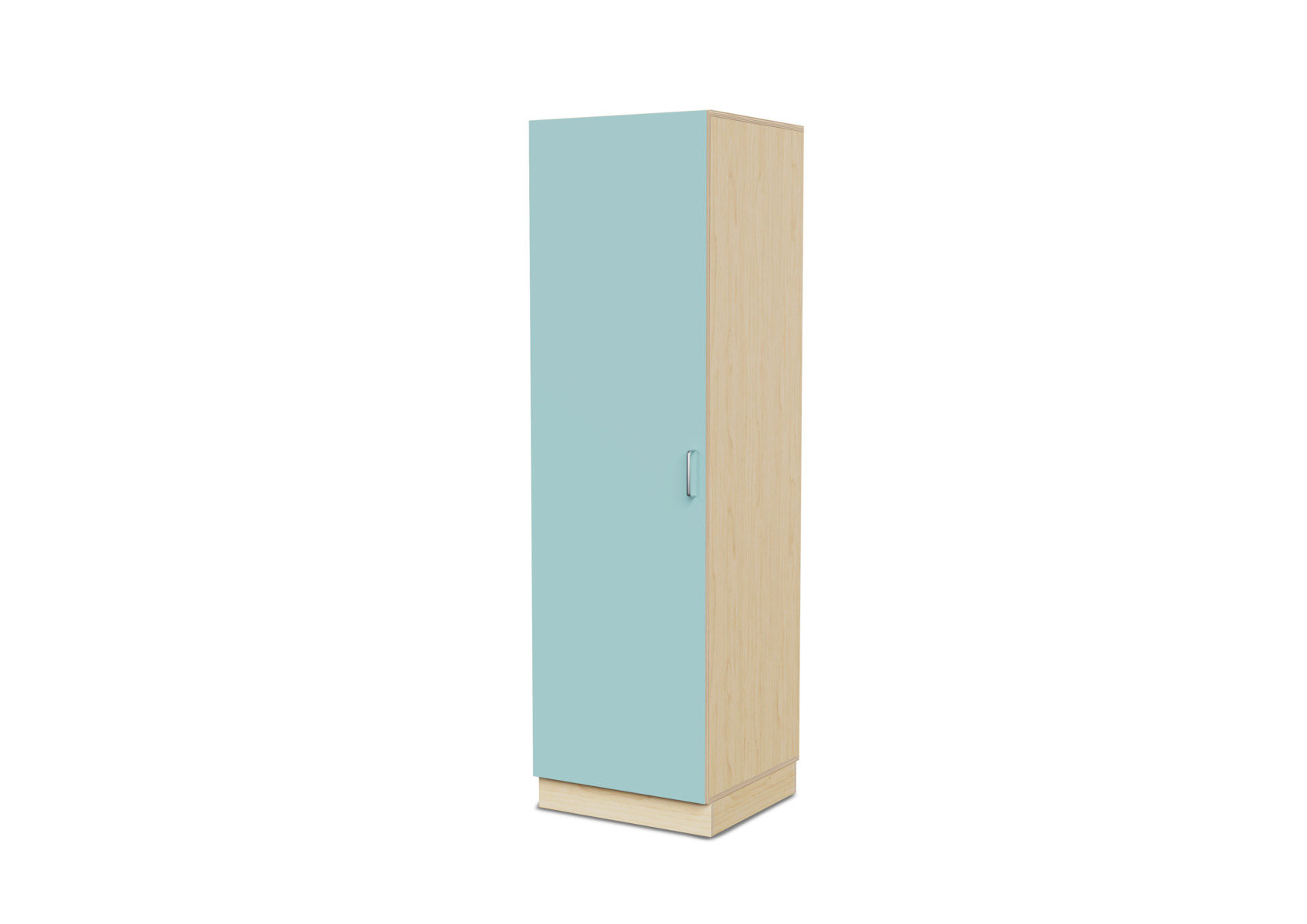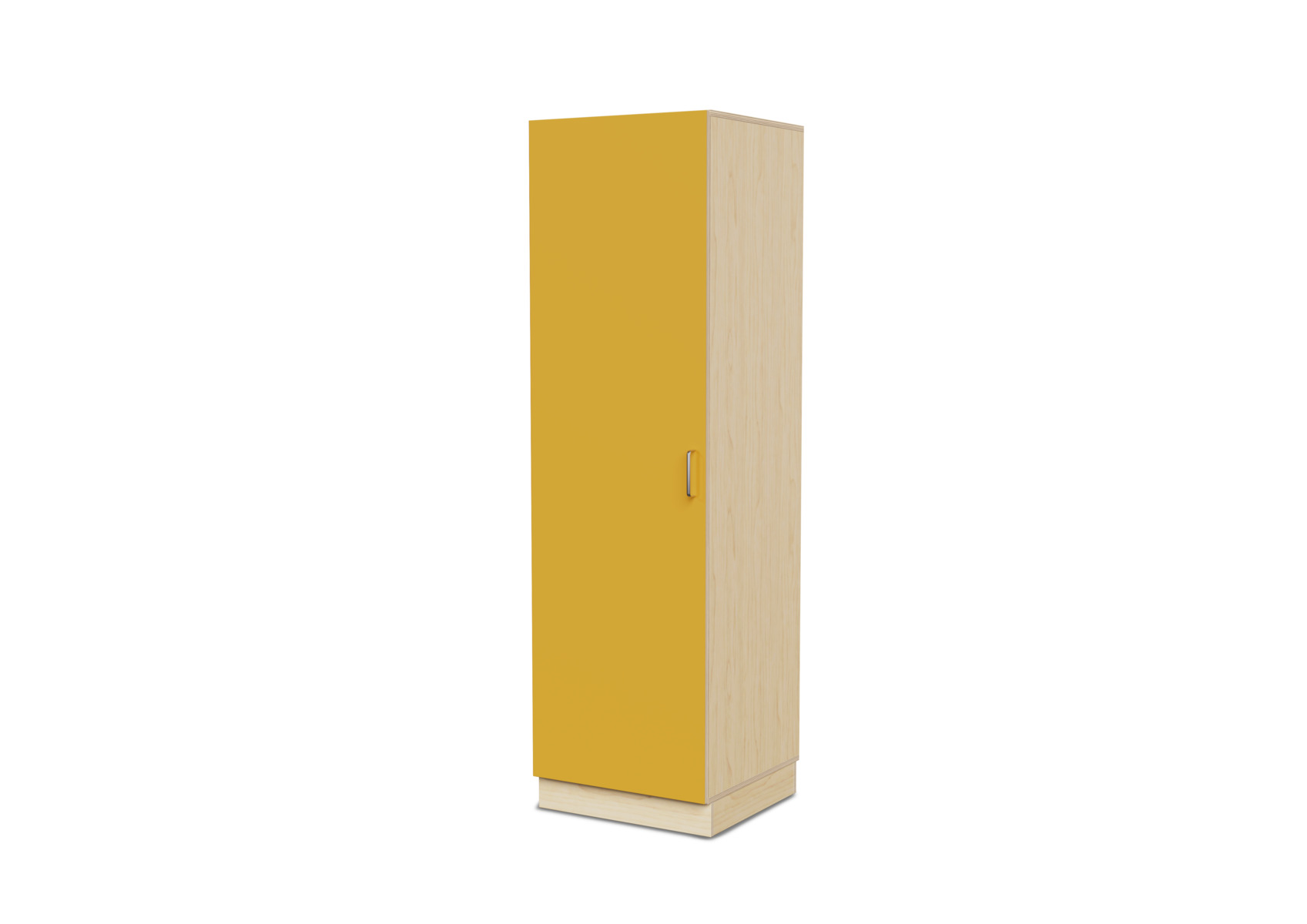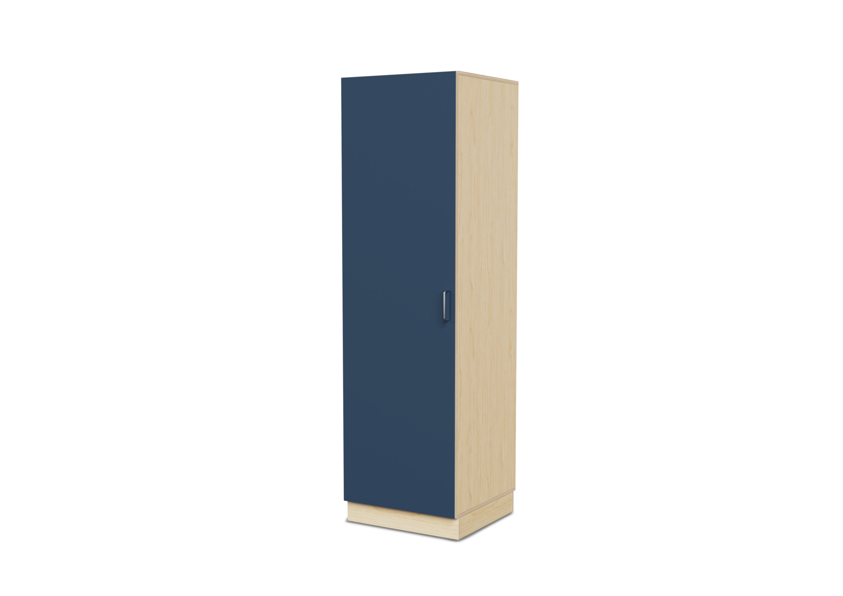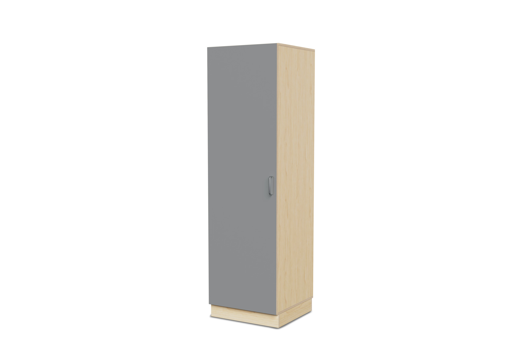 Komplet materialeskab med sokkel og fire hylder. Vinkelbeslag til vægforankring medfølger. Korpus af 18 mm krydsfinér. Dør i højtrykslaminat, birk helt i krydsfinér.