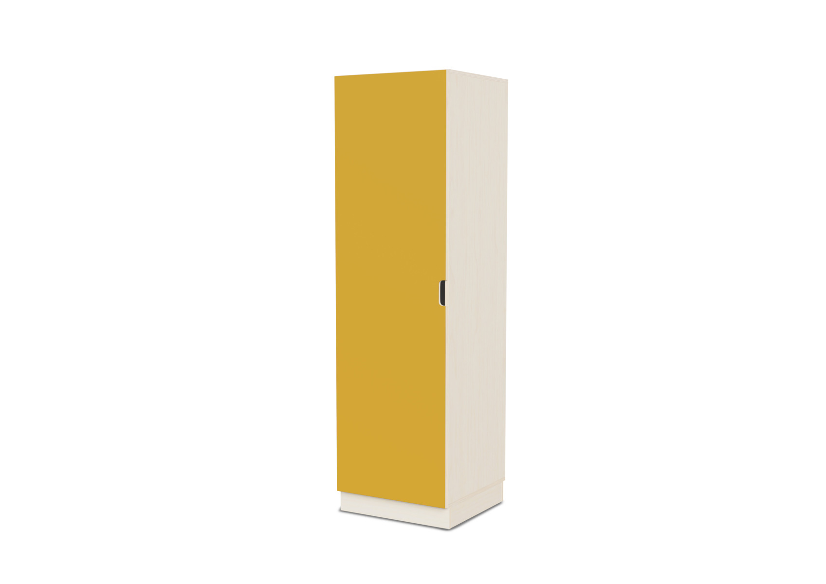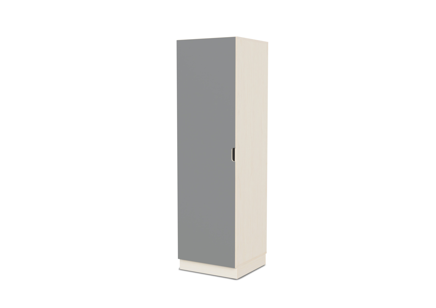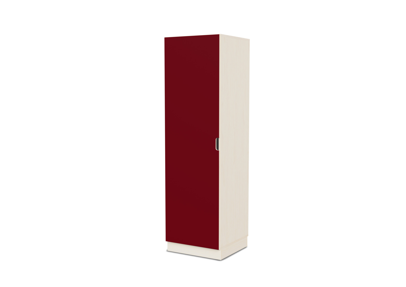 Komplet materialeskab med sokkel og fire hylder. Vinkelbeslag til vægforankring medfølger. Korpus af 18 mm krydsfinér. Dør i højtrykslaminat, birk helt i krydsfinér.