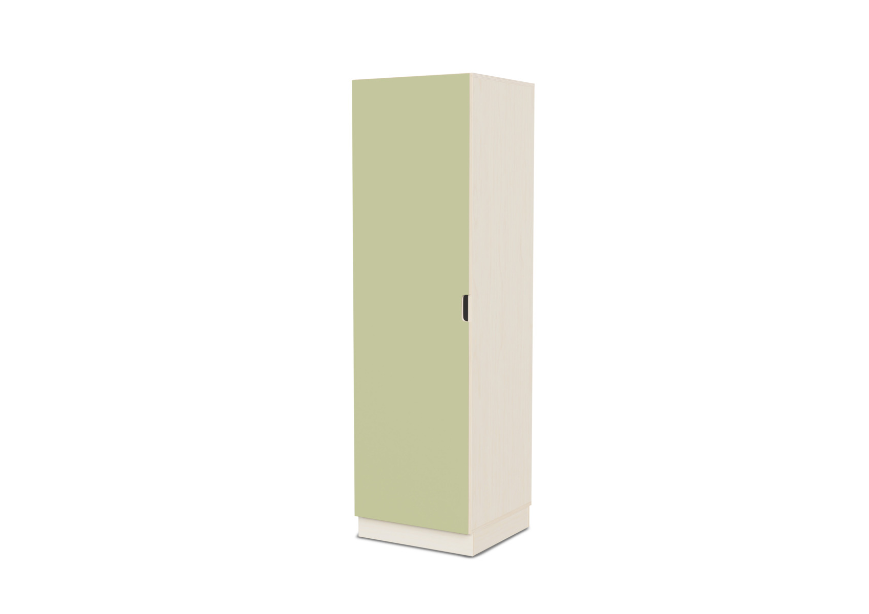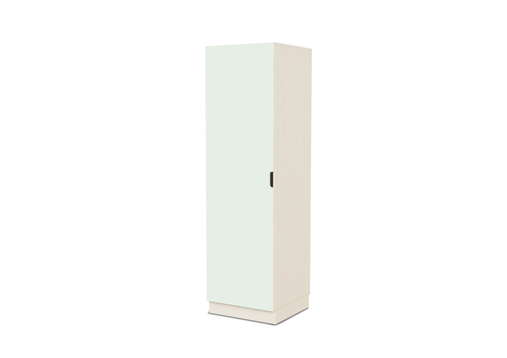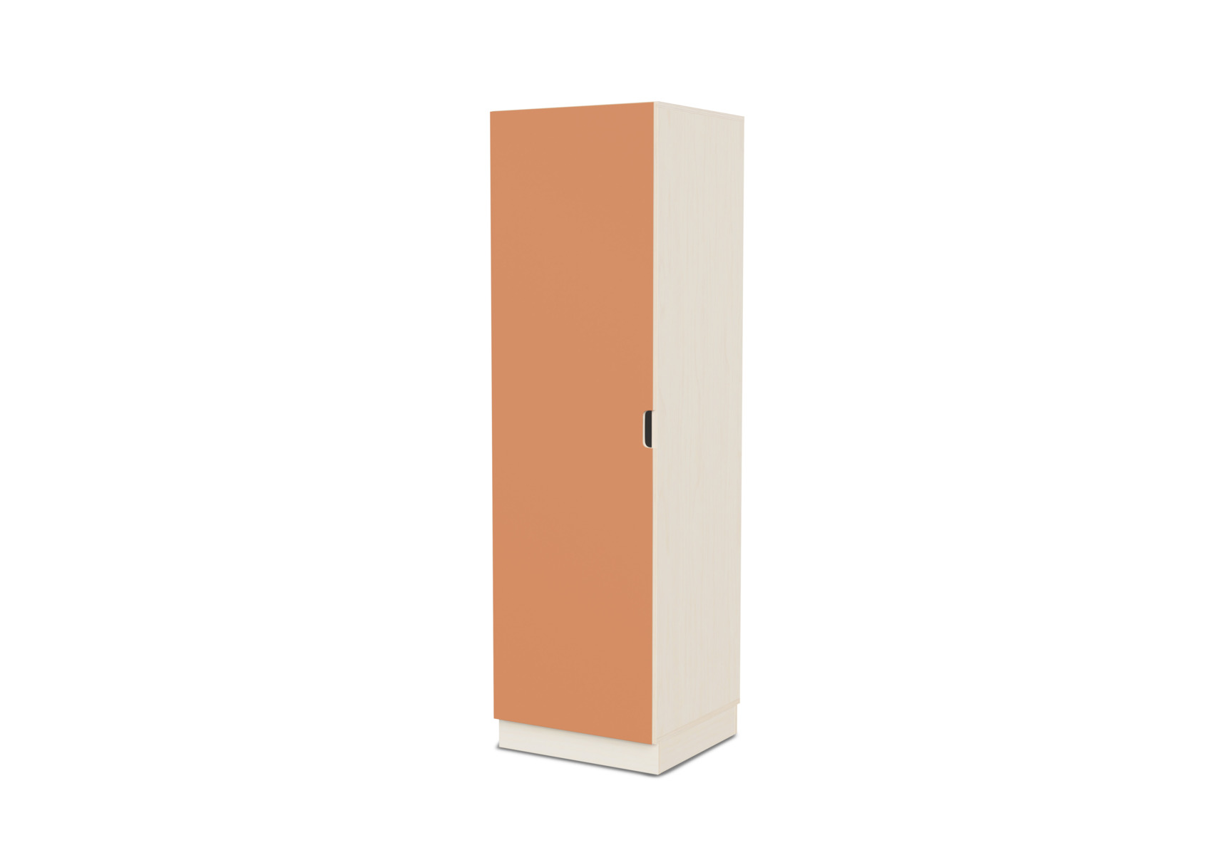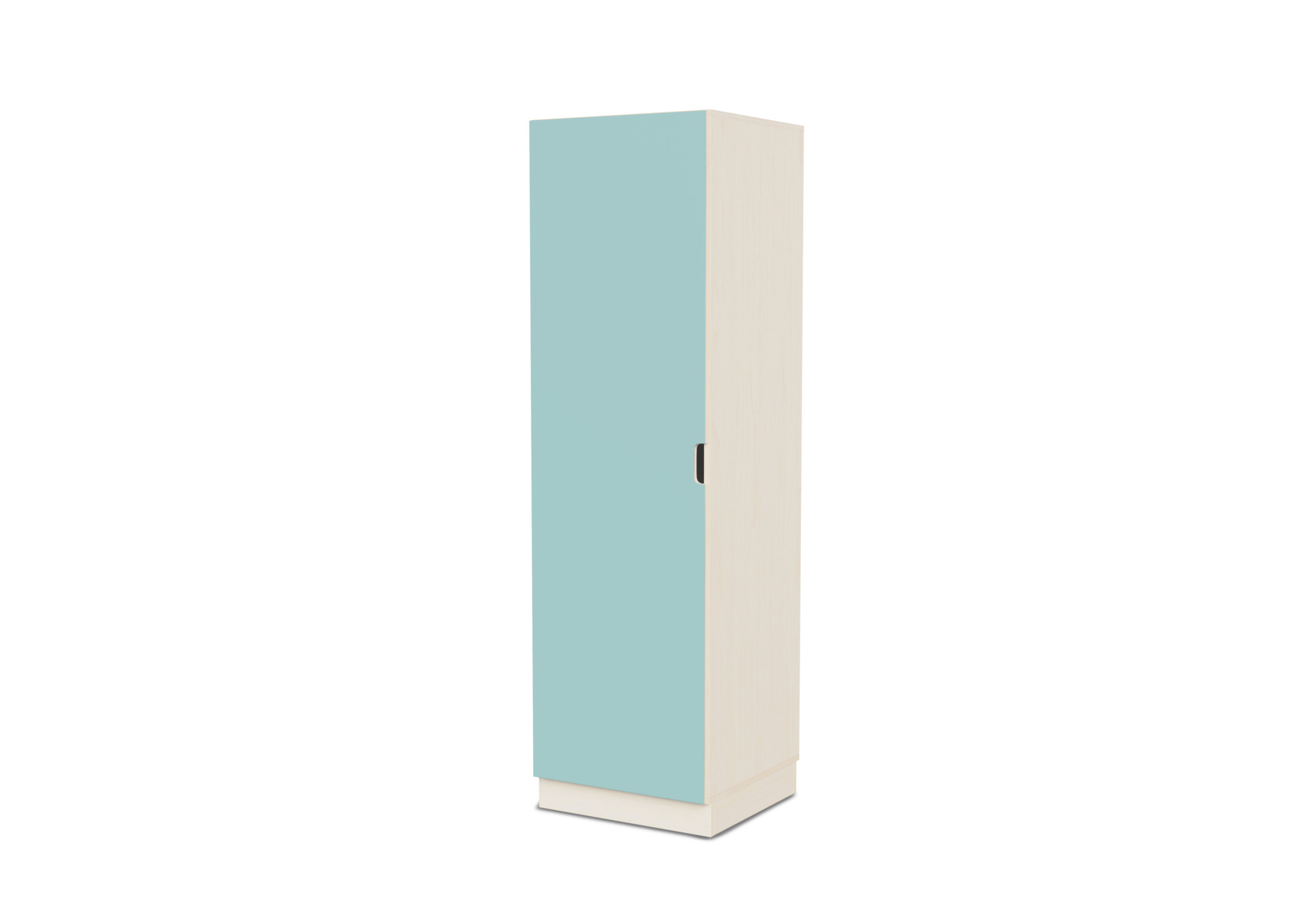 Komplet materialeskab med sokkel og fire hylder. Vinkelbeslag til vægforankring medfølger. Korpus af 18 mm krydsfinér. Dør i højtrykslaminat, birk helt i krydsfinér.