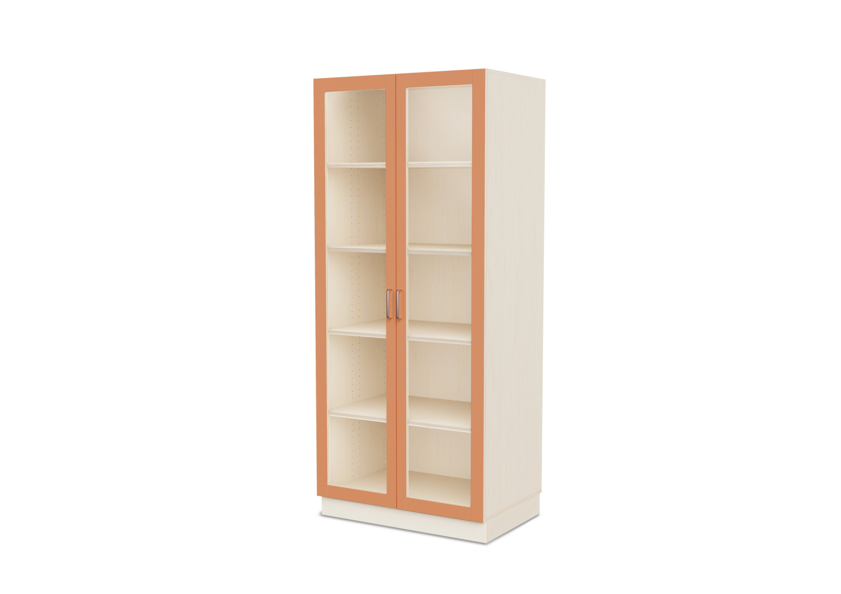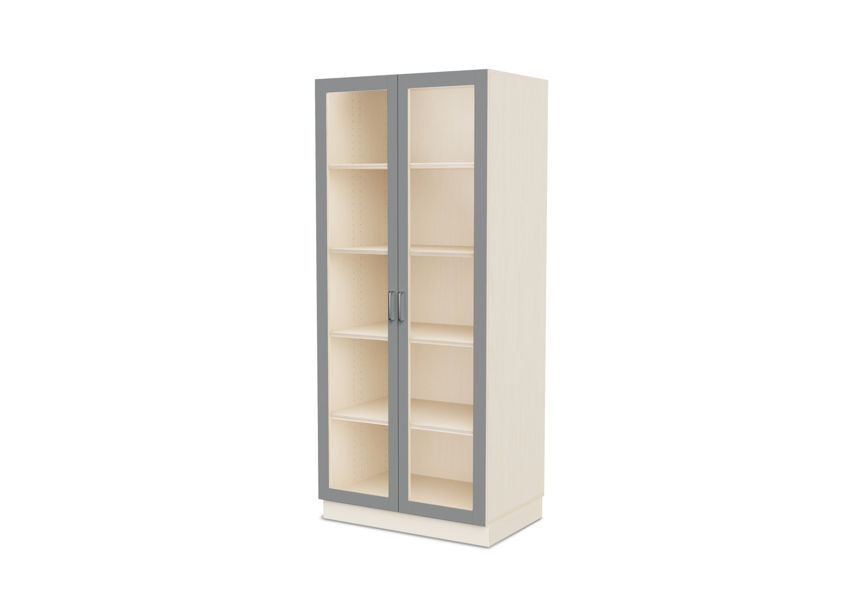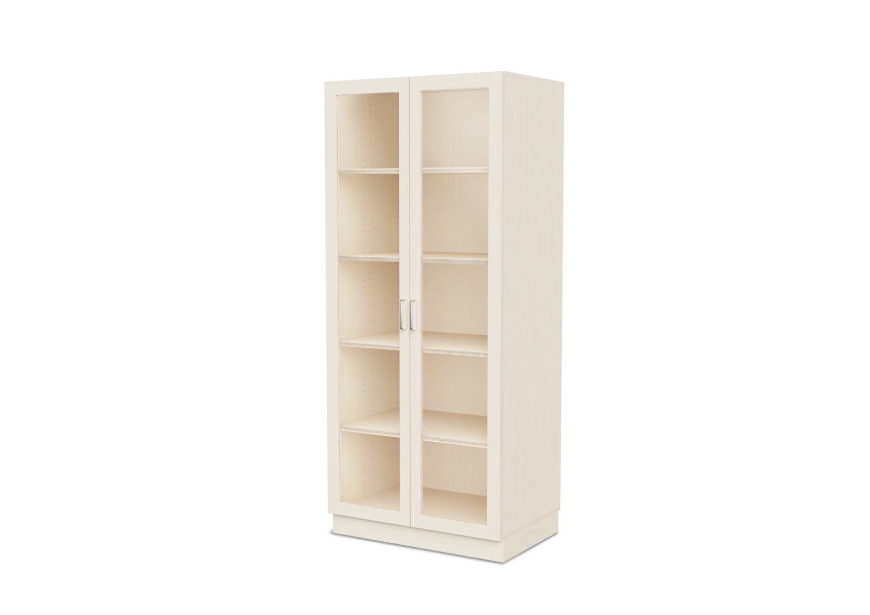 Komplet materialeskab med sokkel og fire hylder. Vinkelbeslag til vægforankring medfølger. Korpus af 18 mm krydsfinér. Dør i højtrykslaminat, birk helt i krydsfinér.