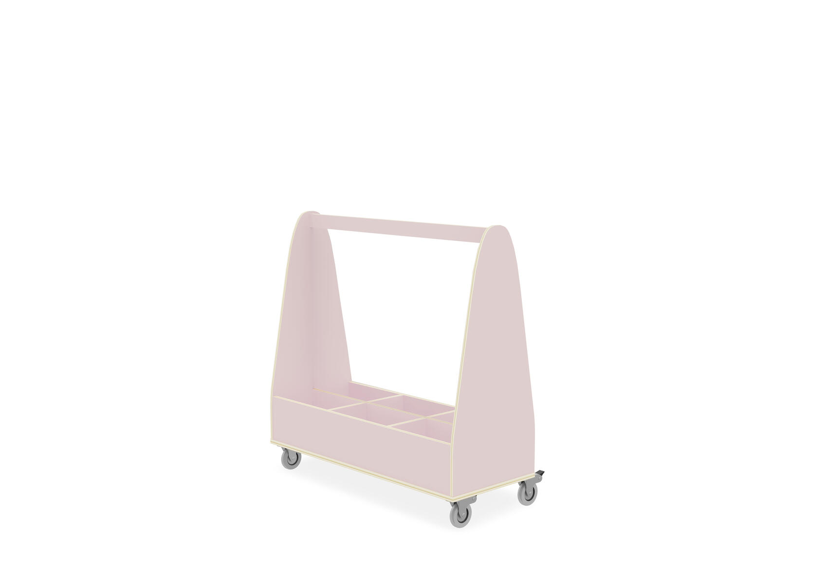 Staffeli med små opbevaringsrum. Færdigmonteret modul. Fremstillet i birkekrydsfiner. Farver med HT har højtrykslaminat og er i 16 mm krydsfiner, mens birk og hvidpigmenteret er i 18 mm krydsfiner. Med plexiplade der deler staffeliet, så det kan bruges på begge sider. Færdigmonteret modul, men hjul med lås skal køber selv montere på. 2 faste og 2 bevægelige hjul. Mål: B88xD36xH89 cm.