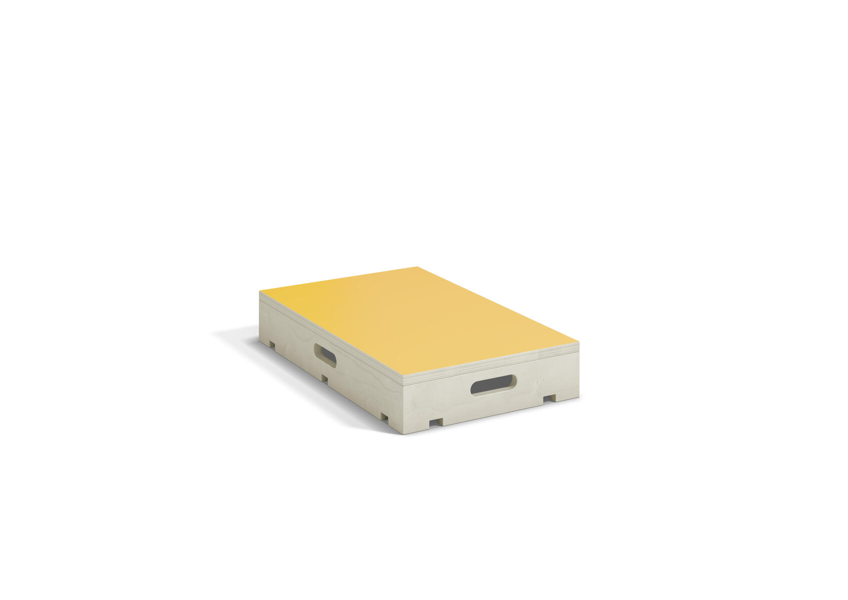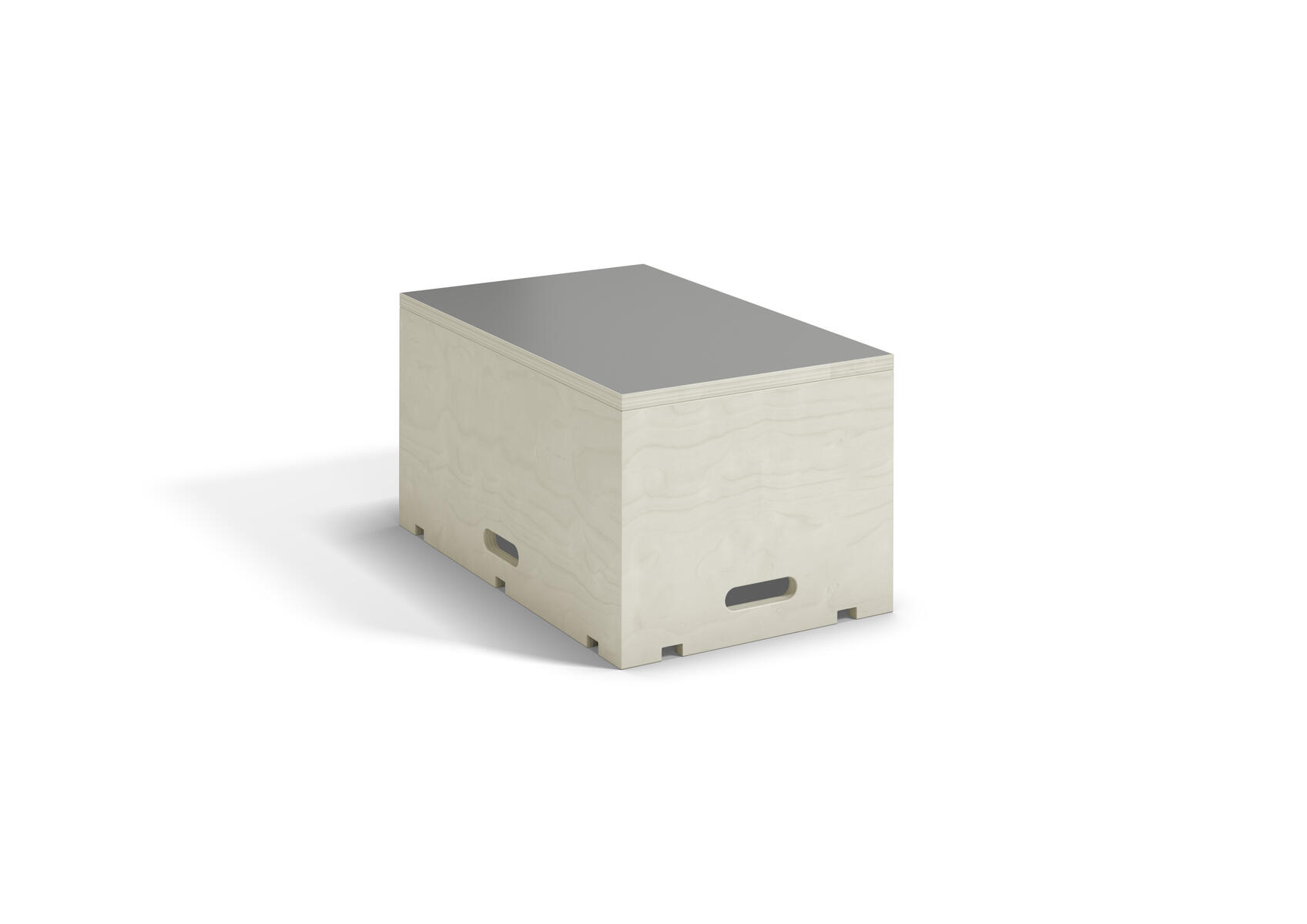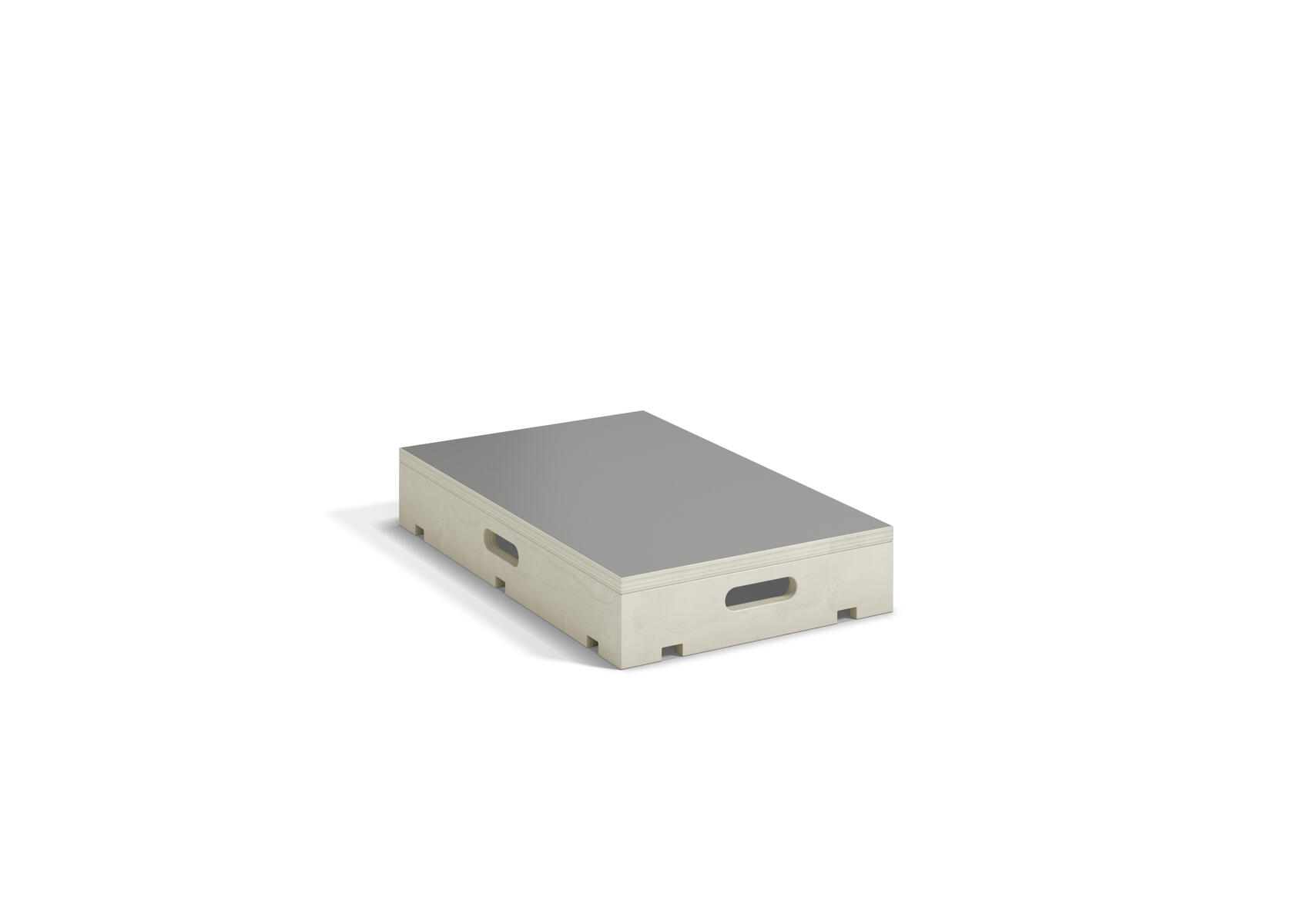 Podium til børnehave. Fås i mange forskellige varianter, som kan bygges sammen i uendelige former. Kan også bygges sammen med vores FIXA opbevaringssystem både i bredden og dybden. Fås i 10 forskellige former. De kan bruges som scene, legeplads, forskellige køretøjer, udstilling, hvileplads...kun fantasien sætter grænser. Fremstillet i 100 % birkekrydsfinér. Alle dele fås i 3 højder. Podiet med birketop er helt i krydsfinér, de andre med farvet højtrykslaminat på toppen. Tørres af med en fugtig klud. Mål: 59x36 cm. Svanemærket, licensnummer 5031 0099.