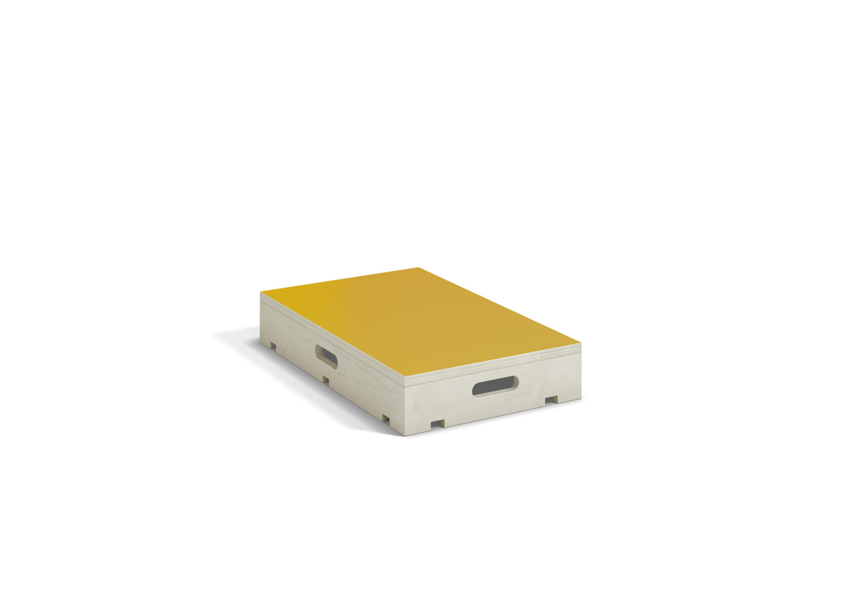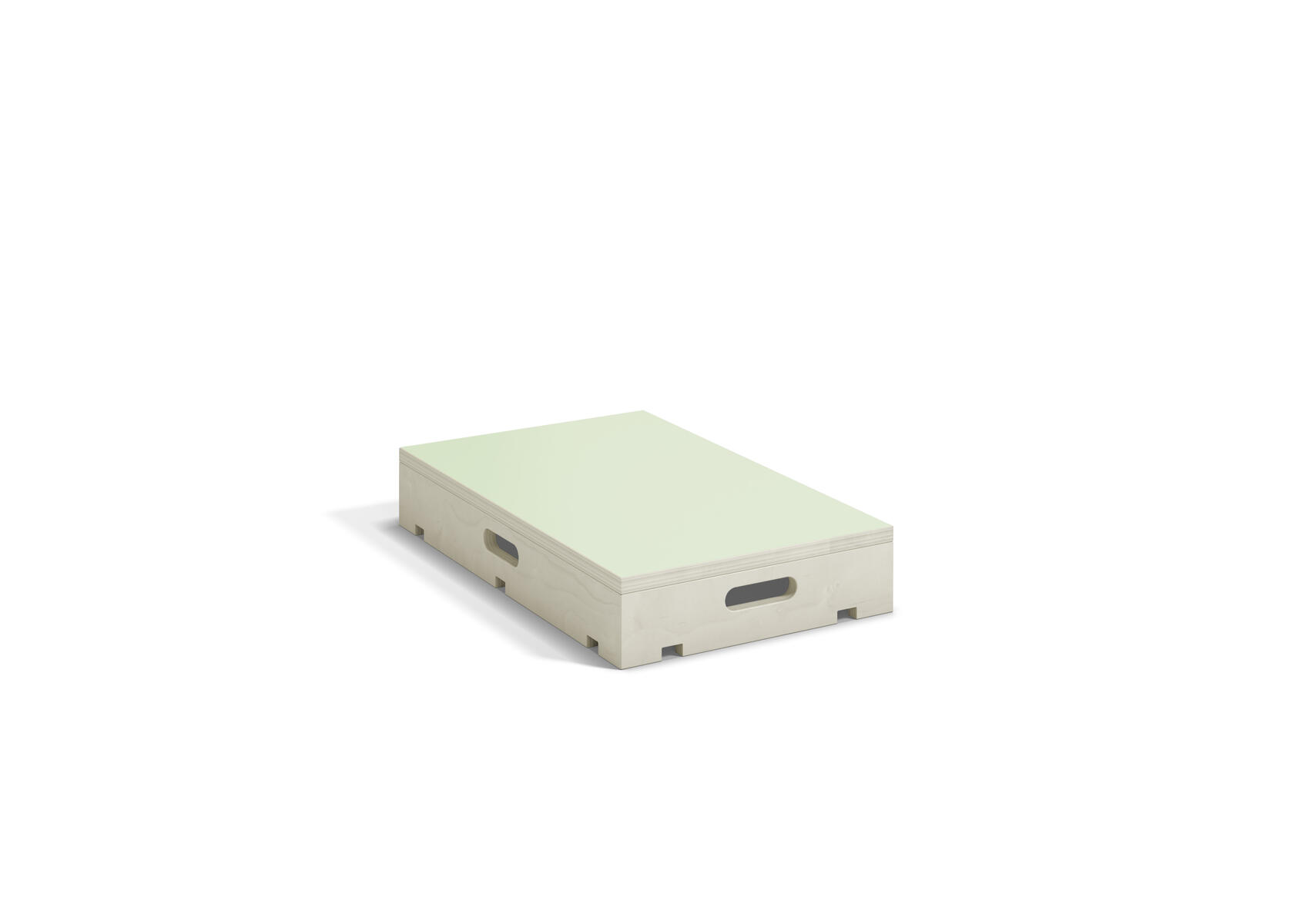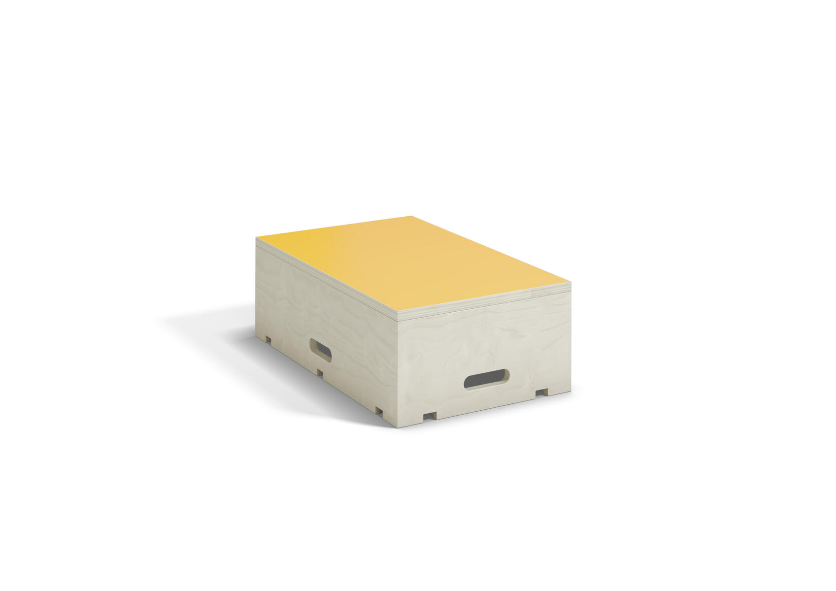 Podium til børnehave. Fås i mange forskellige varianter, som kan bygges sammen i uendelige former. Kan også bygges sammen med vores FIXA opbevaringssystem både i bredden og dybden. Fås i 10 forskellige former. De kan bruges som scene, legeplads, forskellige køretøjer, udstilling, hvileplads...kun fantasien sætter grænser. Fremstillet i 100 % birkekrydsfinér. Alle dele fås i 3 højder. Podiet med birketop er helt i krydsfinér, de andre med farvet højtrykslaminat på toppen. Tørres af med en fugtig klud. Mål: 59x36 cm. Svanemærket, licensnummer 5031 0099.
