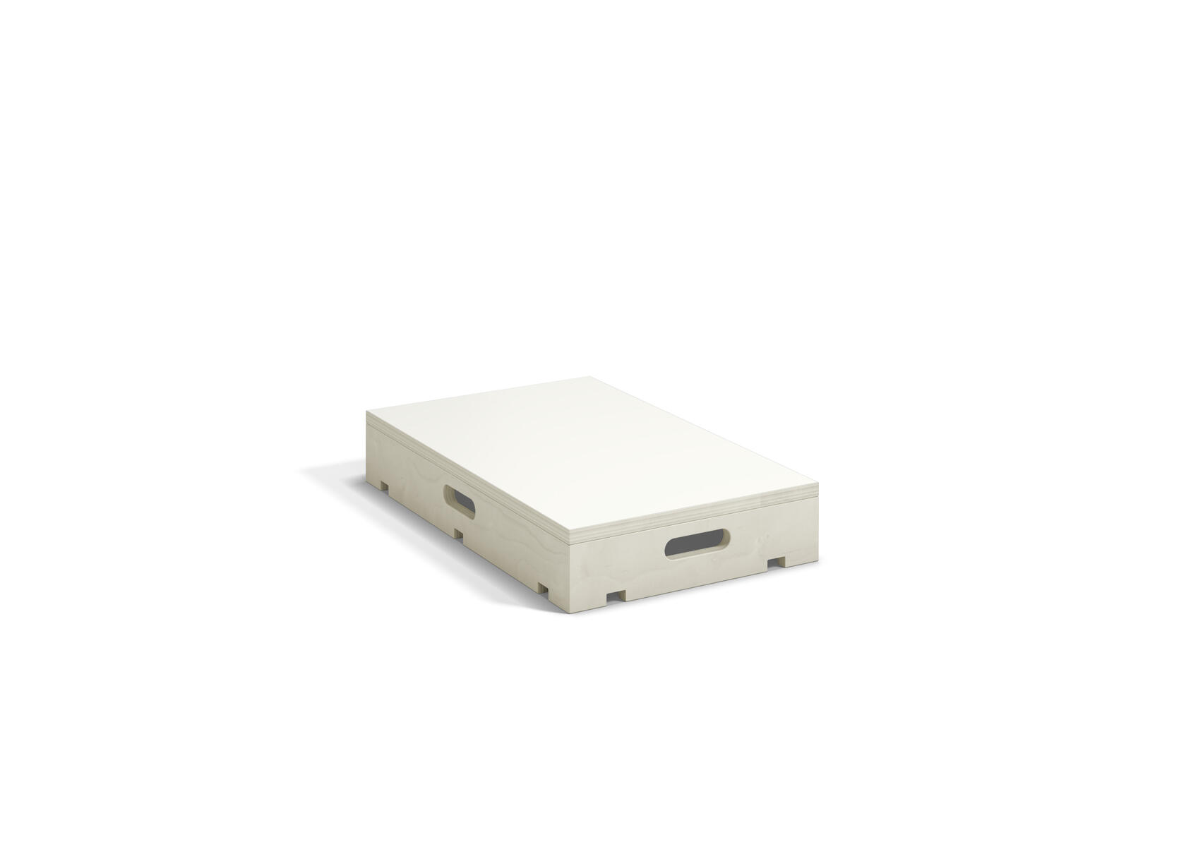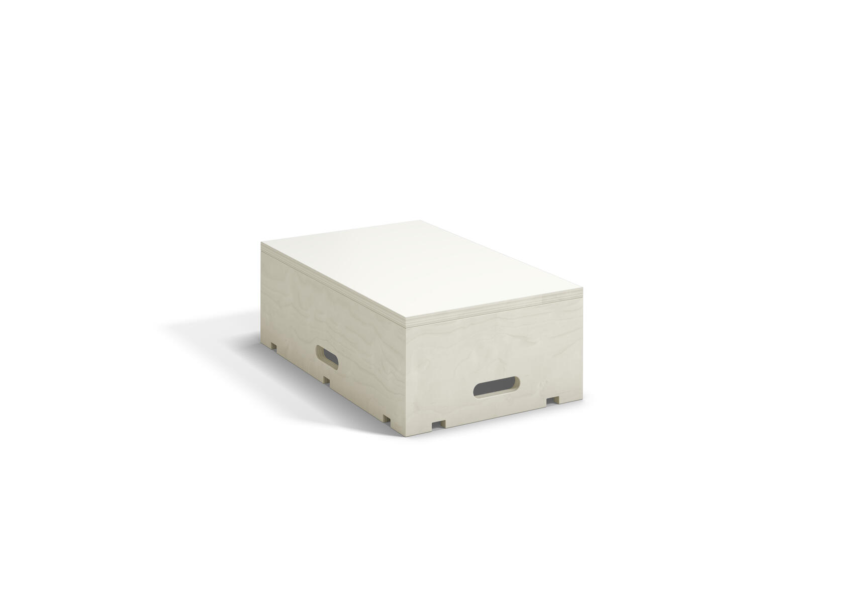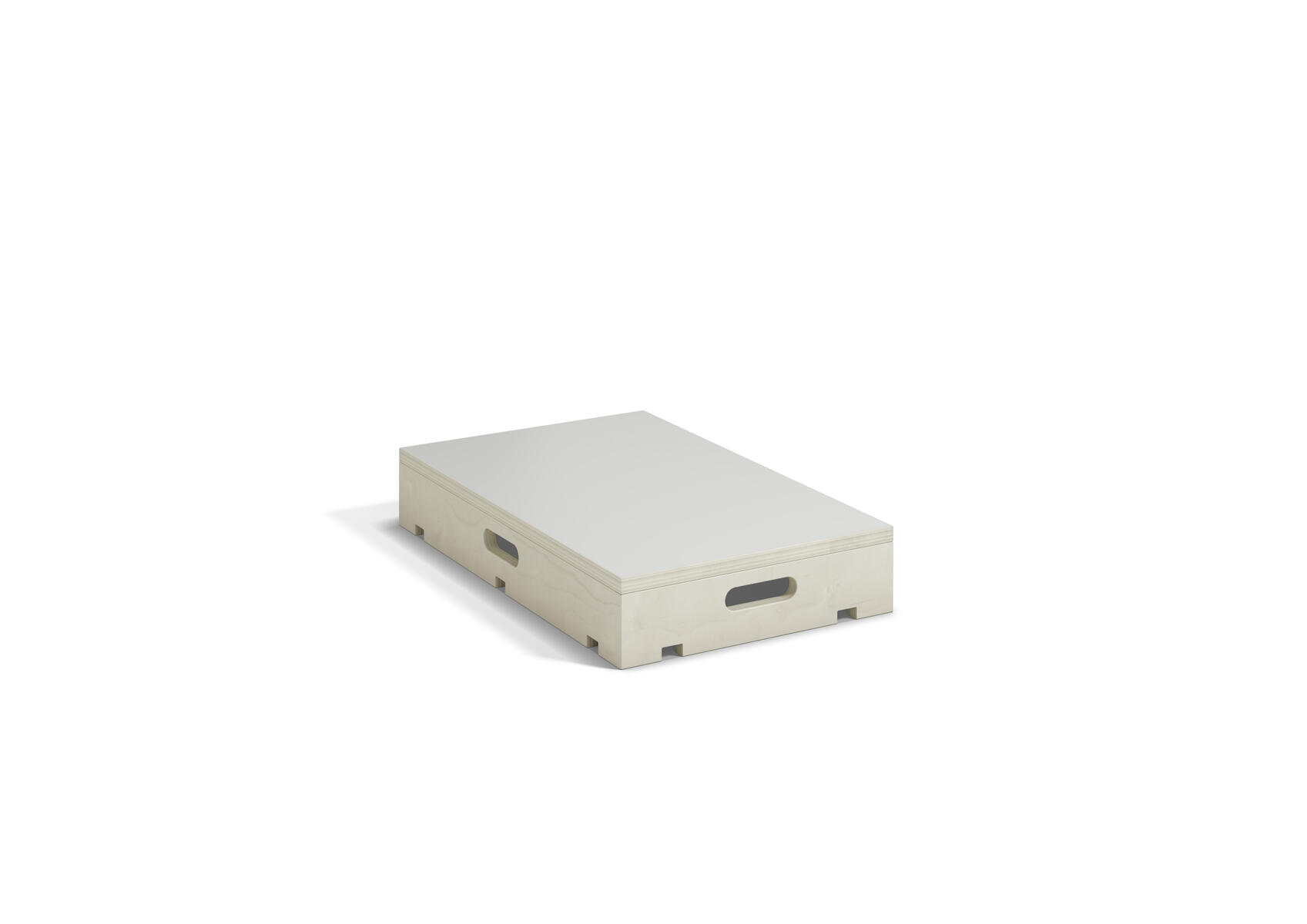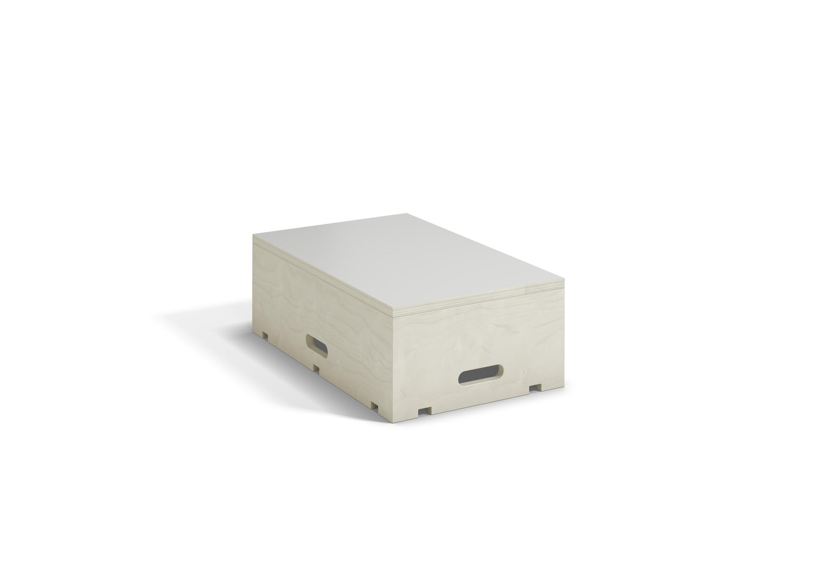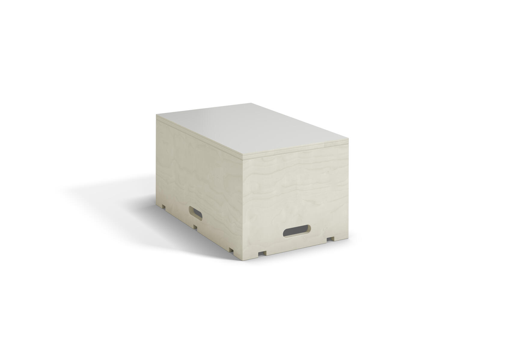 Podium til børnehave. Fås i mange forskellige varianter, som kan bygges sammen i uendelige former. Kan også bygges sammen med vores FIXA opbevaringssystem både i bredden og dybden. Fås i 10 forskellige former. De kan bruges som scene, legeplads, forskellige køretøjer, udstilling, hvileplads...kun fantasien sætter grænser. Fremstillet i 100 % birkekrydsfinér. Alle dele fås i 3 højder. Podierne er enten helt hvidpigmenterede eller med farvet højtrykslaminat på toppen. Tørres af med en fugtig klud. Mål: 59x36 cm. Svanemærket, licensnummer 5031 0099.
