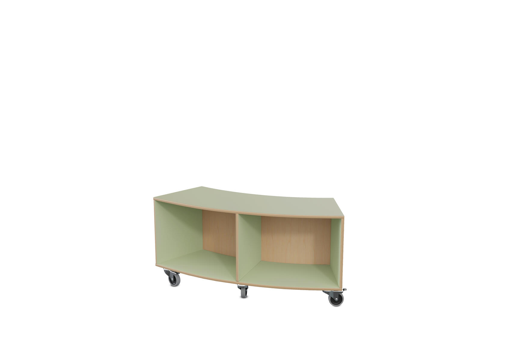 Buet opbevaring i birkekrydsfiner med højtrykslaminat. Birk og hvidpigmenteret fås kun i krydsfiner. Tynd ryg i 4 mm krydsfiner. Vælg mellem kun korpus, korpus med 5 ben eller korpus med 5 låsbare hjul. Benene/hjulene måler 10 cm. Passer til siddemodulet Snake uden ryg. Svanemærket, licensnummer 5031 0099.