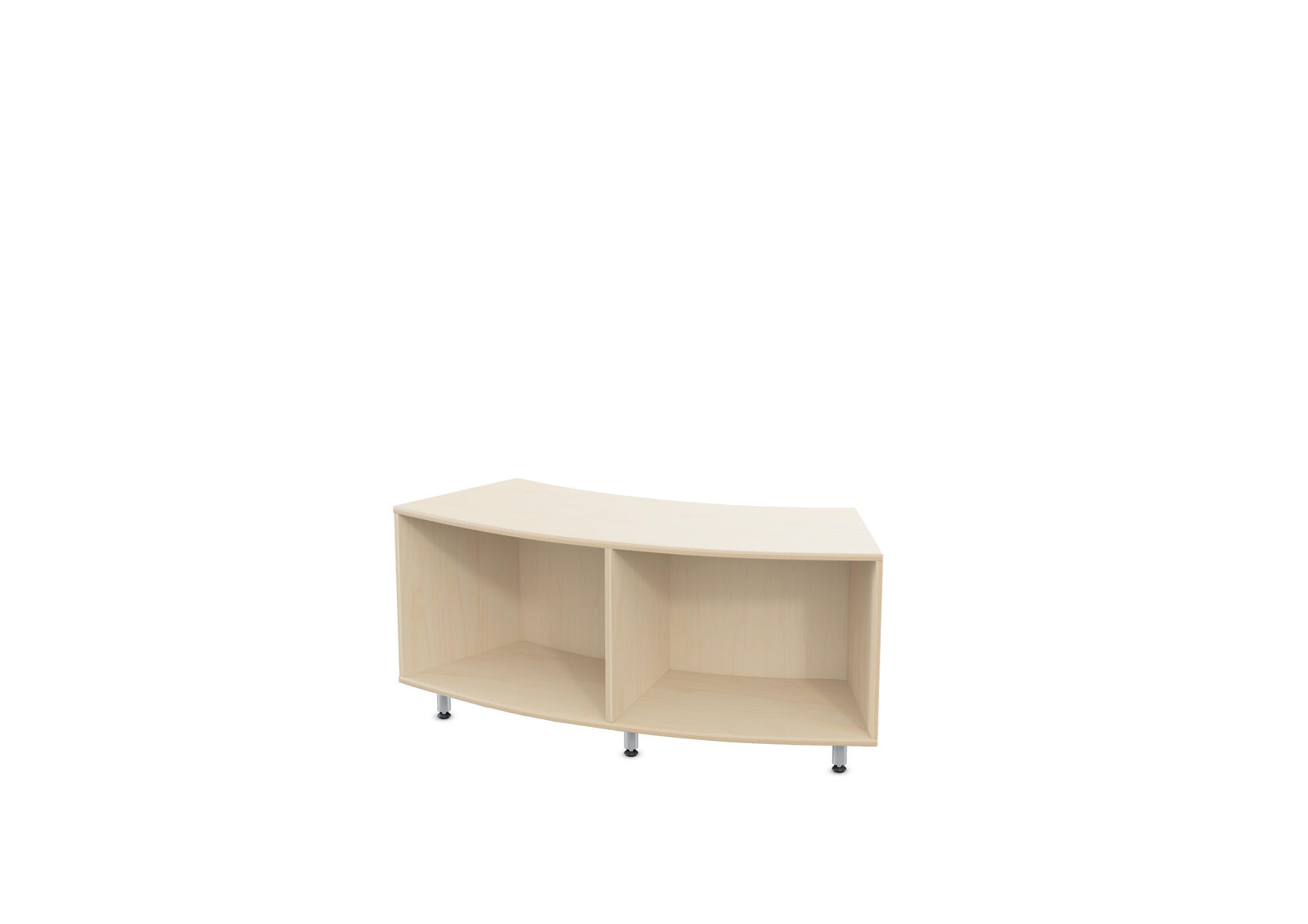 Buet opbevaring i birkekrydsfiner med højtrykslaminat. Birk og hvidpigmenteret fås kun i krydsfiner. Tynd ryg i 4 mm krydsfiner. Vælg mellem kun korpus eller korpus med 5 ben. Benene måler 10 cm. Passer til siddemodulet Snake uden ryg. Svanemærket, licensnummer 5031 0099.