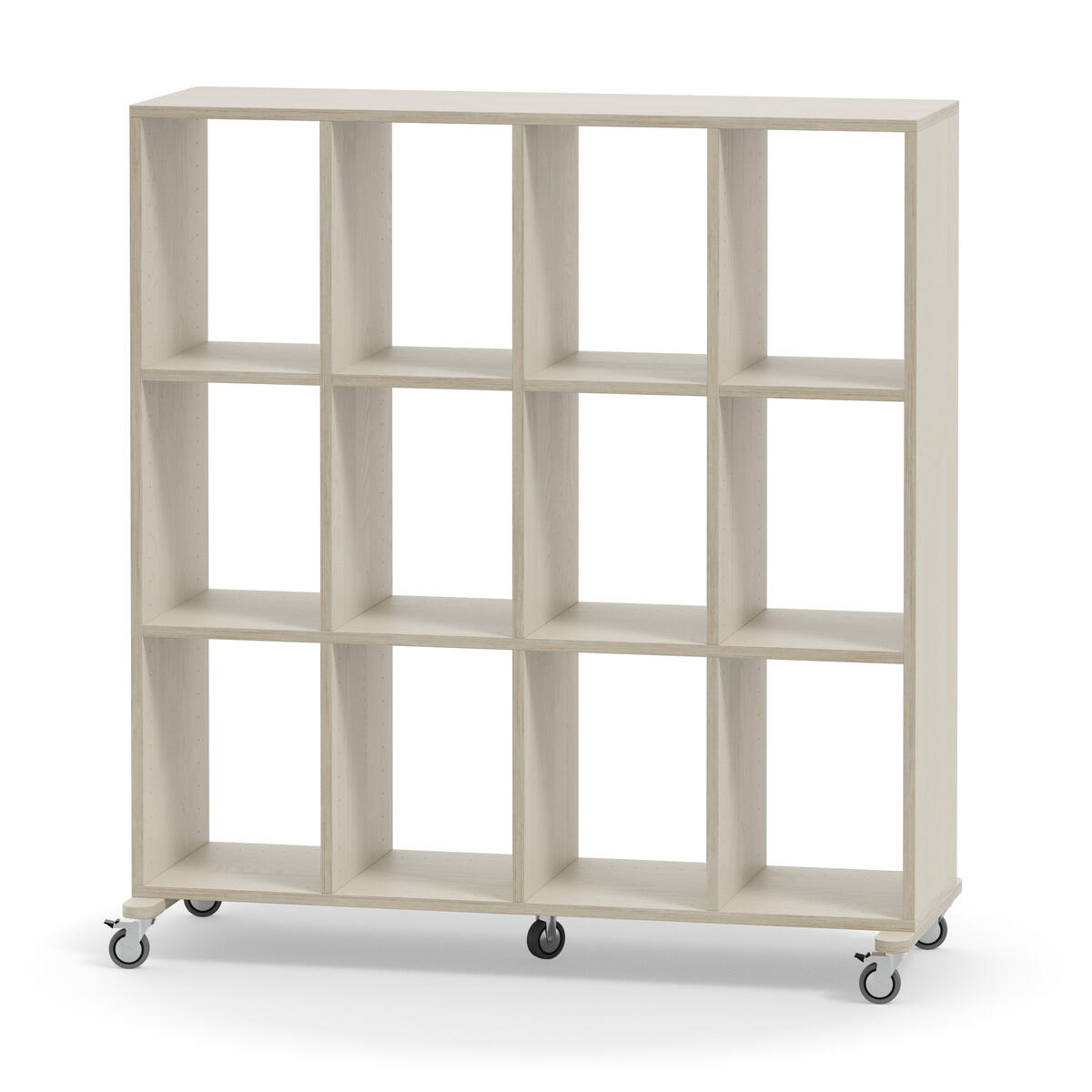 Færdigsamlet Fixa opbevaring med 12 rum. Åben opbevaring uden bagside. Skillevægge og hylder er faste. Støtteben med bevægelige hjul med bremser. Kræver enkel montering af støtteben. Svanemærket, licensnummer 5031 0099.