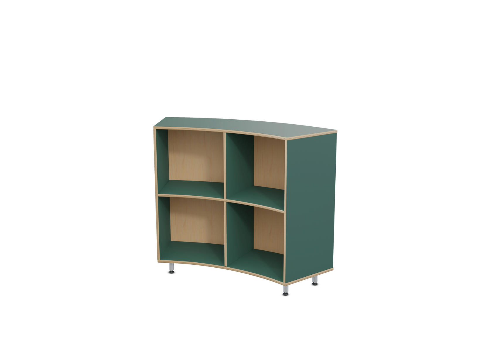 Buet opbevaring i birkekrydsfiner med højtrykslaminat. Birk og hvidpigmenteret fås kun i krydsfiner. Tynd ryg i 4 mm krydsfiner. Vælg mellem kun korpus eller korpus med 5 ben. Benene måler 10 cm. Passer til siddemodulet Snake uden ryg. Svanemærket, licensnummer 5031 0099.