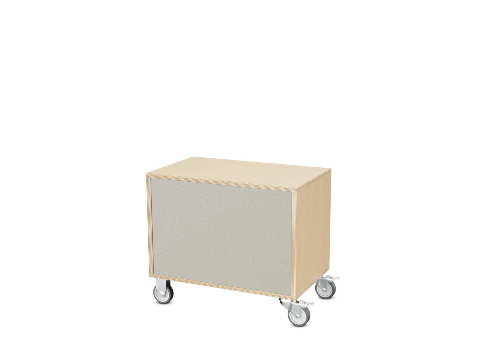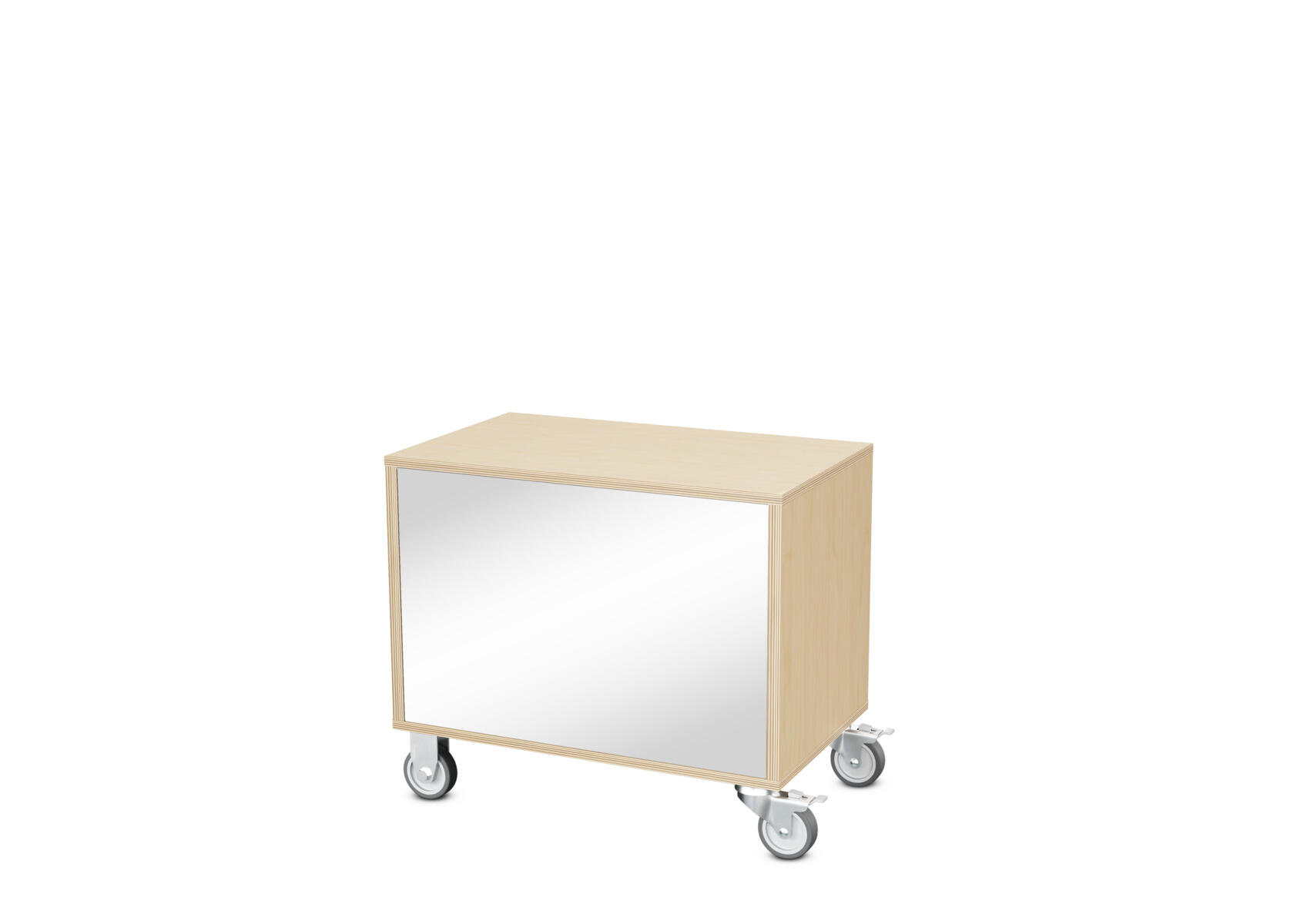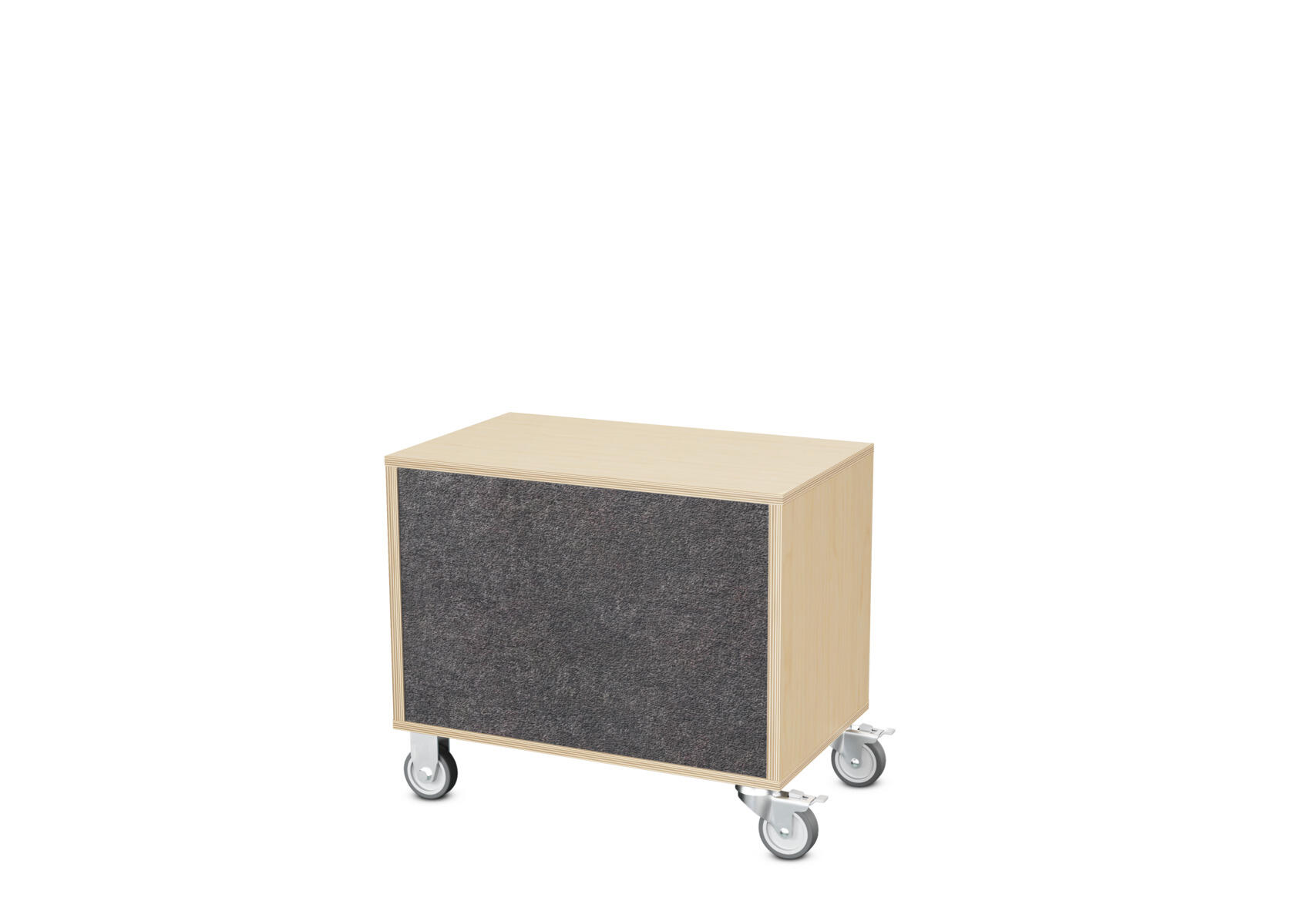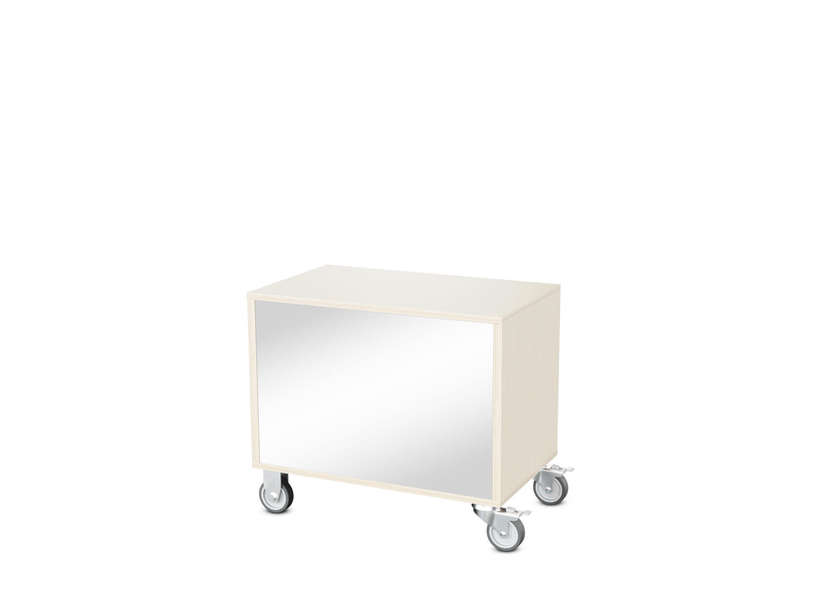 Opbevaring med mulighed for at vælge forskellige rygge, så den passer til forskellige behov. Uden forborede huller til justerbare hylder og med faste mellemvægge. Fire hjul, hvoraf 2 er faste og 2 drejelige med bremse.