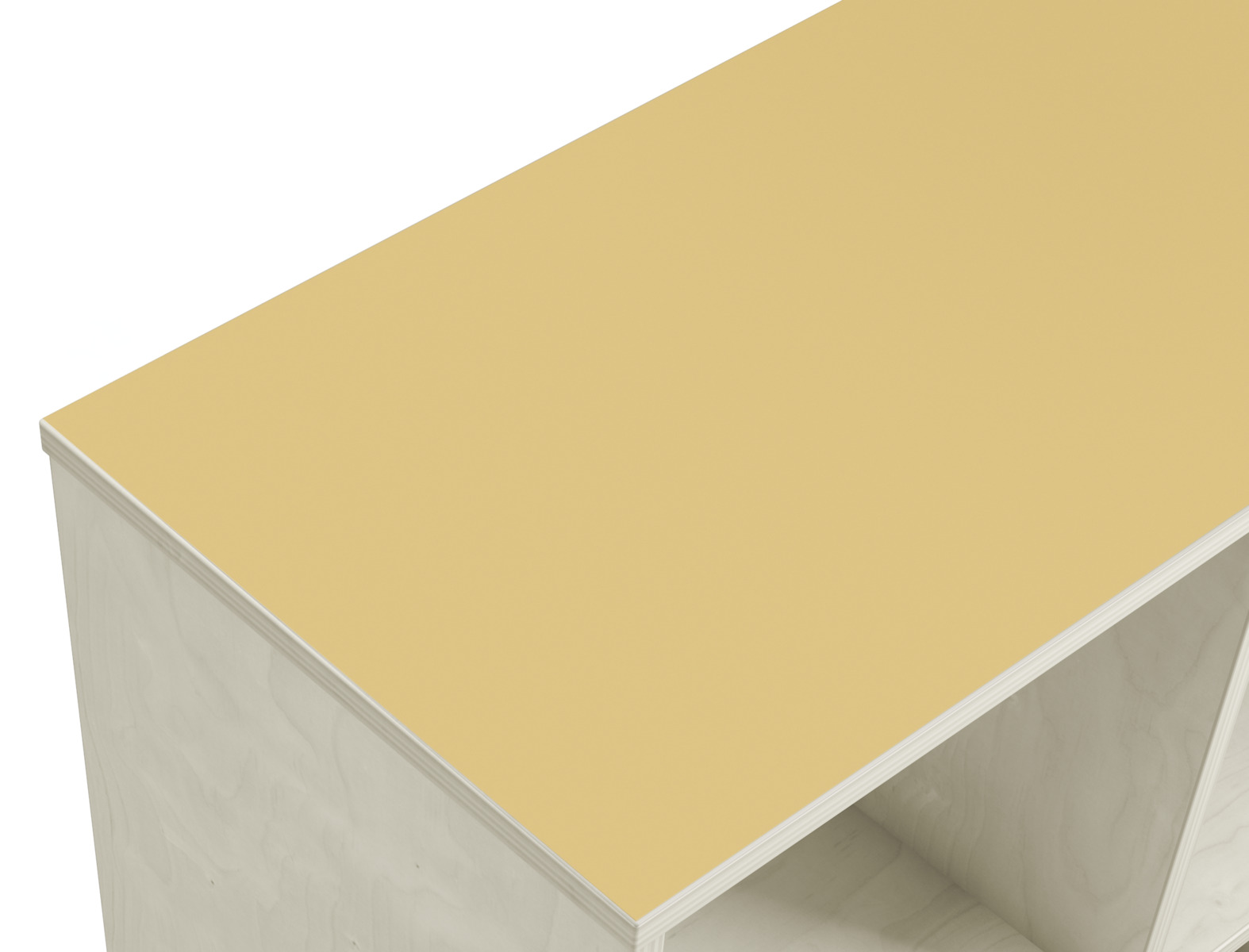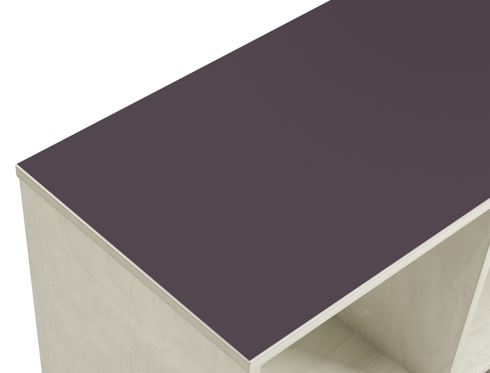 Reolopbevaring uden ryg. Vælg farve på højtrykslaminat på toppen. Ved valg af hvidpigmenteret som top er reolen helt i krydsfiner. Produceret i høj kvalitet birkekrydsfinér. Leveres med 2 faste hjul til den ene kortsiden og 2 bevægelige, men låsbare, hjul til den anden. Forborede huller til nem montering af hjul. Kubus opbevaringskasser passer ikke til denne opbevaring. Svanemærket, licensnummer 5031 0099.
