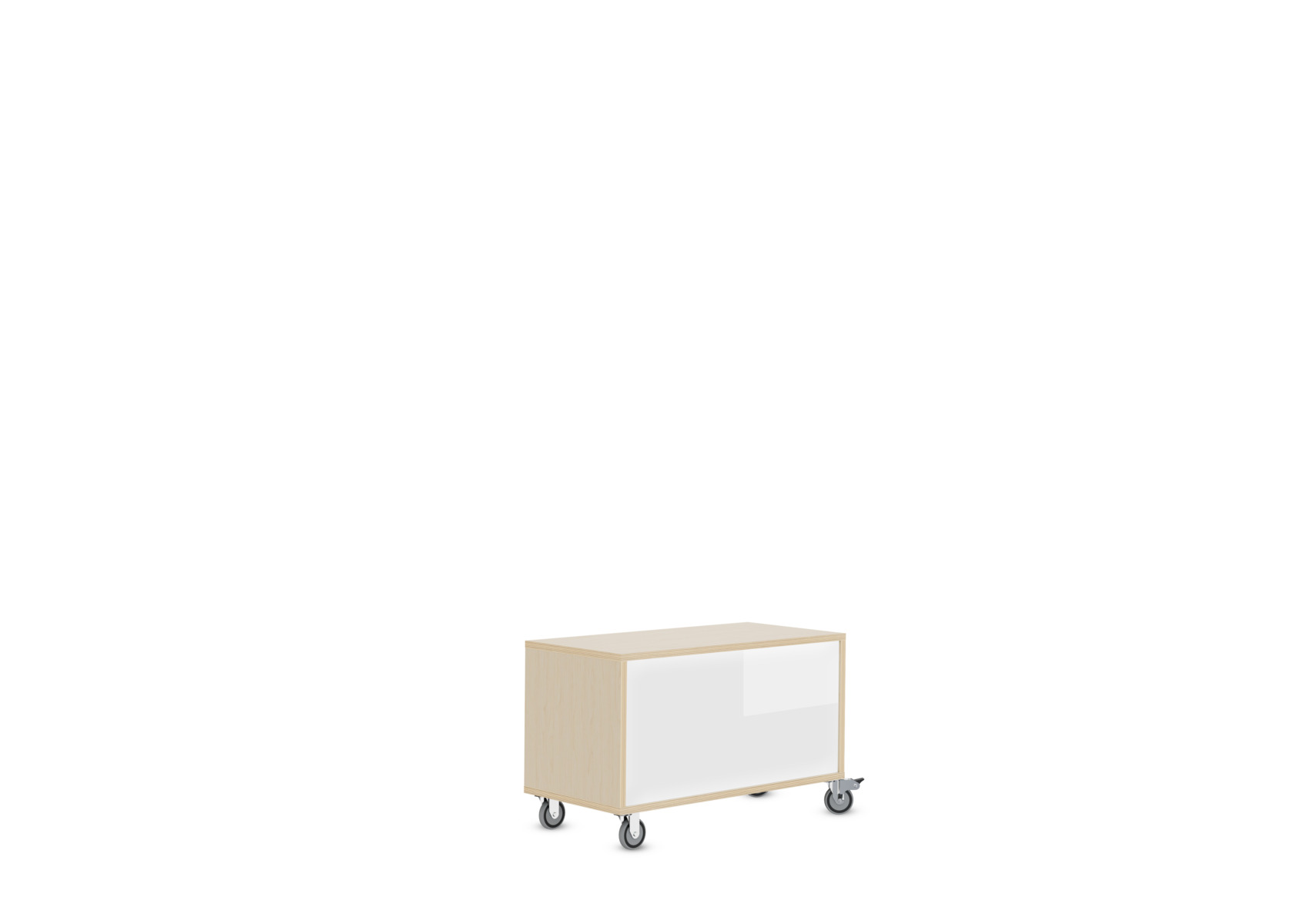 Opbevaring med ryg i magnetisk whiteboard fremstillet i birkekrydsfiner af høj kvalitet. 2 faste hjul på den ene kortside, 2 bevægelige hjul med lås på den anden side. Forborede huller gør montering af hjul nem og hurtig.