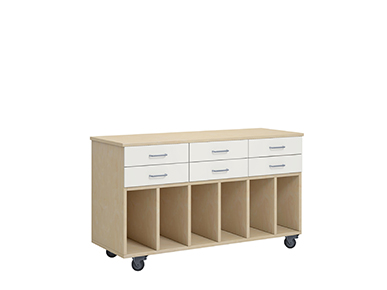 Norden-serien af opbevaringsmøbler fås i flere modeller og størrelser og omfatter specialtilpassede materialeskabe til specifikke opbevaringsbehov, såsom værktøj, tekstilmateriale, madrasser, boghylder, elevopbevaring og pulte. Dette gør dem perfekte til at skabe et sammenhængende look i hele skolen eller børnehaven. Stammen er lavet af laminat og kombineres med døre og skuffer i enten laminat eller ekstra holdbart højtrykslaminat. Vores materialeskabe med hylder kan fås med kort leveringstid.
