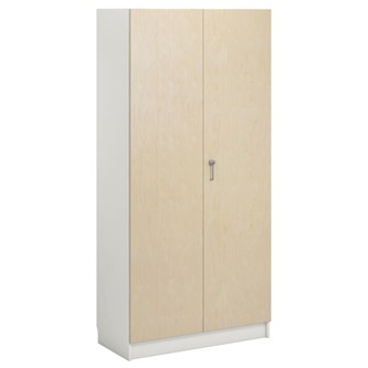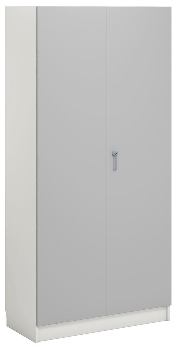 Materialeskab med korpus i decor laminat. Fronter i decor laminat eller højtrykslaminat. Indeholder 5 hylder, hvoraf 3 er flytbare. 2 låger med espagnolette-lås (inkl. 2 nøgler). Lågerne kan åbnes i 170° vinkel.