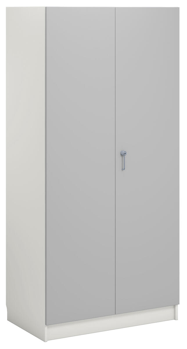 Materialeskab med korpus i decor laminat. Fronter i decor laminat eller højtrykslaminat. Indeholder 5 hylder, hvoraf 3 er flytbare. 2 låger med espagnolette-lås (inkl. 2 nøgler). Lågerne kan åbnes i 170° vinkel.