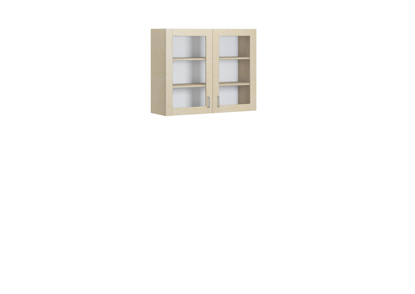 Overskab med stel i decor laminat. Fronter fås enten i decor laminat eller højtrykslaminat. Hængsler med softclose. Indrettet med 2 flytbare hylder. 2 døre med sikkerhedsglas og greb.