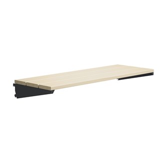 Bruges til Wille skinnesystem. Passer til både væghængte og fritstående modeller. Nem at justere i højden. Massiv hylde i 3 dele med konsol. Knager kan købes separat og monteres på bænken, så den kan bruges som garderobehylde. Dybde 32 cm og tykkelse 2 cm i massiv lakeret birk. Vælg farve på konsol.