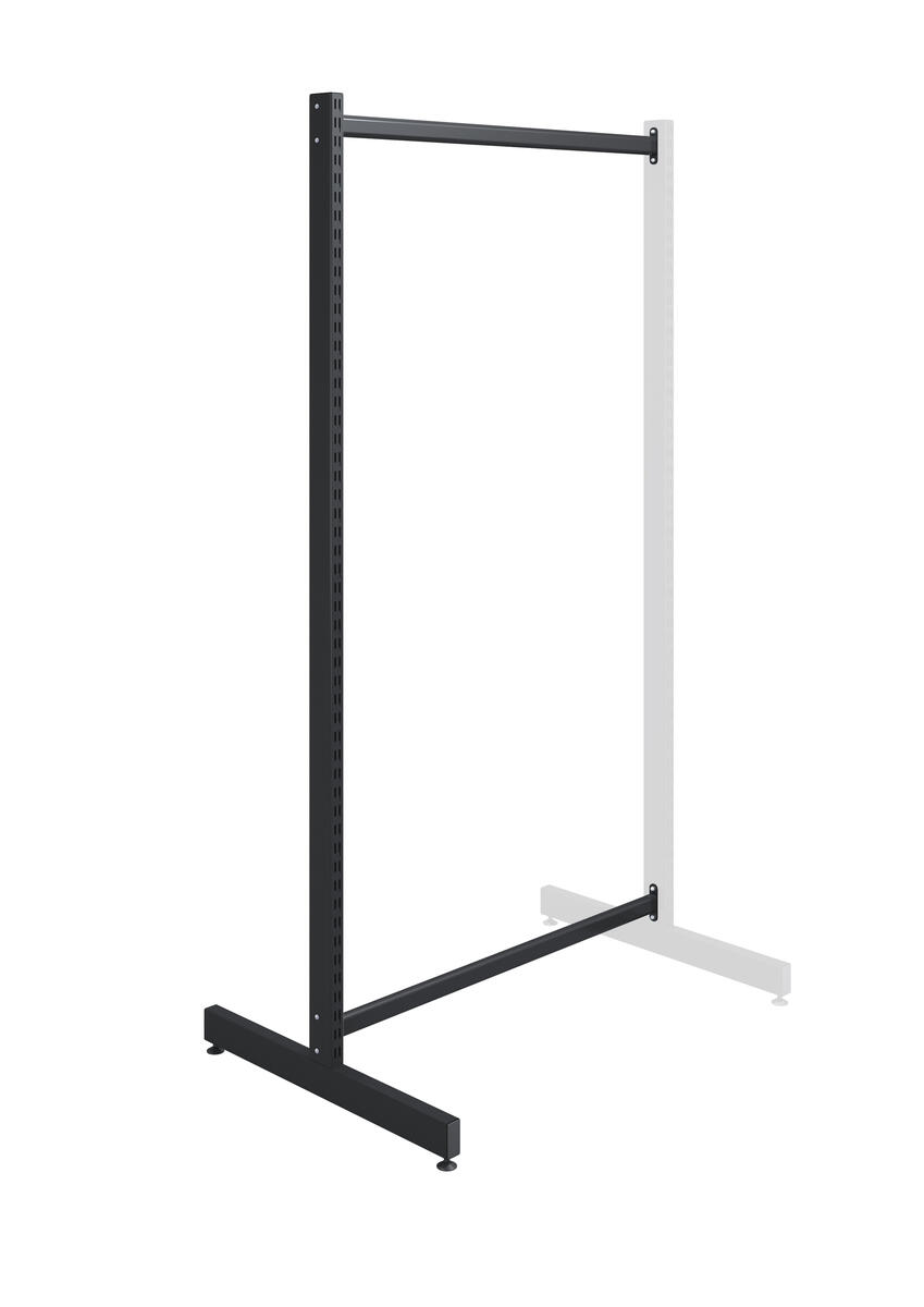Bruges til Wille skinnesystem. Placer mod væg og byg videre med T-stativ tilbygningsmodul, når der er behov for mere plads. Indeholder 1 T-stativ 180 cm højt med 2 mellemstænger med en bredde på 75 cm. Dobbeltsidig. Vægten af indretning skal fordeles jævnt mellem begge sider.
