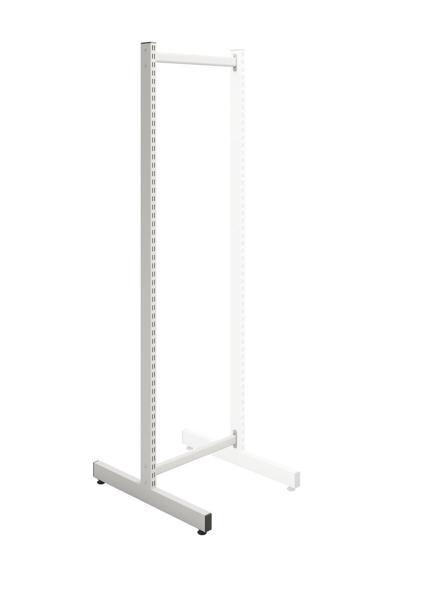 Bruges til Wille skinnesystem. Placer mod væg og byg videre med T-stativ tilbygningsmodul, når der er behov for mere plads. Indeholder 1 T-stativ 180 cm højt med 2 mellemstænger med en bredde på 75 cm. Dobbeltsidig. Vægten af indretning skal fordeles jævnt mellem begge sider.