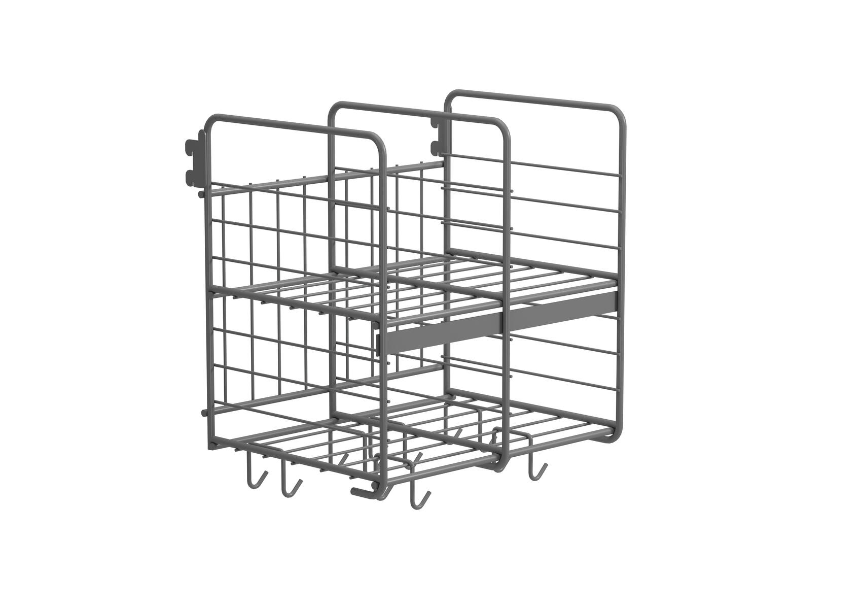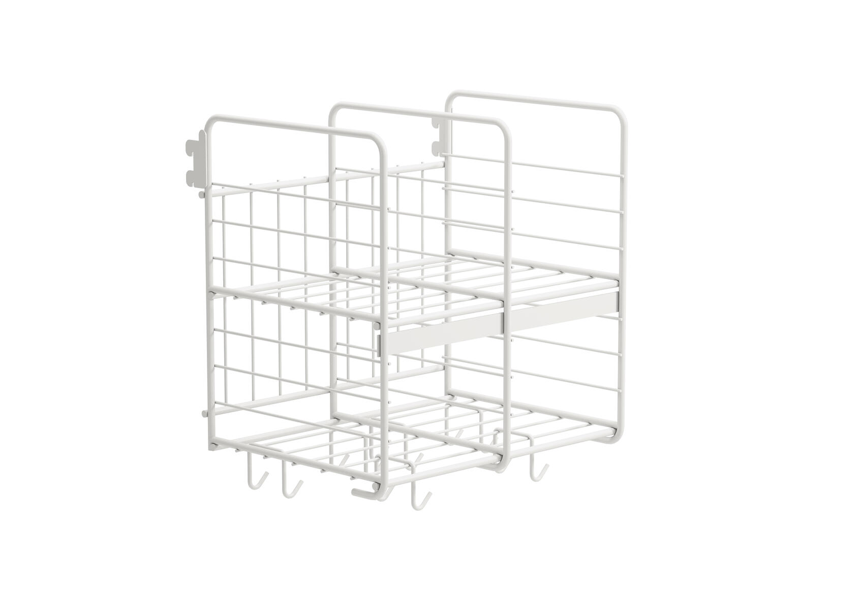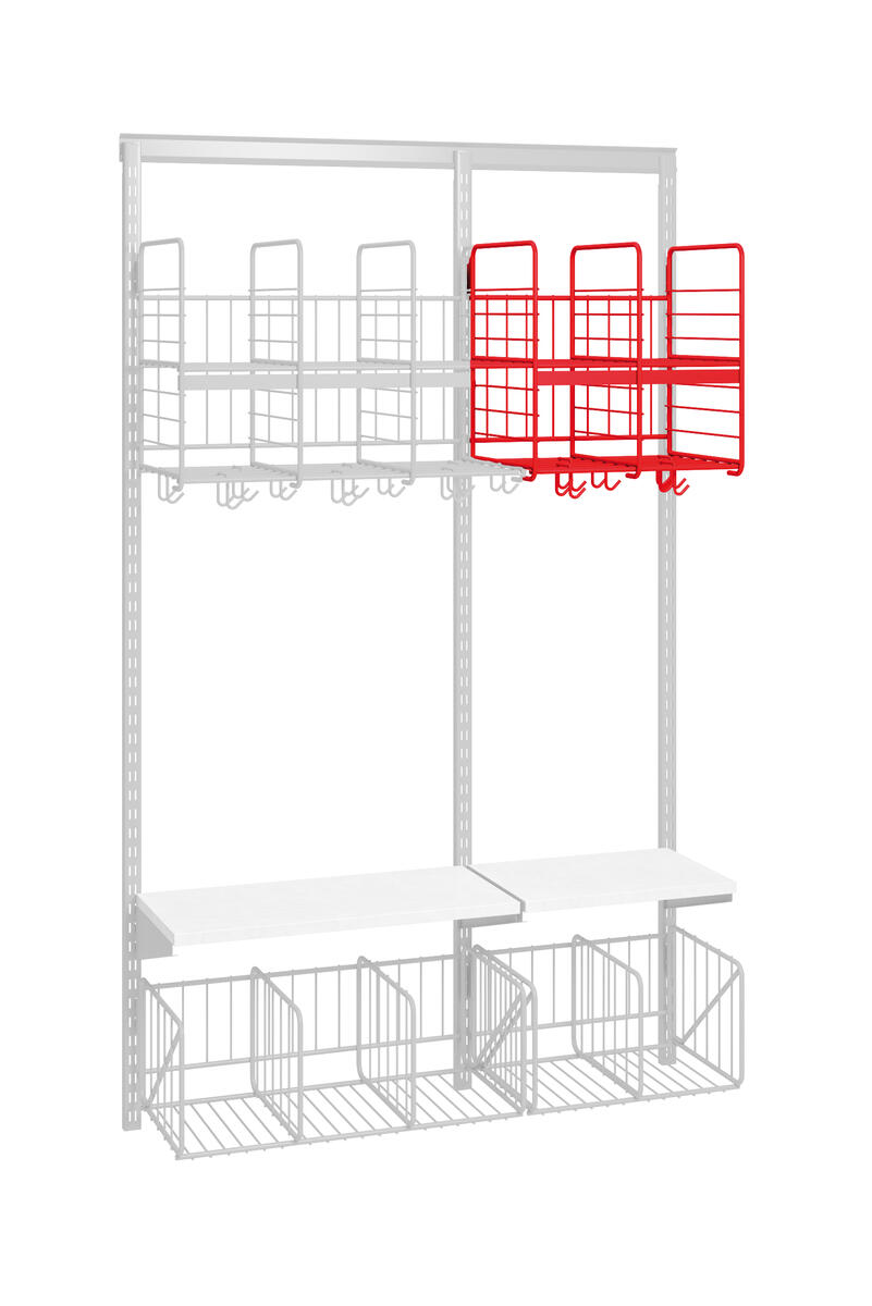 Bruges til Wille skinnesystem. Passer både til væghængte og fritstående modeller. Nem at justere i højden. 3 dobbeltknager i hvert fag. Dybde 32 cm.
