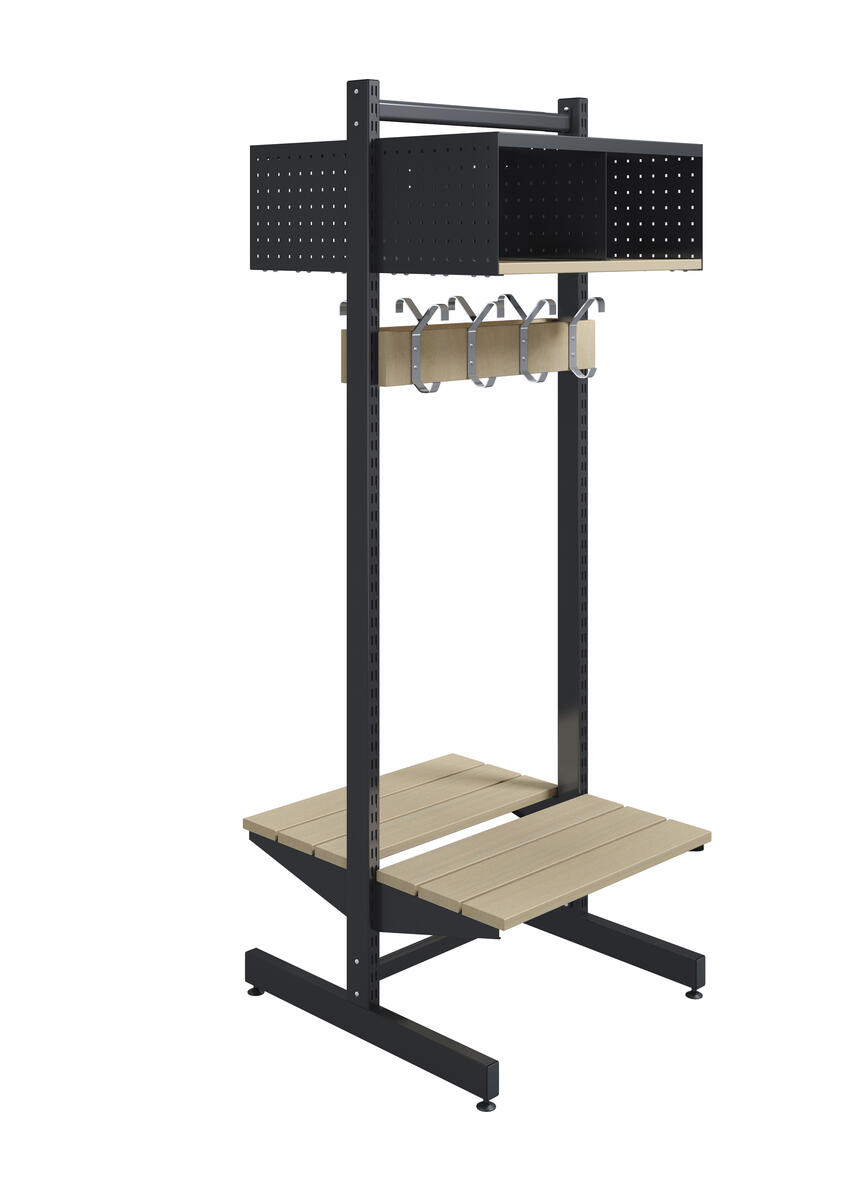 Wille 2-fag fritstående garderobe med knagerække og bænk