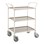 Rullebord og serveringsvogn med 2 vendbare hylder. Pulverlakeret eller galvaniseret stål. 4 hjul hvoraf 2 stk. er låsbare, Ø12,5 cm. Maks. belastning 250 kg. Vægt 23 kg. Mål på hylde: 90x44 cm. Mål på vogn: L94xB50xH94 cm. Længden er 108 cm, hvis hjulene peger ud fra bordet.
