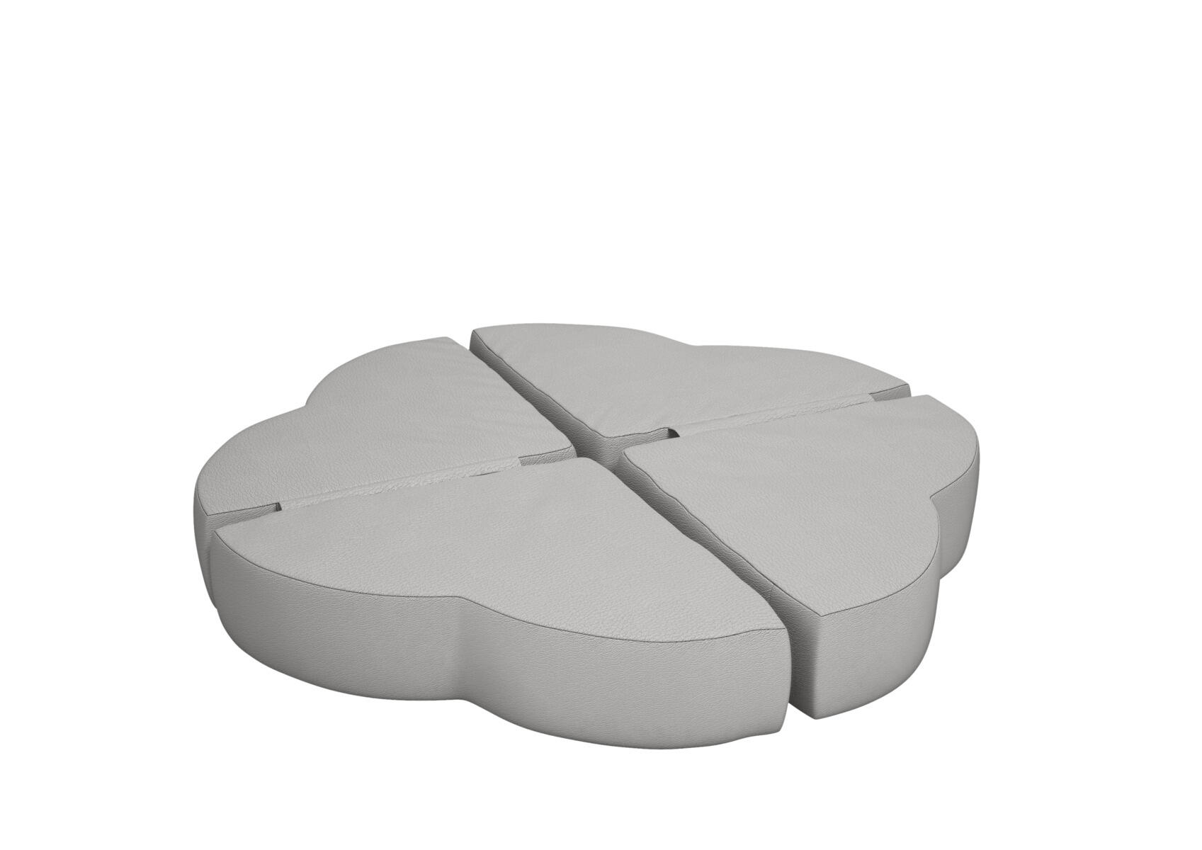 Legepude i koldskum med aftageligt betræk af bomuld/polyester belagt med polyuretan. Kan tørres af. Ligner et blomsterblad, hvor 4 dele sidder sammen. Kan stables. Mål når delene er stablet: 36x36x60 cm. Tykkelse på pude: 15 cm. Design: Alessandra Cardinale.