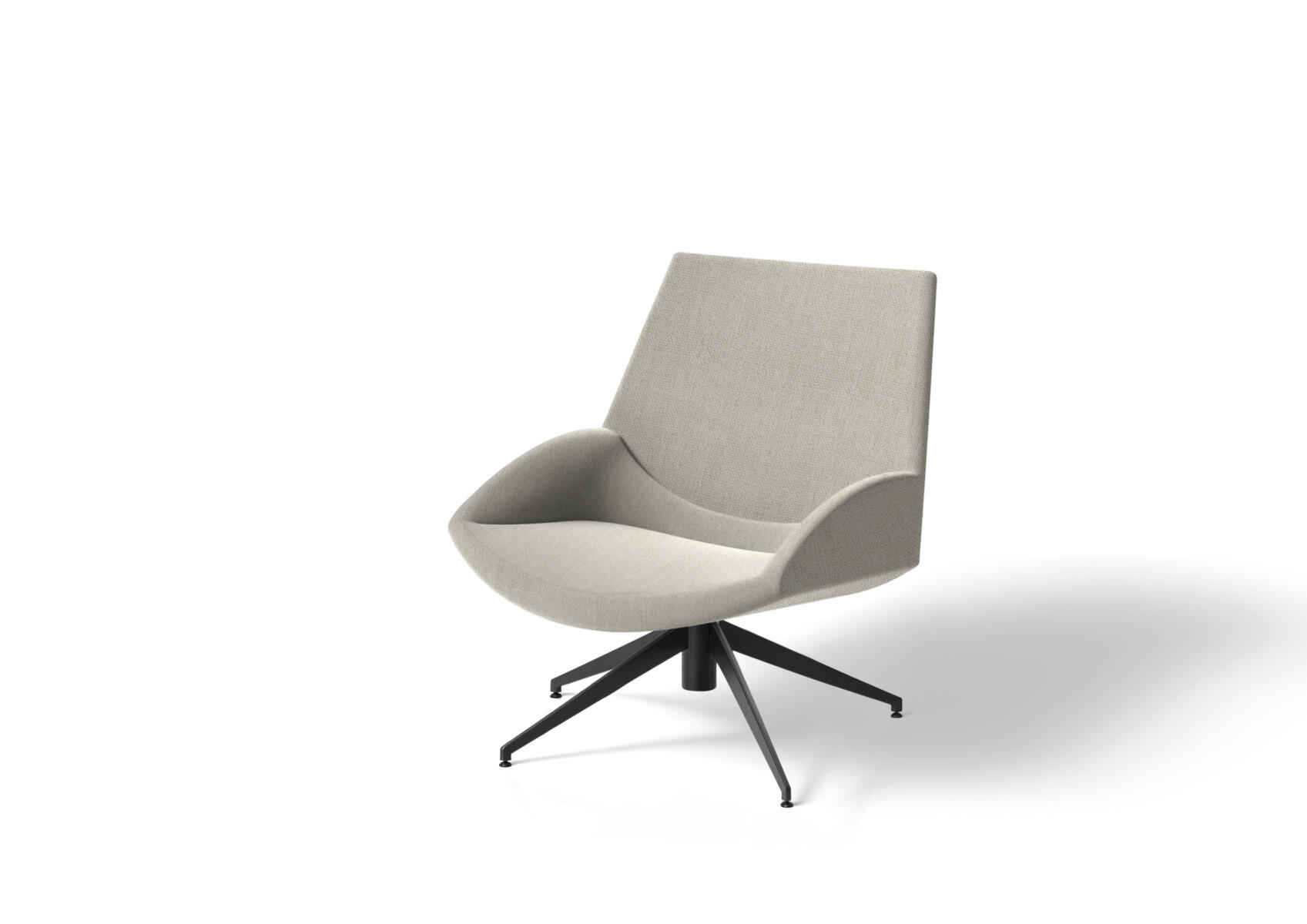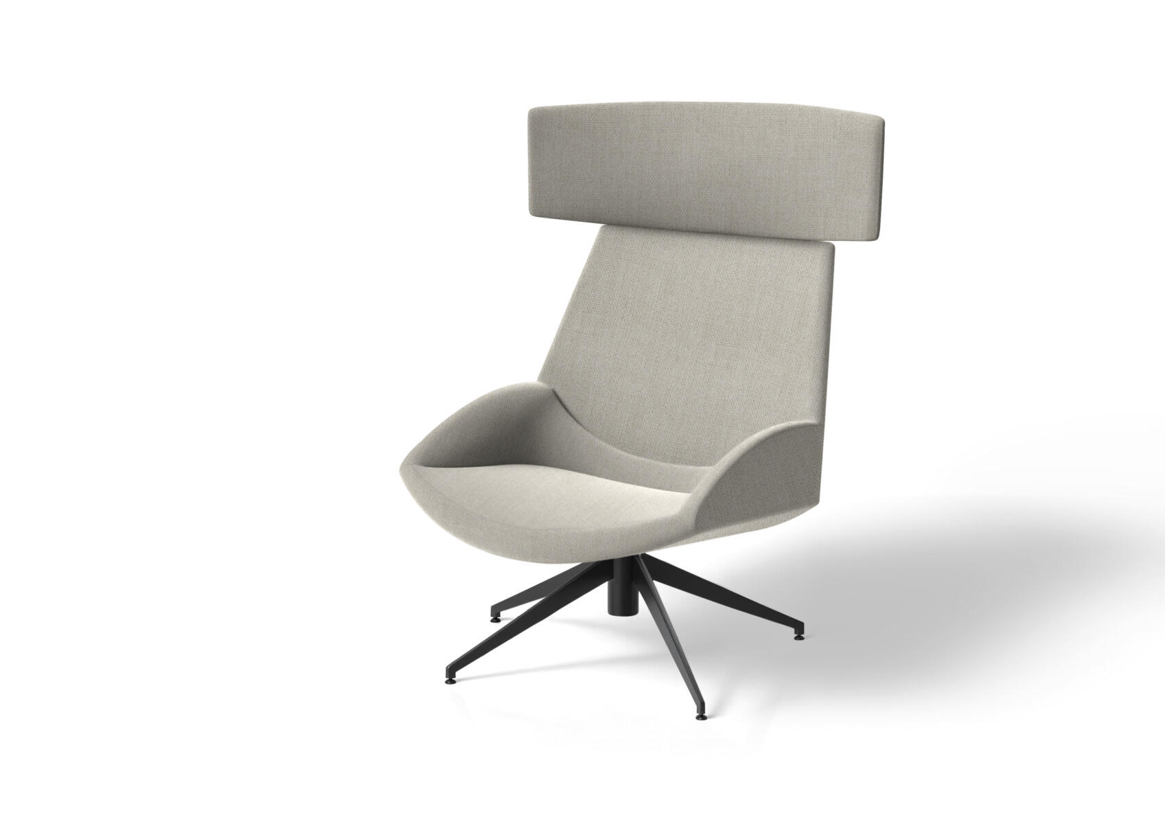 En drejestol med moderne design og generøs komfort. Med autoreturn og vippefunktion. Pulverlakkeret sort krydsstel. Træramme og polstring i koldskum. For ekstra komfort kan nakkestøtte tilkøbes som et tilvalg.