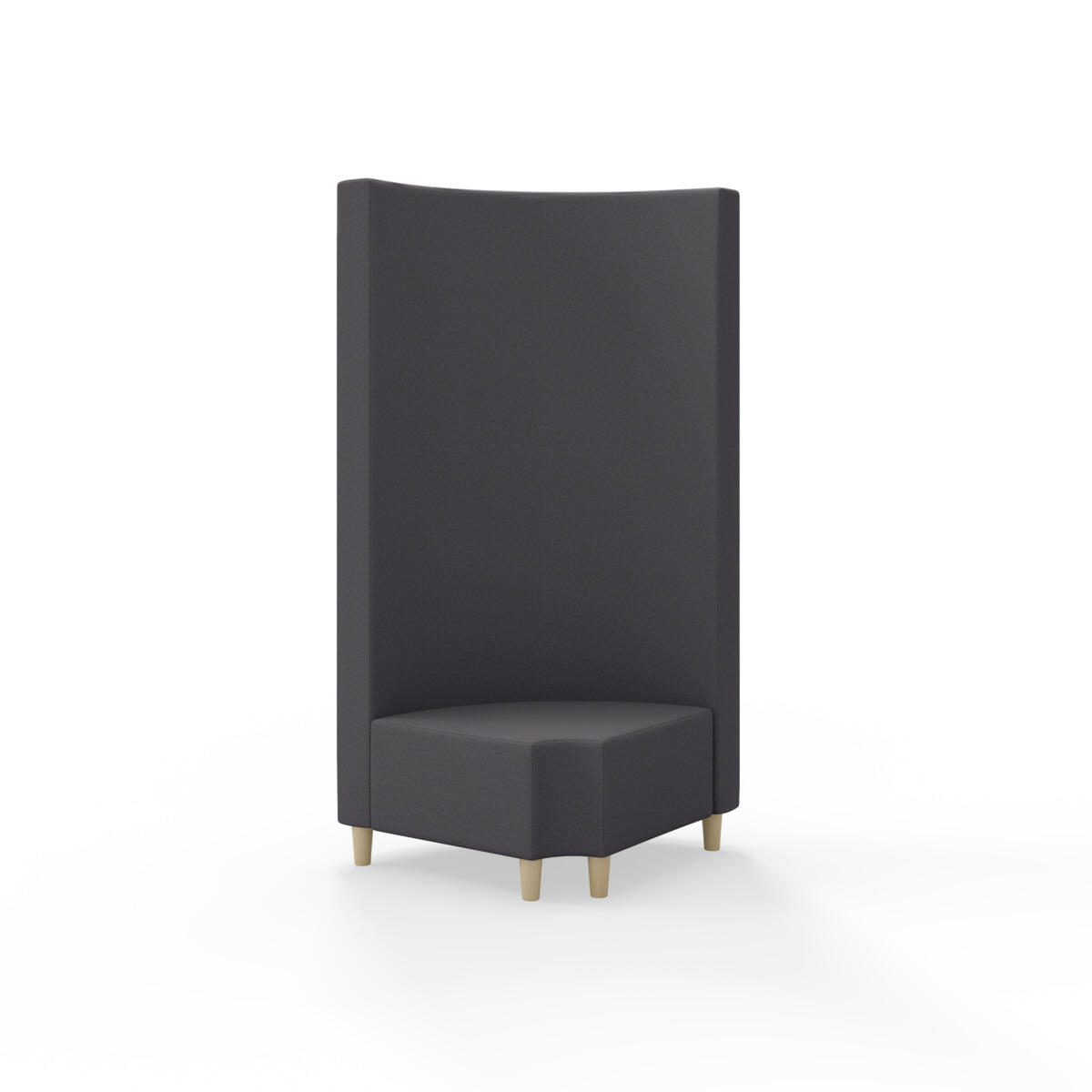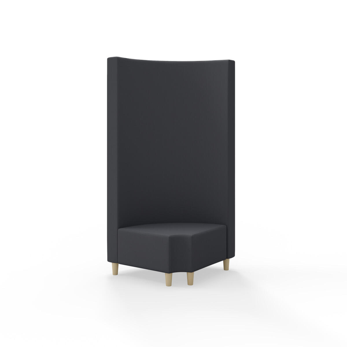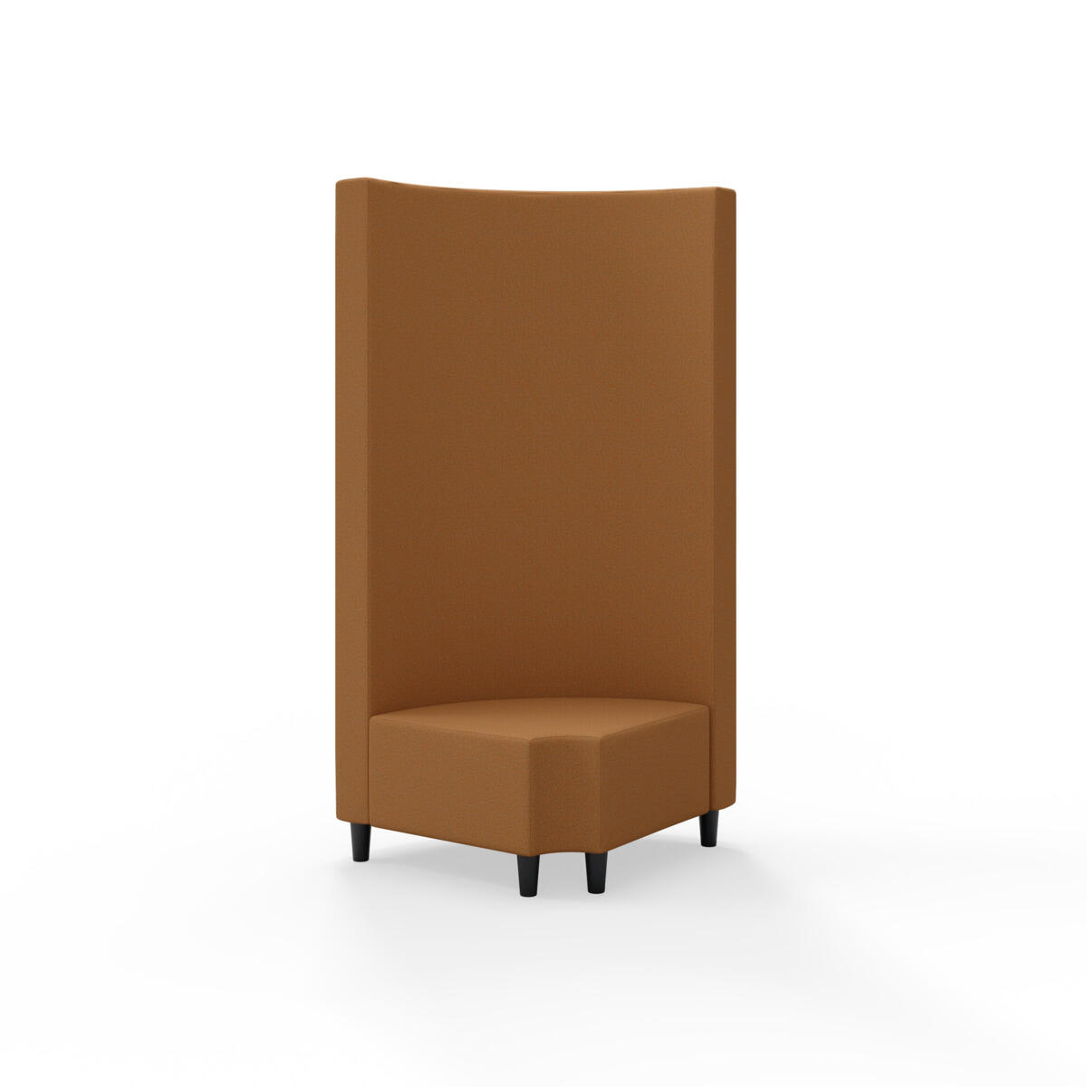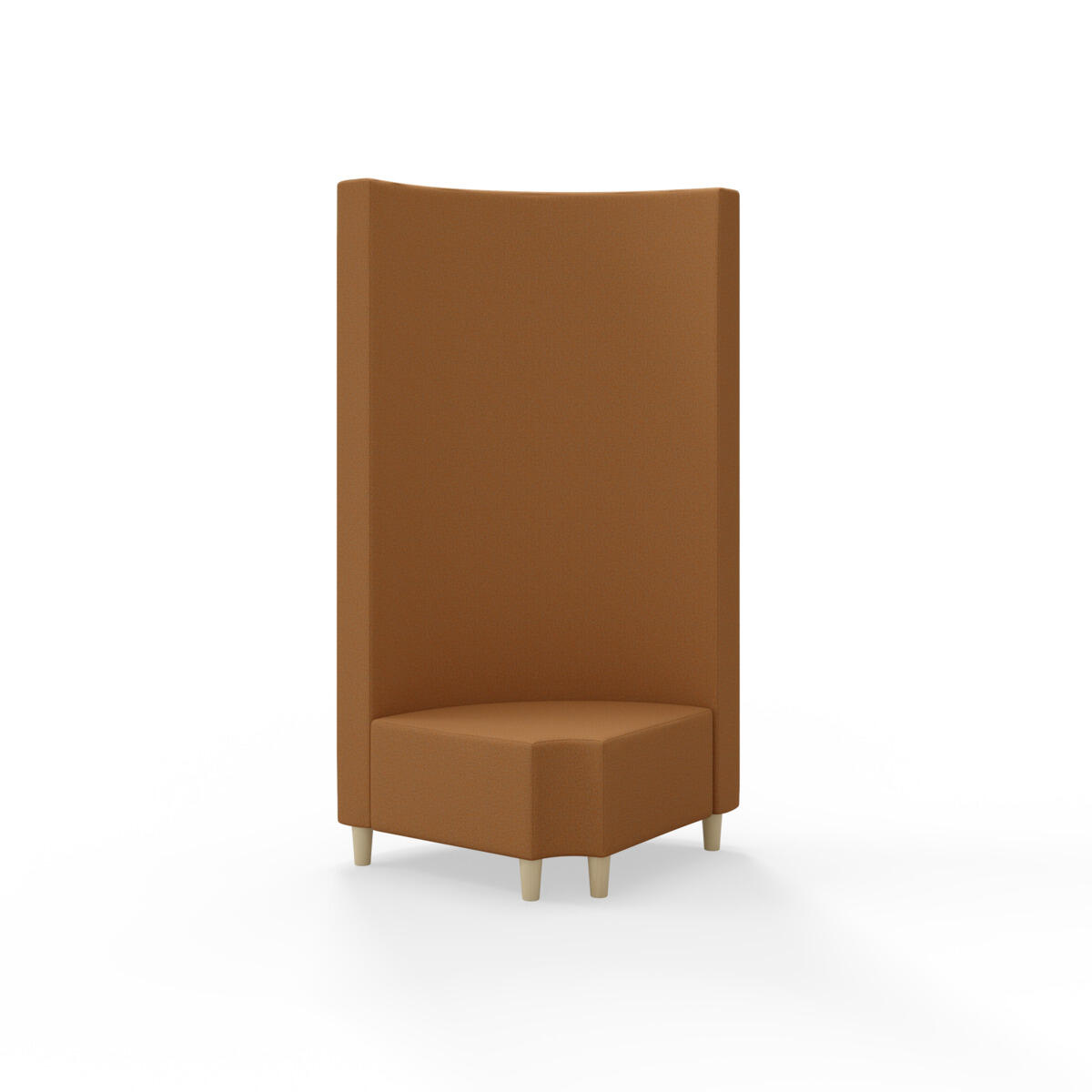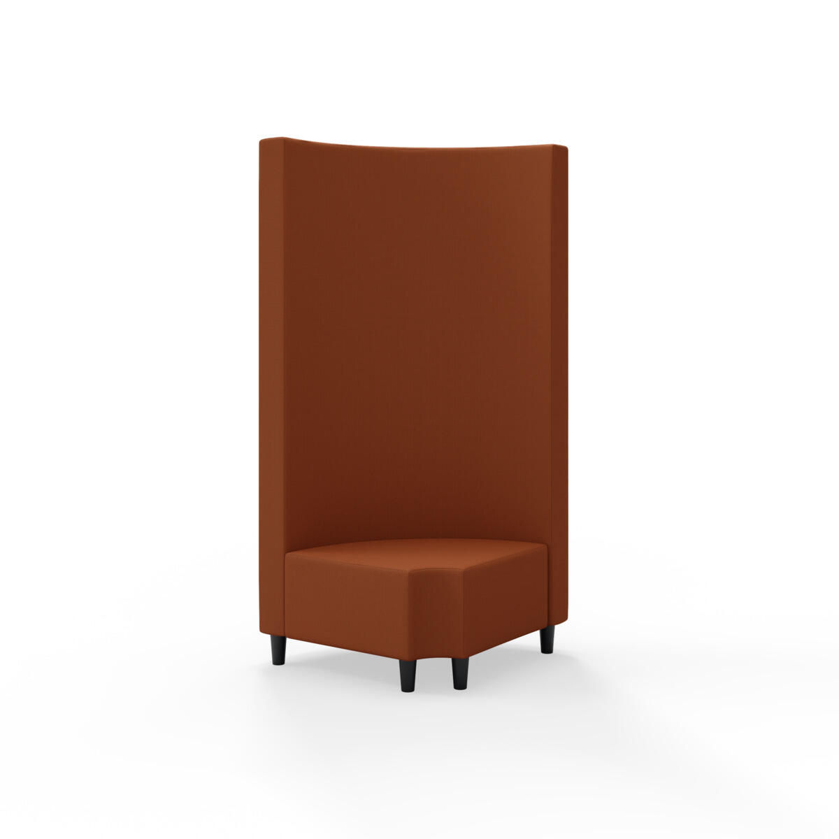 Snake hjørnemodul 90 grader R 12 rund med træben, høj ryg sh 37,5