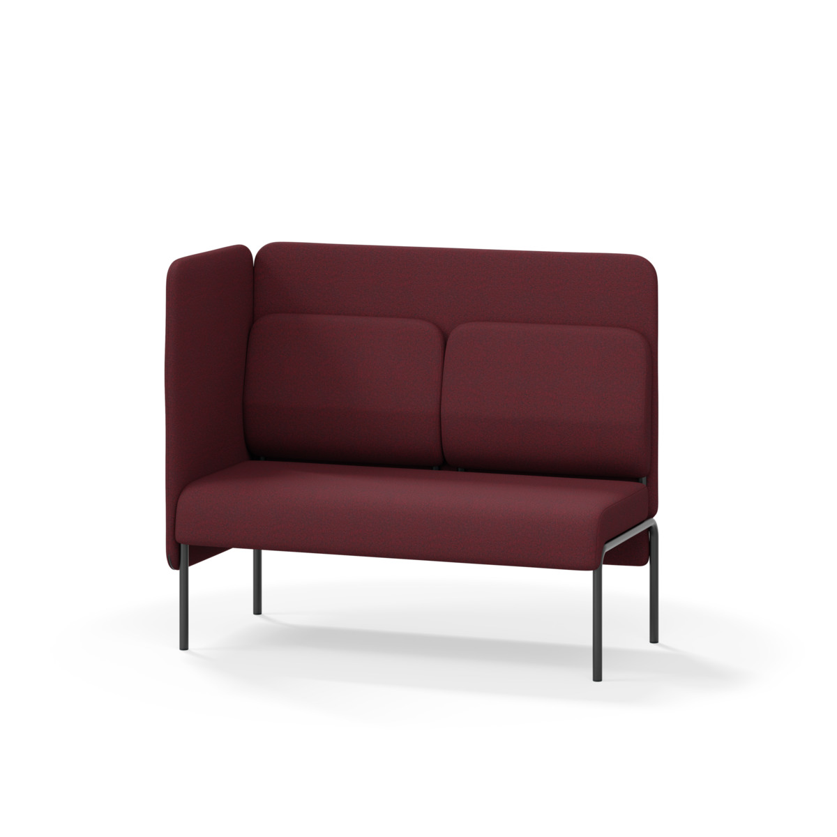 2-pers. sofa-modul med ergonomisk formet ryghynde og lydabsorberende panel. Sofasystemet er designet til at skabe pladsbesparende løsninger, der fremmer studie-ro, tryghed, fællesskab og inklusion i skolen. Vi har reduceret materialeforbruget og udviklet et cirkulært produkt, hvor alle dele kan udskiftes. Sofaen har en praktisk krumme-sprække og et højt metalstel, der letter rengøring. Hynder og paneler har aftageligt betræk for nem vedligeholdelse. Rammen er fremstillet af krydsfiner med koldskumspolstring, mens stellet i pulverlakeret metal med justerbare fødder sikrer stabilitet – også på ujævne underlag. Design: Sigrid Strömgren.