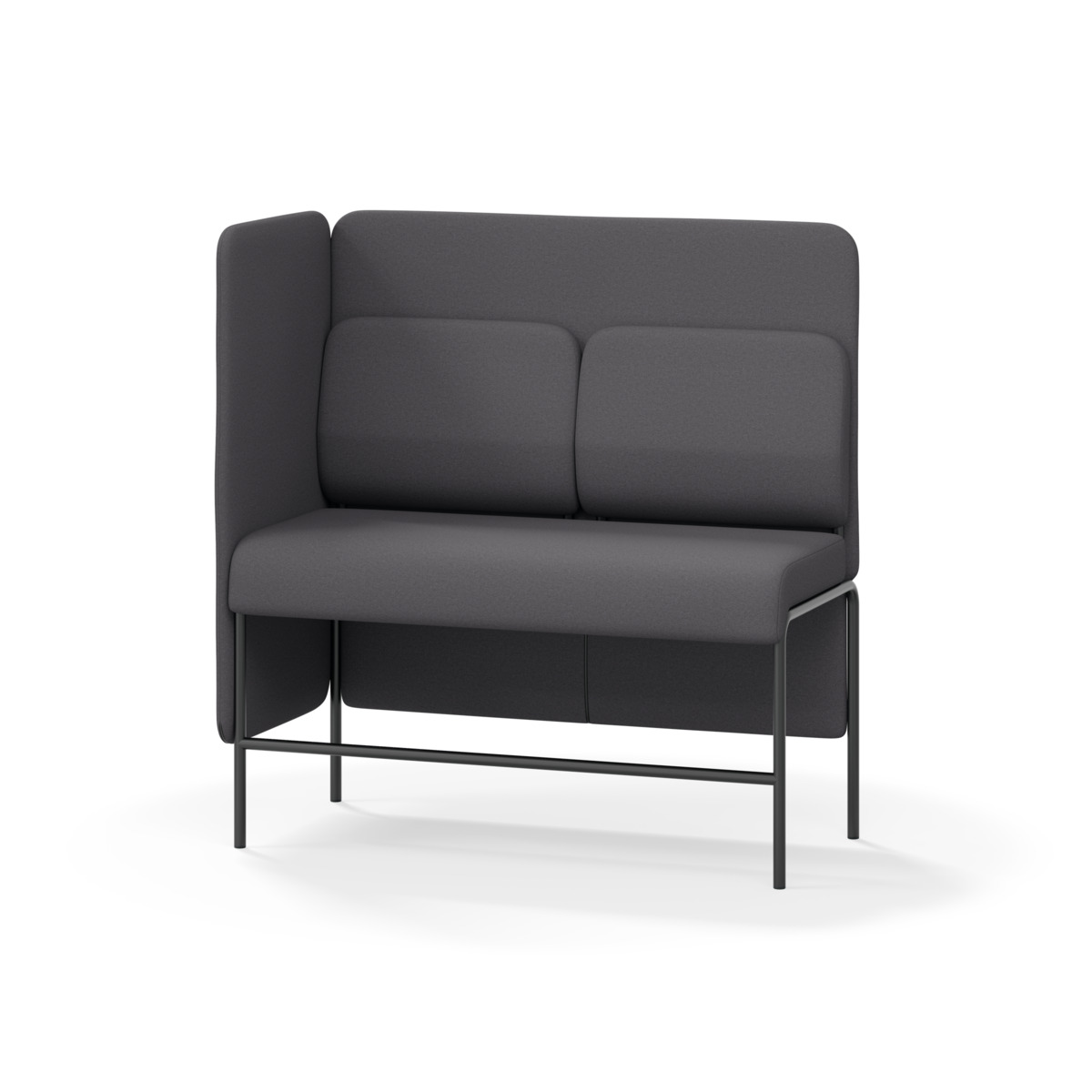 2-pers. sofa-modul med ergonomisk formet ryghynde og lydabsorberende panel. Sofasystemet er designet til at skabe pladsbesparende løsninger, der fremmer studie-ro, tryghed, fællesskab og inklusion i skolen. Vi har reduceret materialeforbruget og udviklet et cirkulært produkt, hvor alle dele kan udskiftes. Sofaen har en praktisk krumme-sprække og et højt metalstel, der letter rengøring. Hynder og paneler har aftageligt betræk for nem vedligeholdelse. Rammen er fremstillet af krydsfiner med koldskumspolstring, mens stellet i pulverlakeret metal med justerbare fødder sikrer stabilitet – også på ujævne underlag. Design: Sigrid Strömgren.