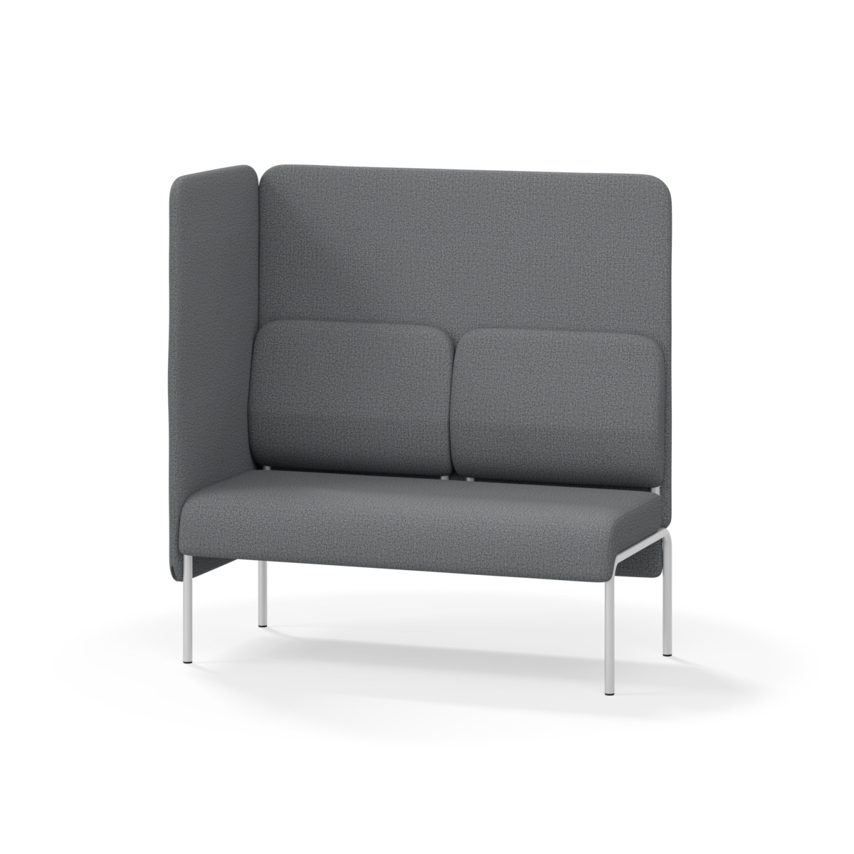 2-pers. sofa-modul med ergonomisk formet ryghynde og lydabsorberende panel. Sofasystemet er designet til at skabe pladsbesparende løsninger, der fremmer studie-ro, tryghed, fællesskab og inklusion i skolen. Vi har reduceret materialeforbruget og udviklet et cirkulært produkt, hvor alle dele kan udskiftes. Sofaen har en praktisk krumme-sprække og et højt metalstel, der letter rengøring. Hynder og paneler har aftageligt betræk for nem vedligeholdelse. Rammen er fremstillet af krydsfiner med koldskumspolstring, mens stellet i pulverlakeret metal med justerbare fødder sikrer stabilitet – også på ujævne underlag. Design: Sigrid Strömgren.