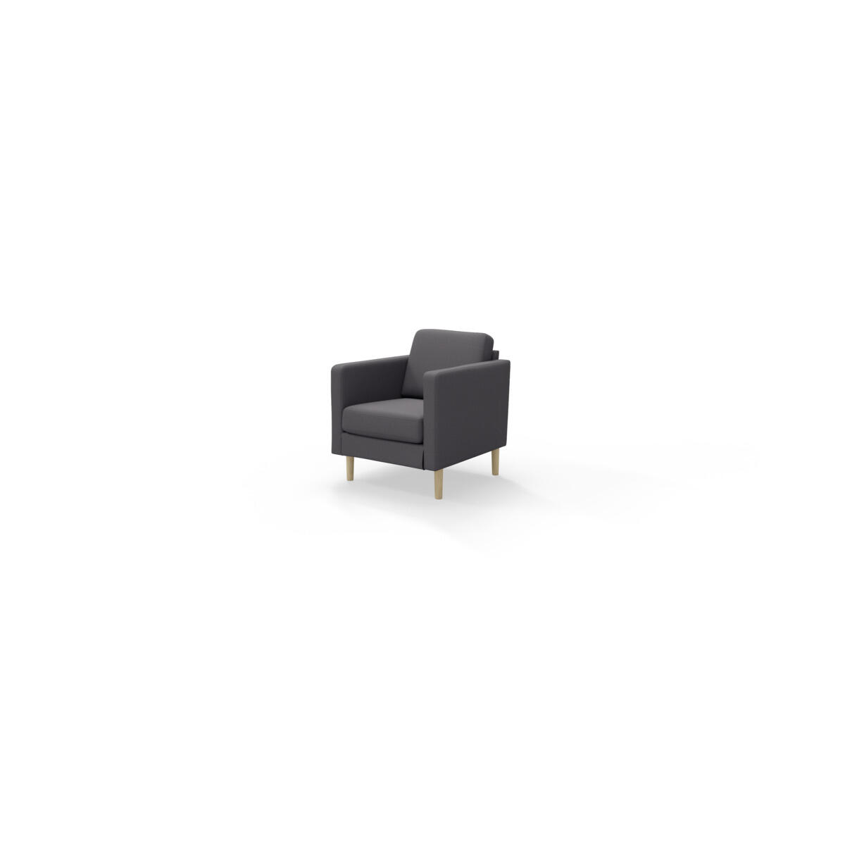 En lænestol med stel i massivt træ og nozag bund for robust støtte og komfort. Sæde- og ryghynde er vendbare. Alt betræk på både stel og hynder er aftageligt for at lette rengøring og vedligeholdelse. Nem montering af ben.