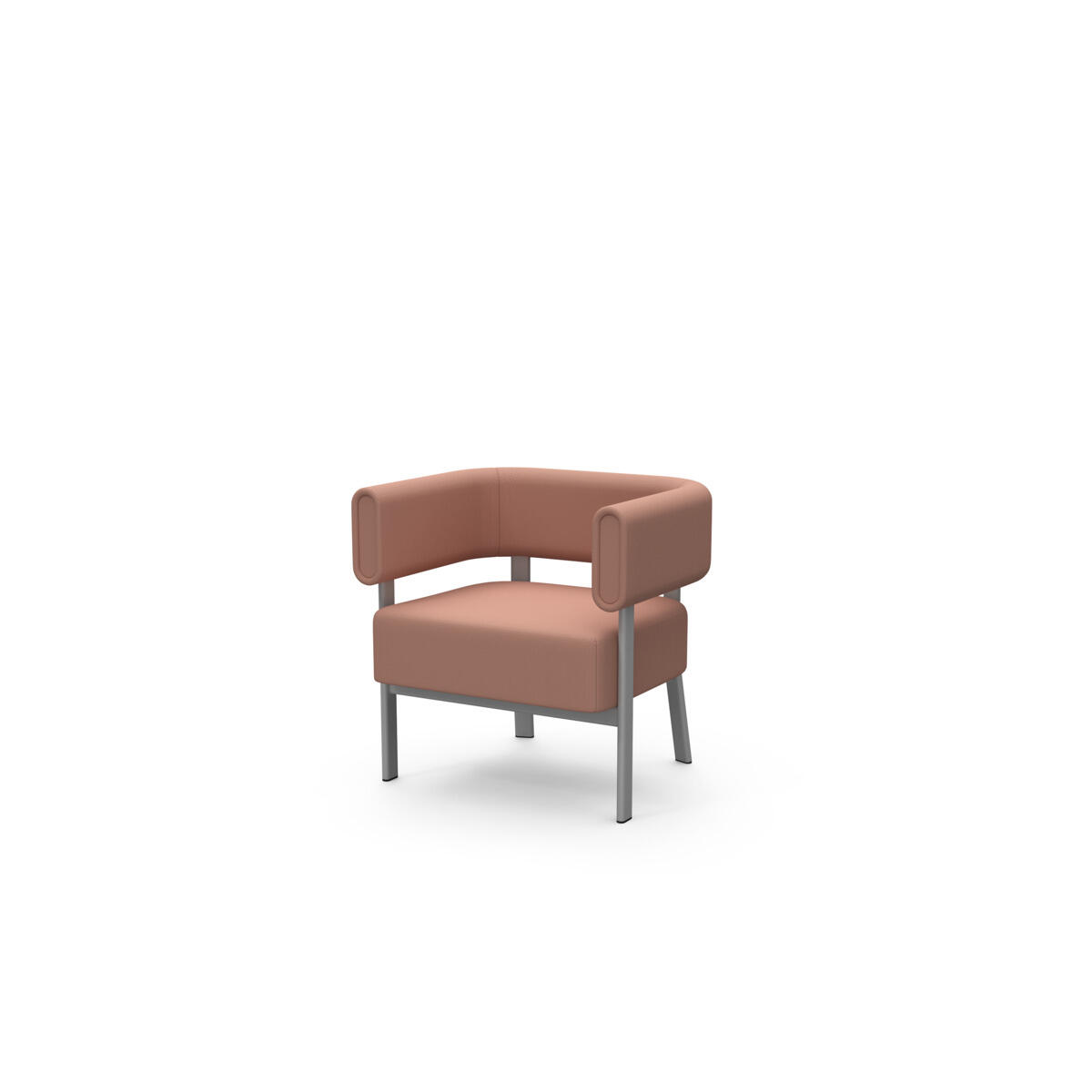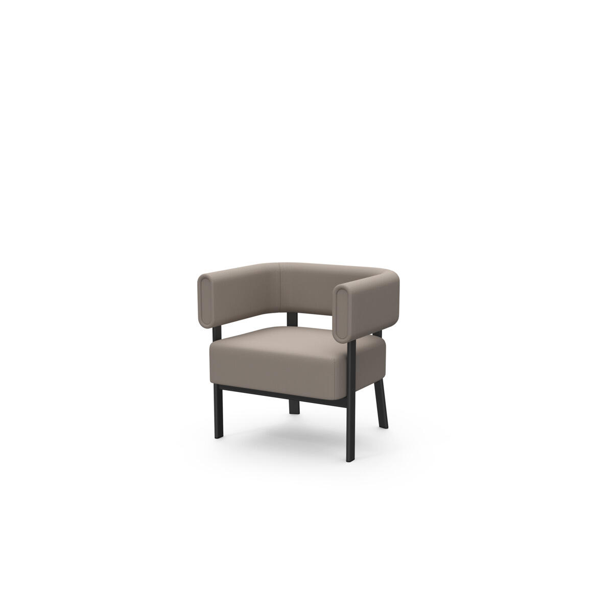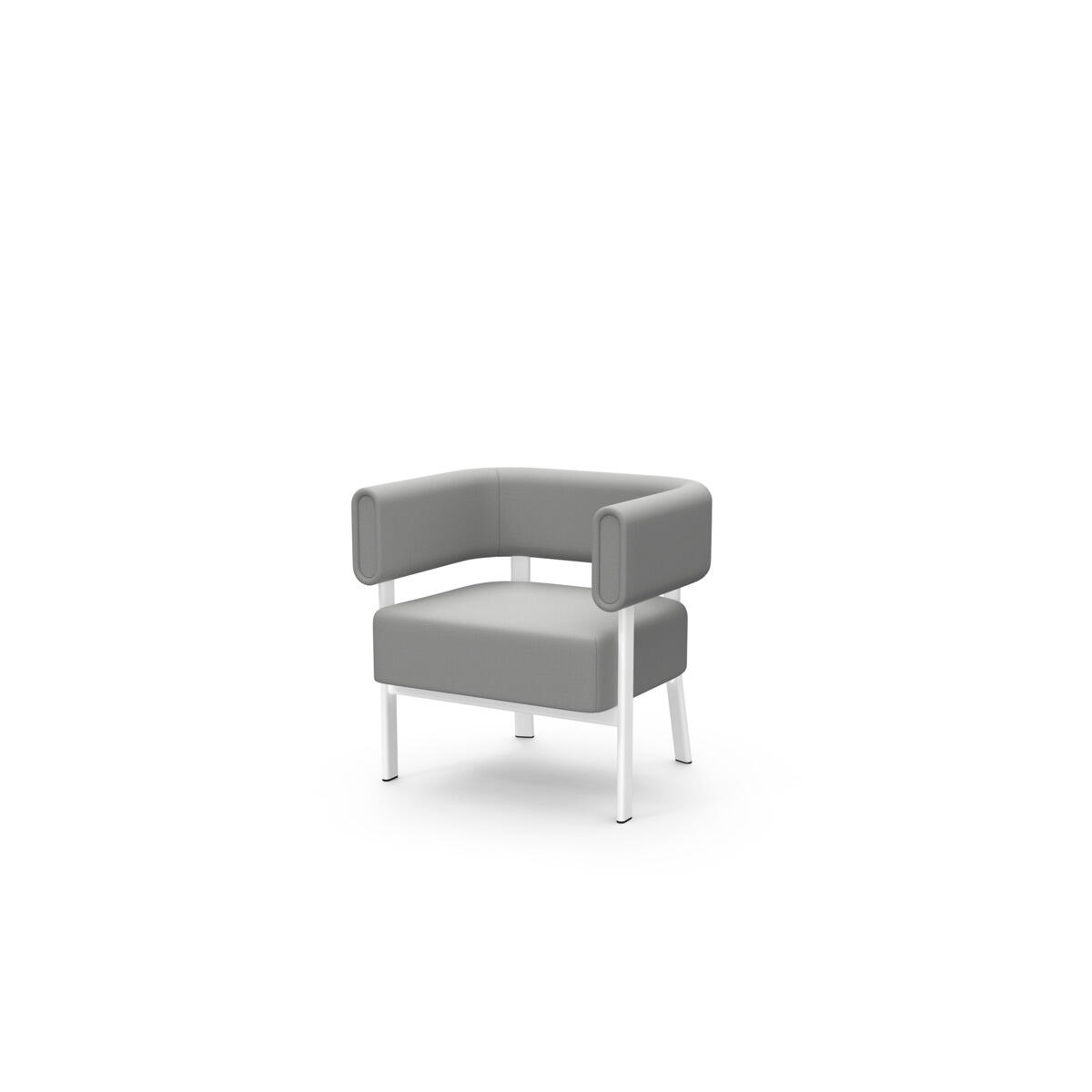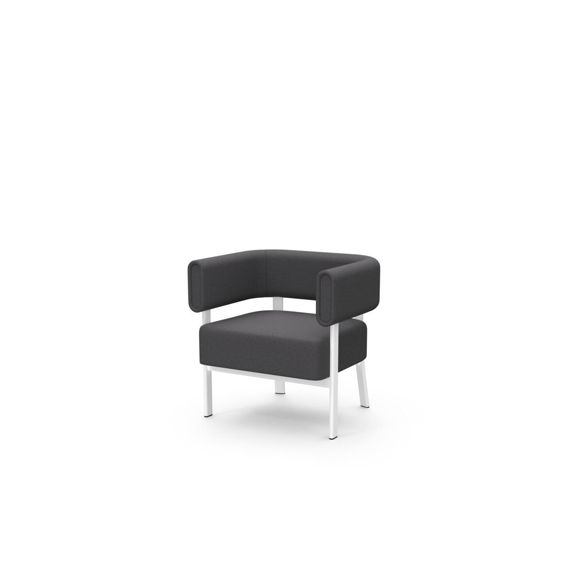 Siddemodulet er udstyret med fast sidebord med laminatbordplade. Stel i pulverlakeret metal. Træramme og polstring i koldskum. Med glidefødder.