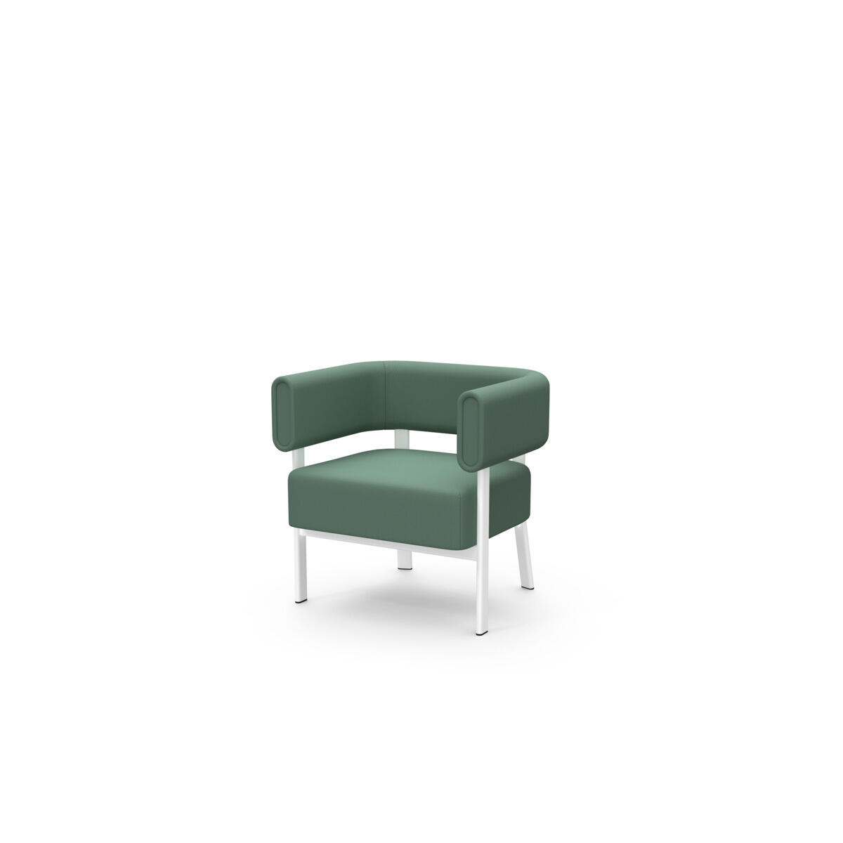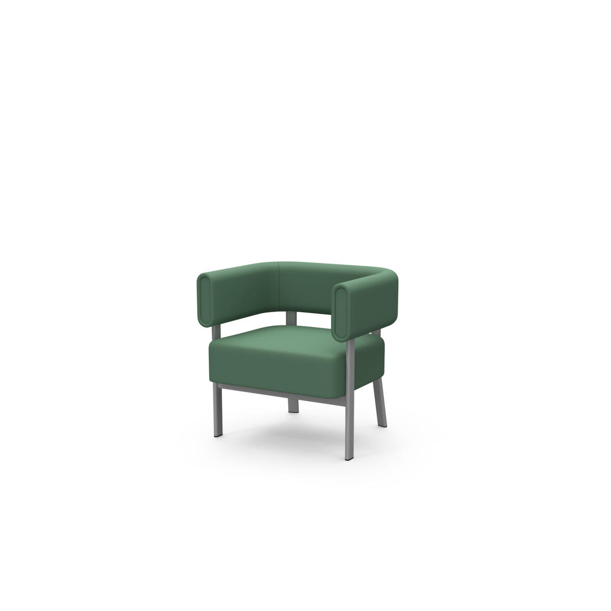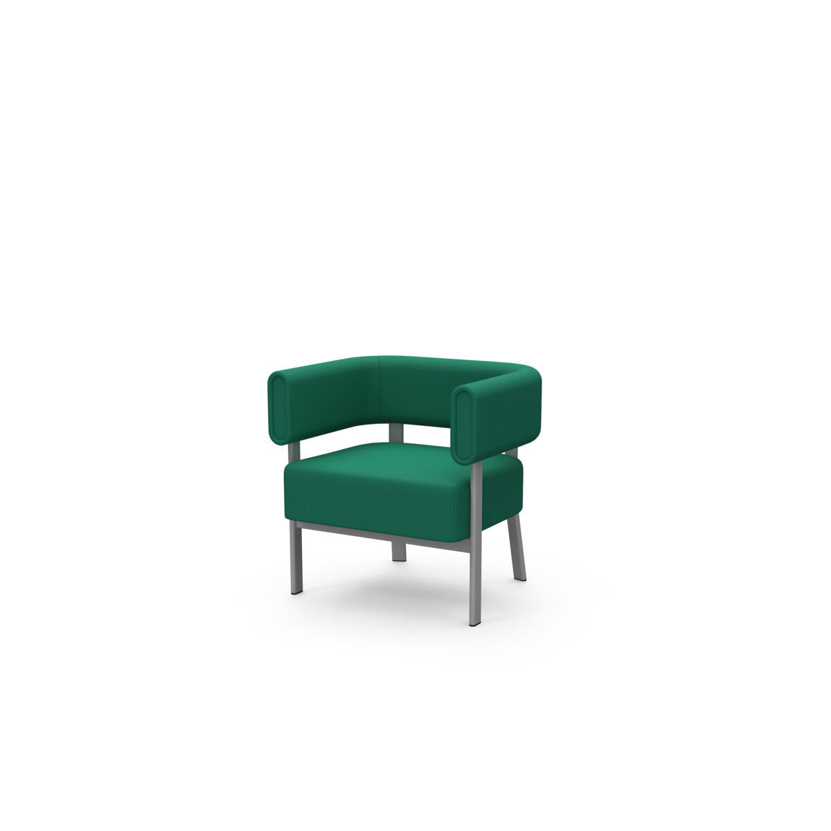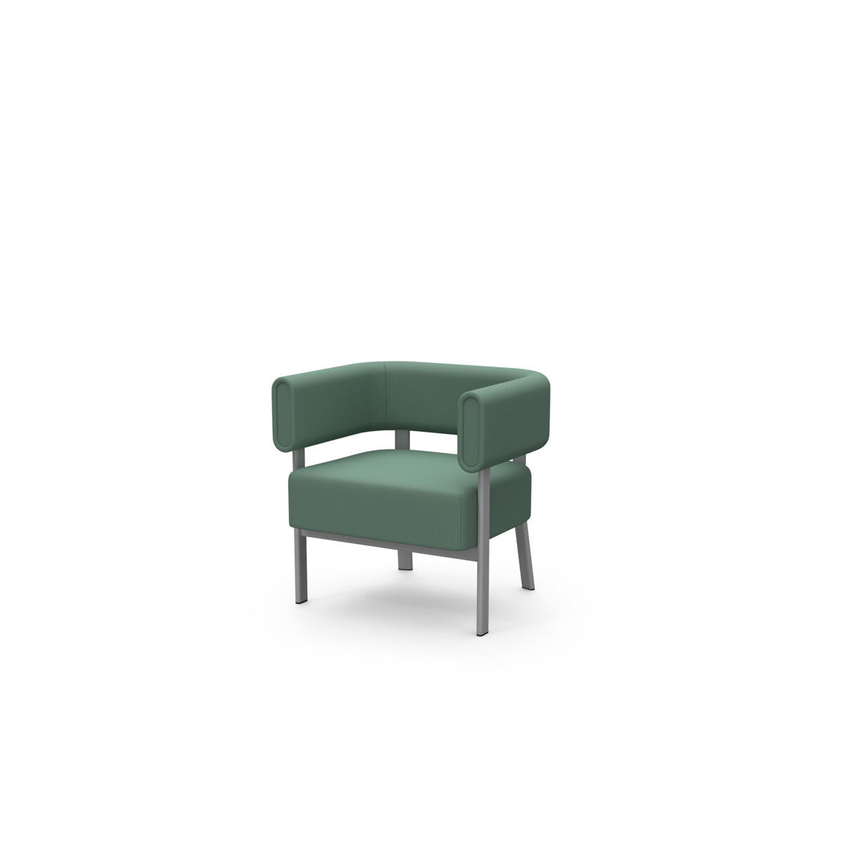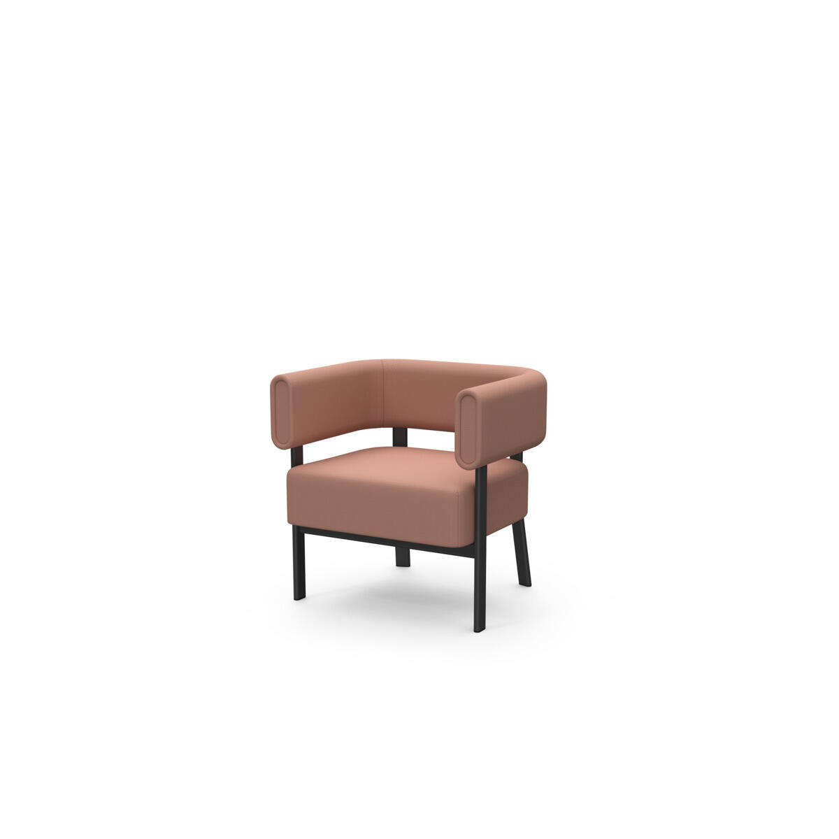 Siddemodulet er udstyret med fast sidebord med laminatbordplade. Stel i pulverlakeret metal. Træramme og polstring i koldskum. Med glidefødder.