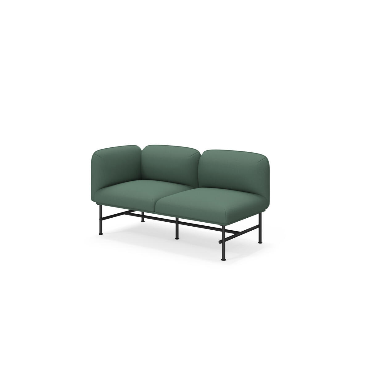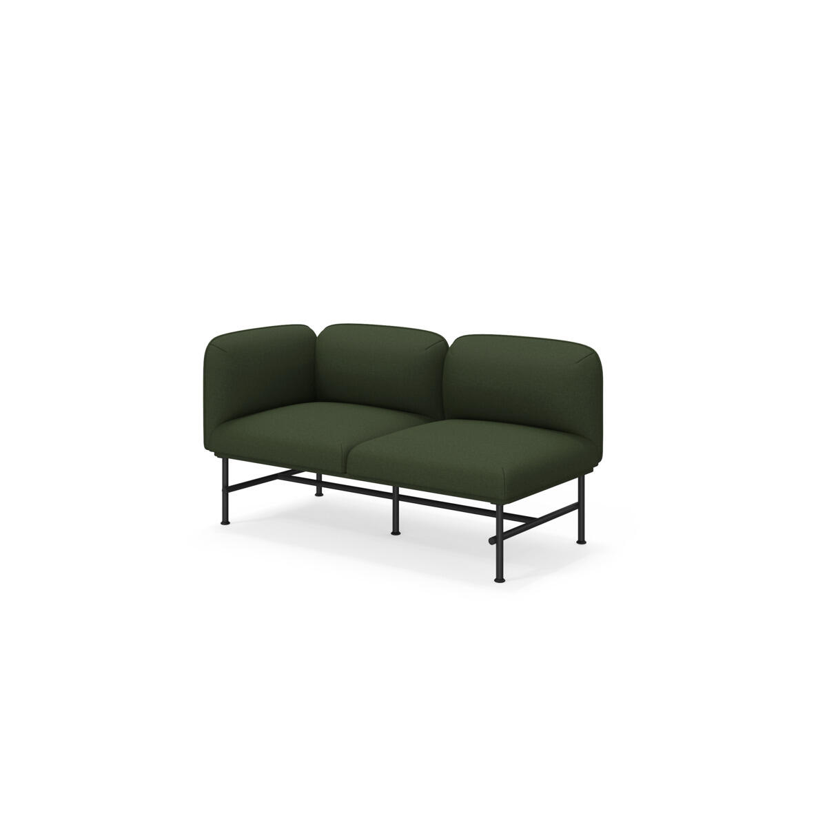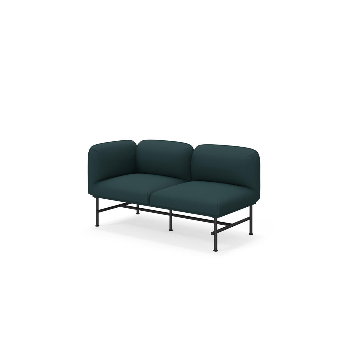 Et minimalistisk møbel, der kombinerer elegance med funktionalitet. Den høje ryg og sider bidrager til at dæmpe lyd og forbedre rummets akustik. Træstel og polstring i koldskum. Ben i pulverlakeret metal. Som tilvalg findes sidebord eller armstøtte i metal, bestilles på eget artikelnummer.