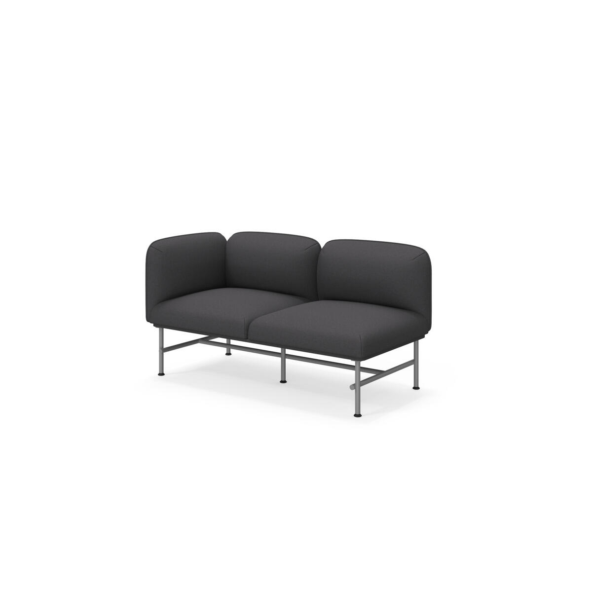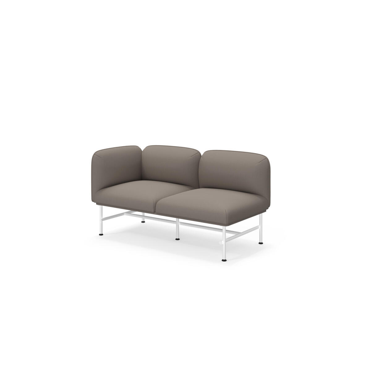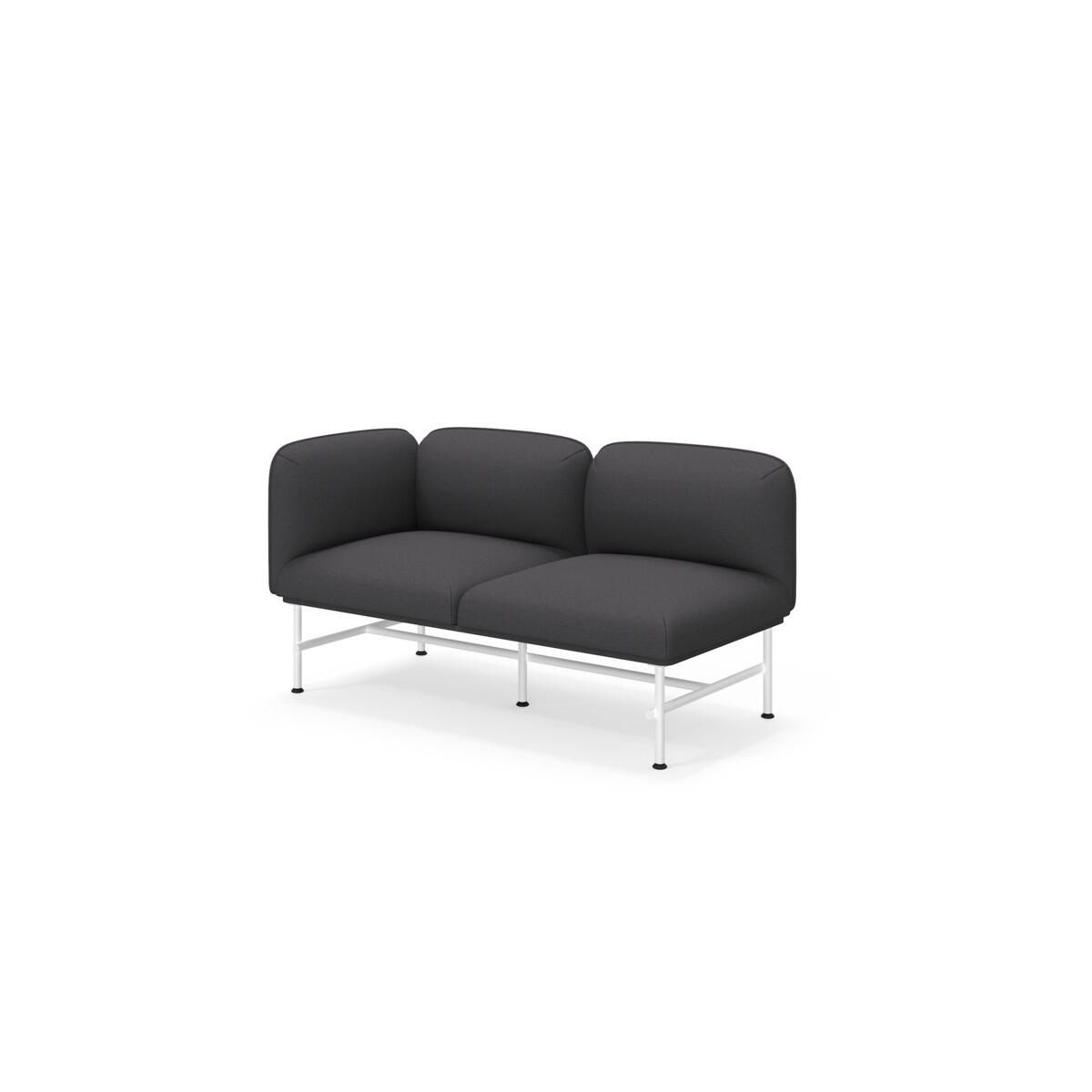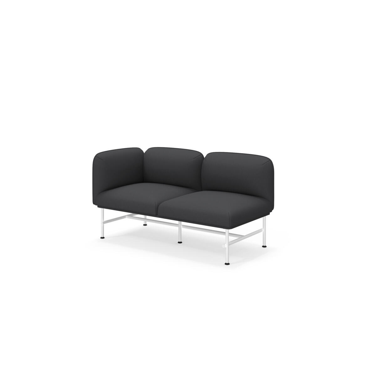 Et minimalistisk møbel, der kombinerer elegance med funktionalitet. Træstel og polstring i koldskum. Ben i pulverlakeret metal. Som tilvalg findes sidebord eller armstøtte i metal, bestilles på eget artikelnummer.