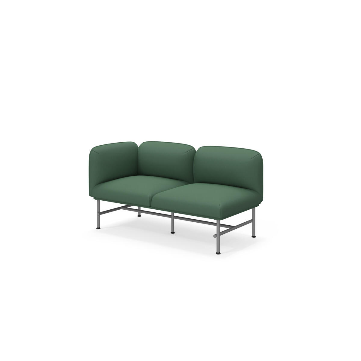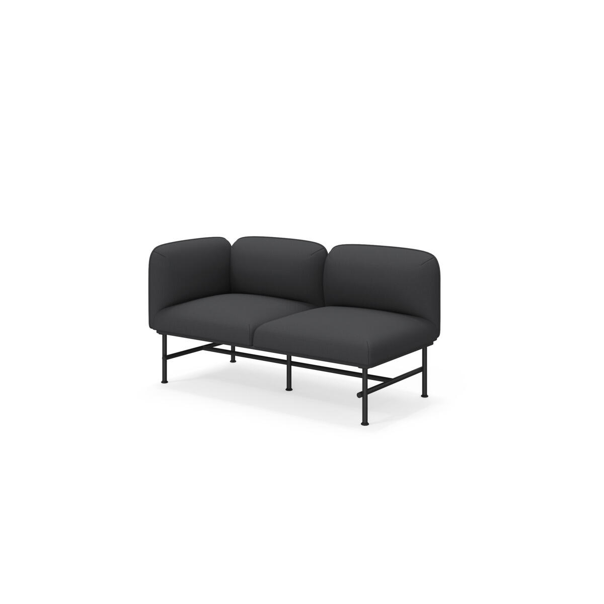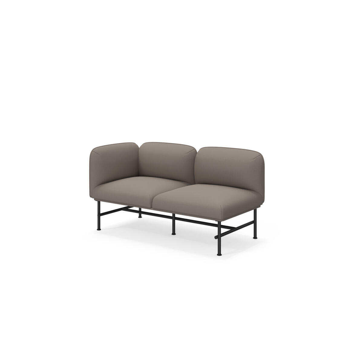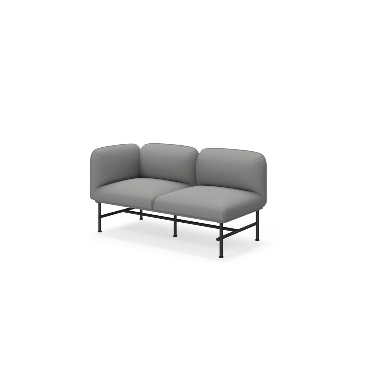 Et minimalistisk møbel, der kombinerer elegance med funktionalitet. Træstel og polstring i koldskum. Ben i pulverlakeret metal. Som tilvalg findes sidebord eller armstøtte i metal, bestilles på eget artikelnummer.