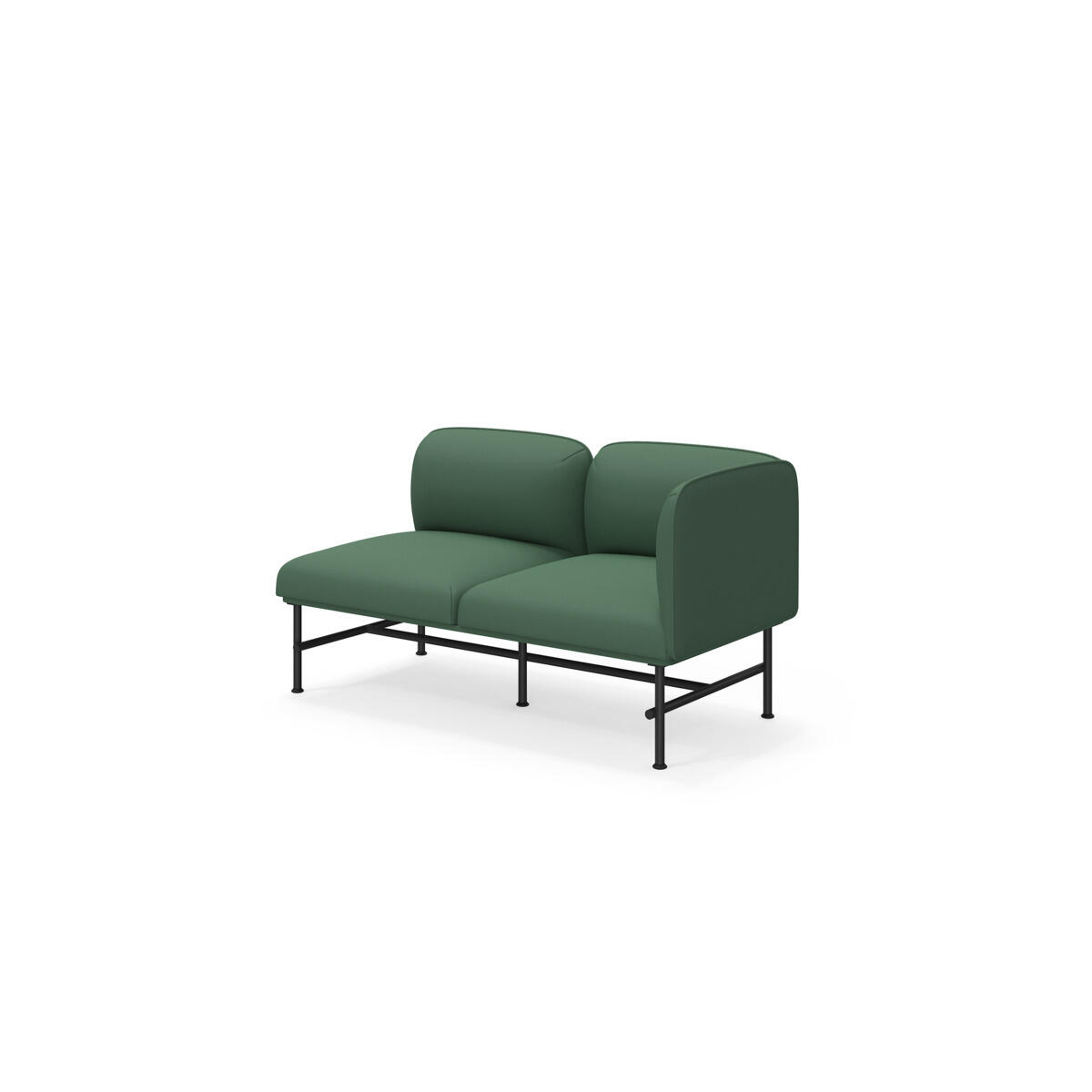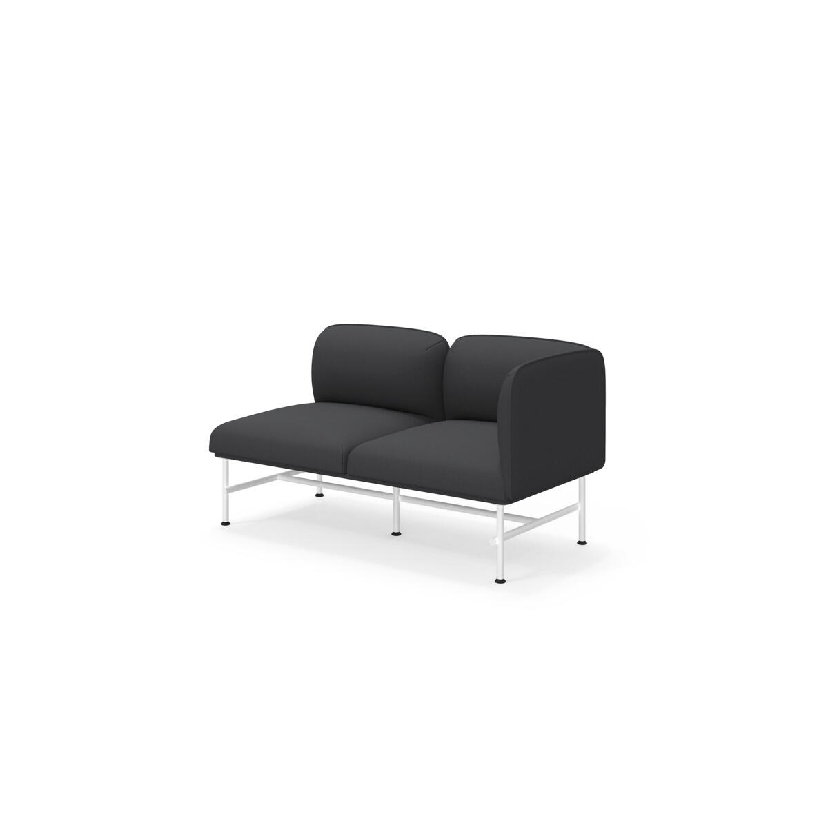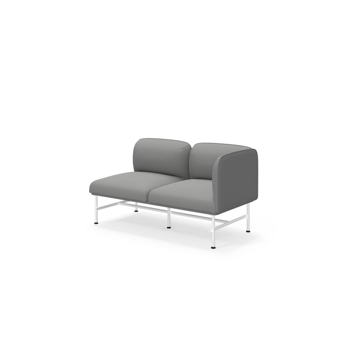 Et minimalistisk møbel, der kombinerer elegance med funktionalitet. Træstel og polstring i koldskum. Ben i pulverlakeret metal. Som tilvalg findes sidebord eller armstøtte i metal, bestilles på eget artikelnummer.