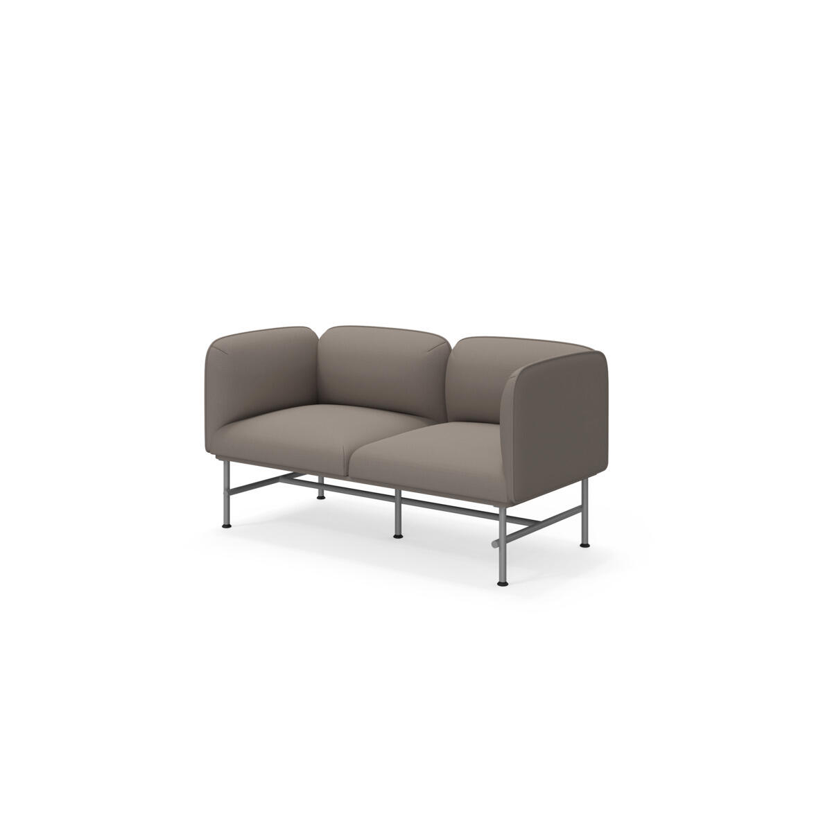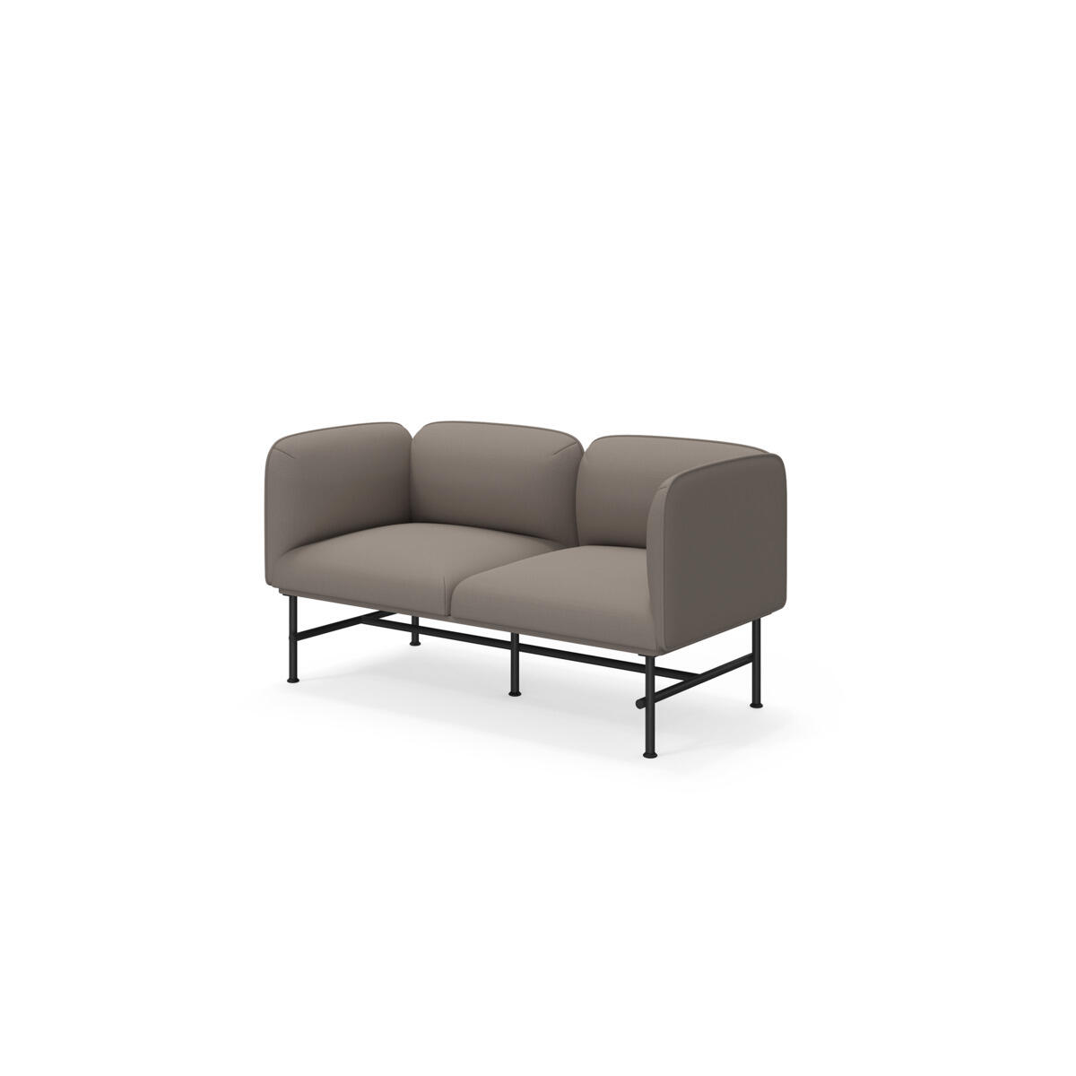 Et minimalistisk møbel, der kombinerer elegance med funktionalitet. Træstel og polstring i koldskum. Ben i pulverlakeret metal. Som tilvalg findes sidebord eller armstøtte i metal, bestilles på eget artikelnummer.