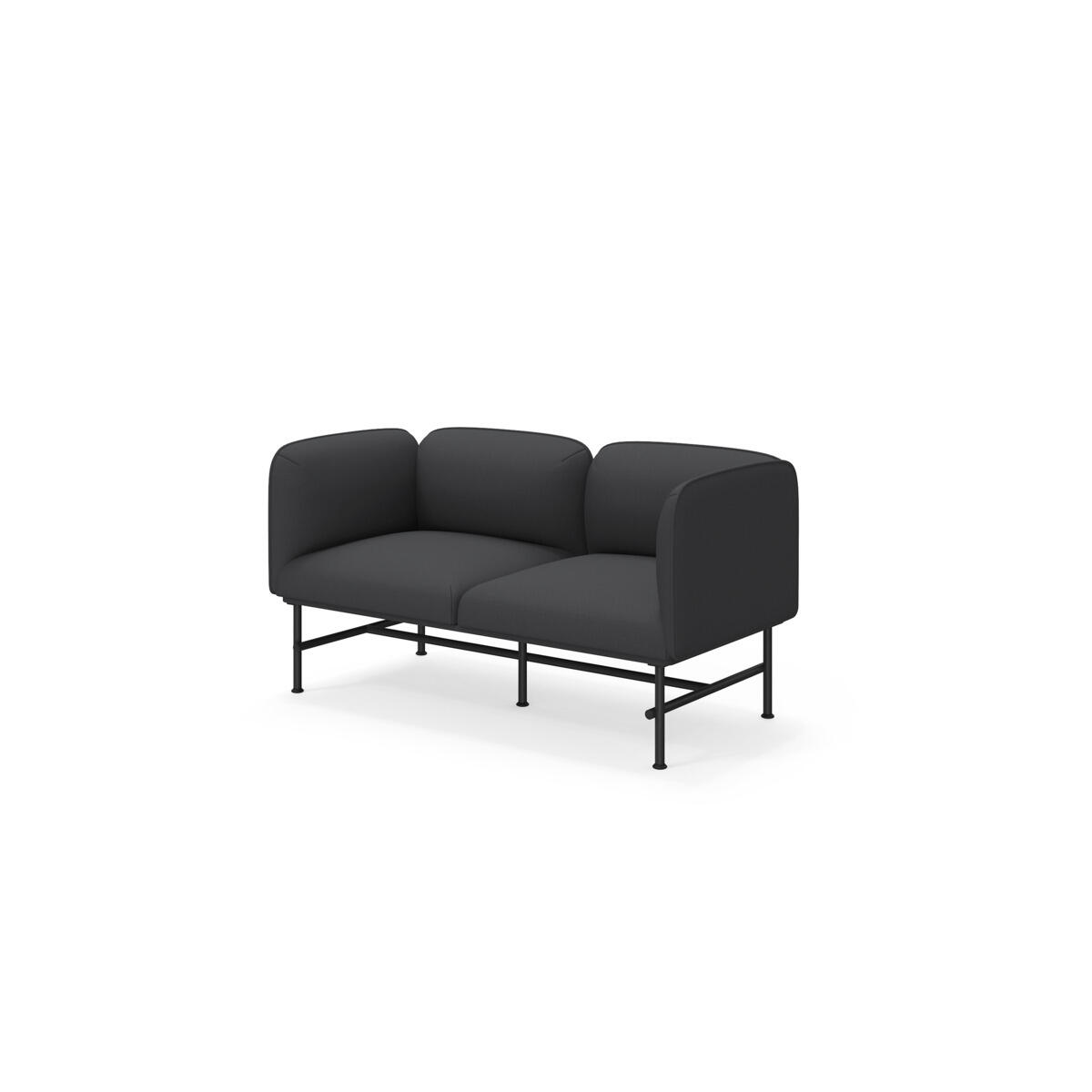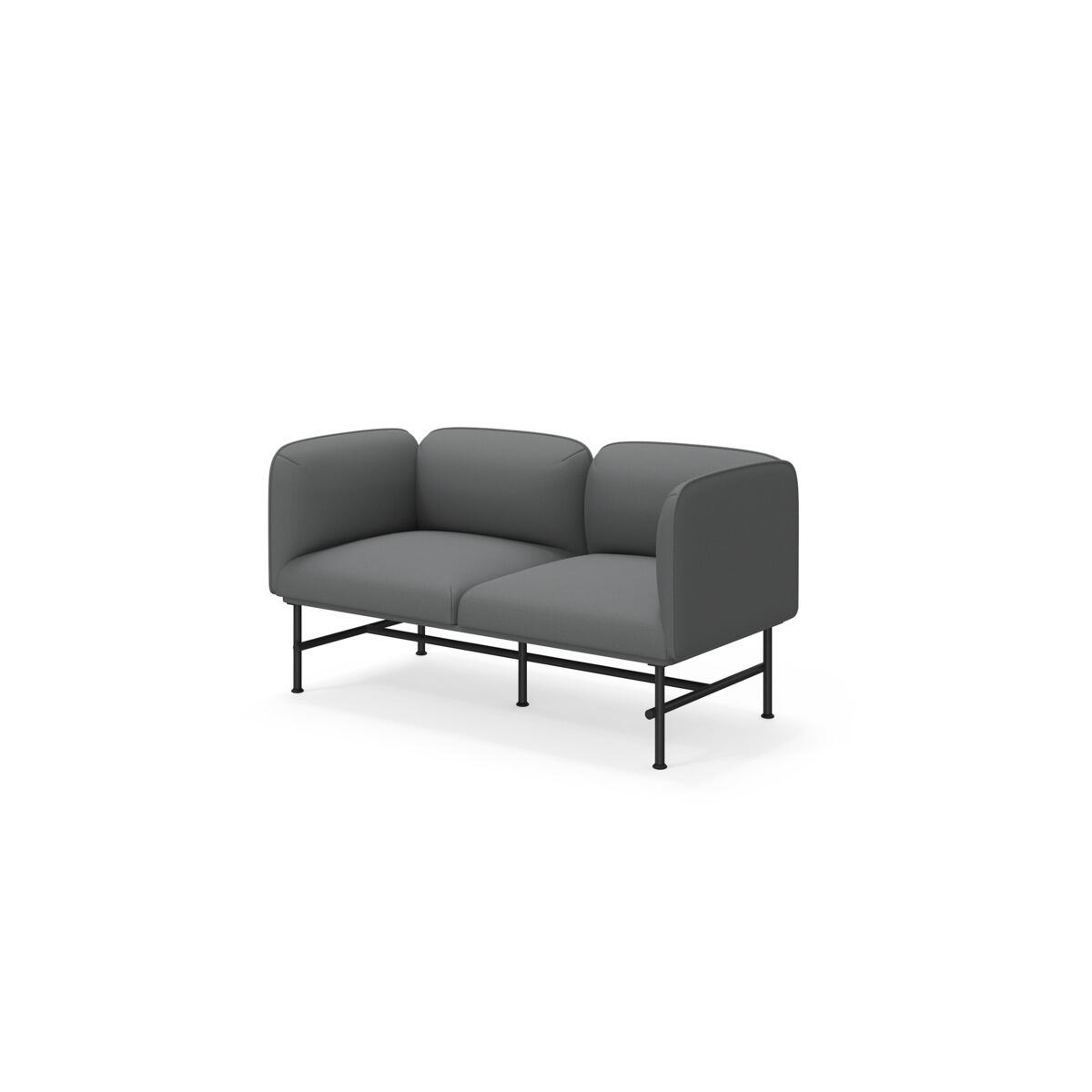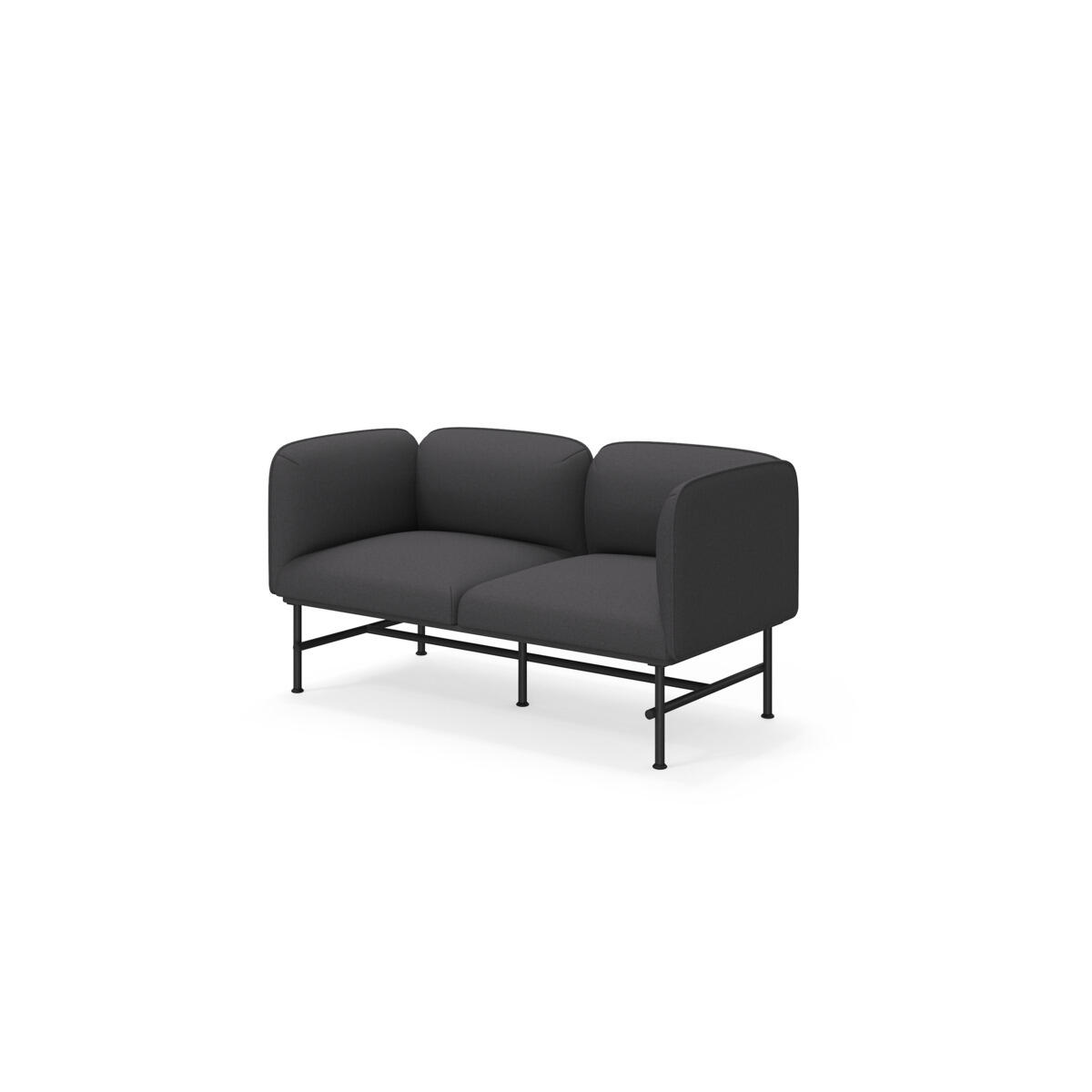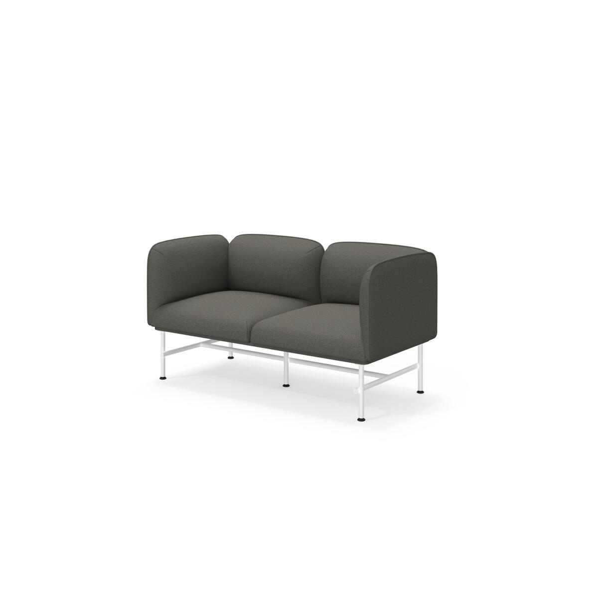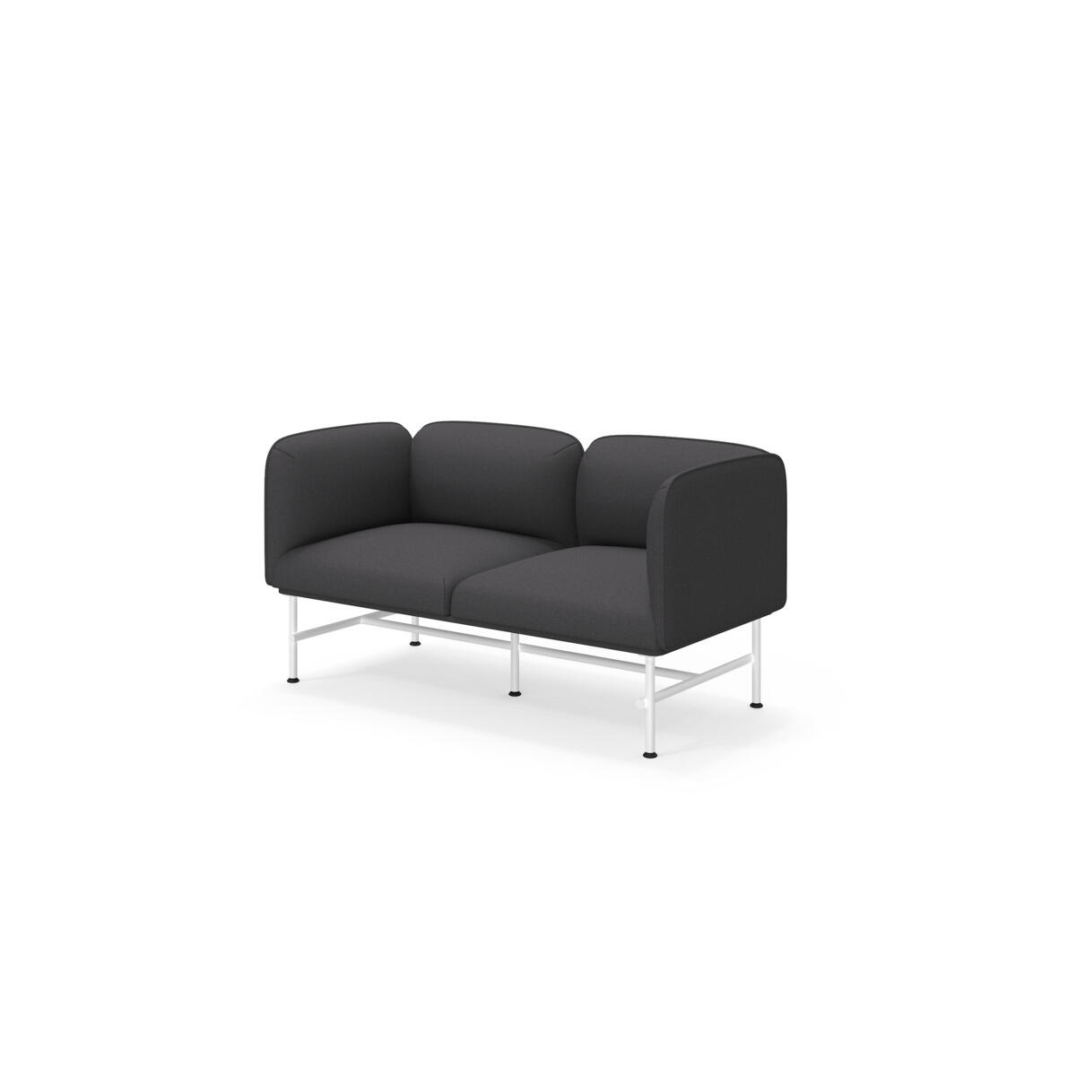 Et minimalistisk møbel, der kombinerer elegance med funktionalitet. Den høje ryg og sider bidrager til at dæmpe lyd og forbedre rummets akustik. Træstel og polstring i koldskum. Ben i pulverlakeret metal. Som tilvalg findes sidebord eller armstøtte i metal, bestilles på eget artikelnummer.